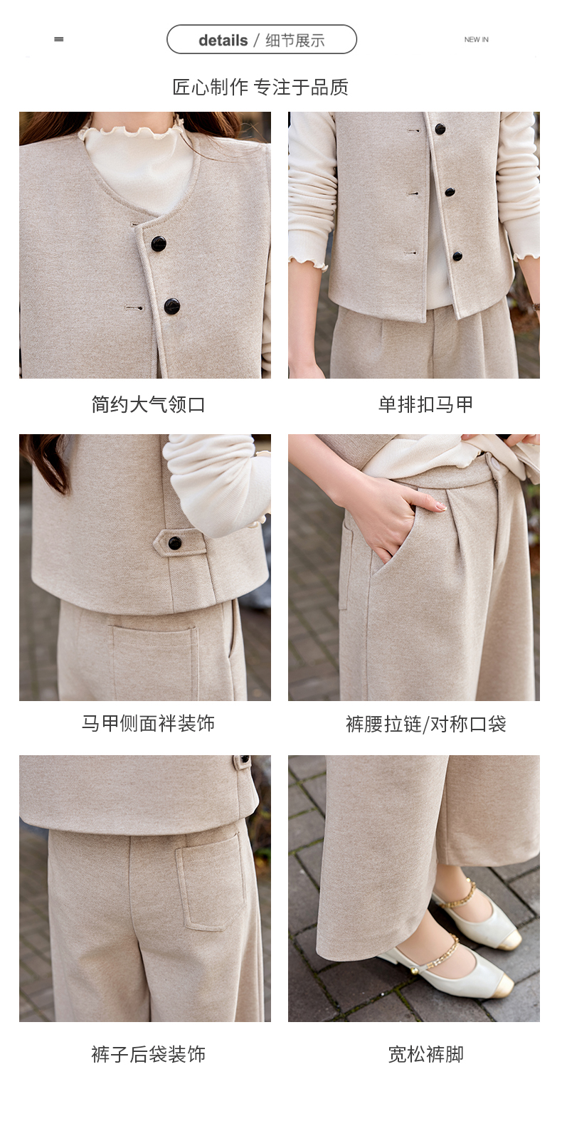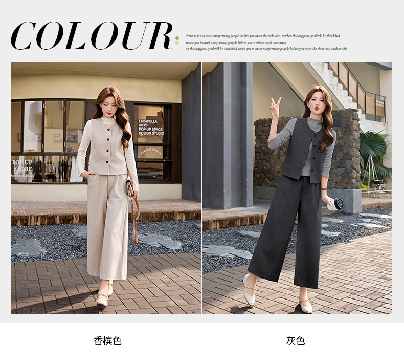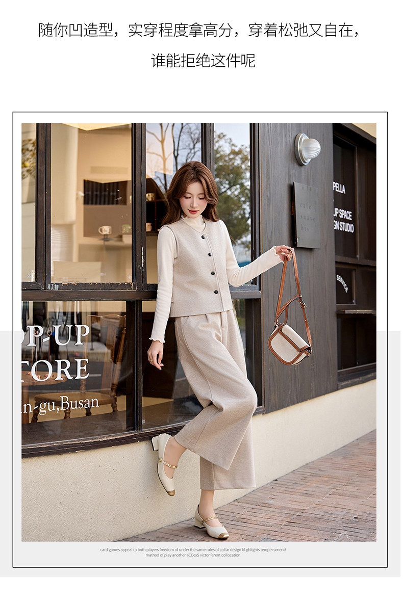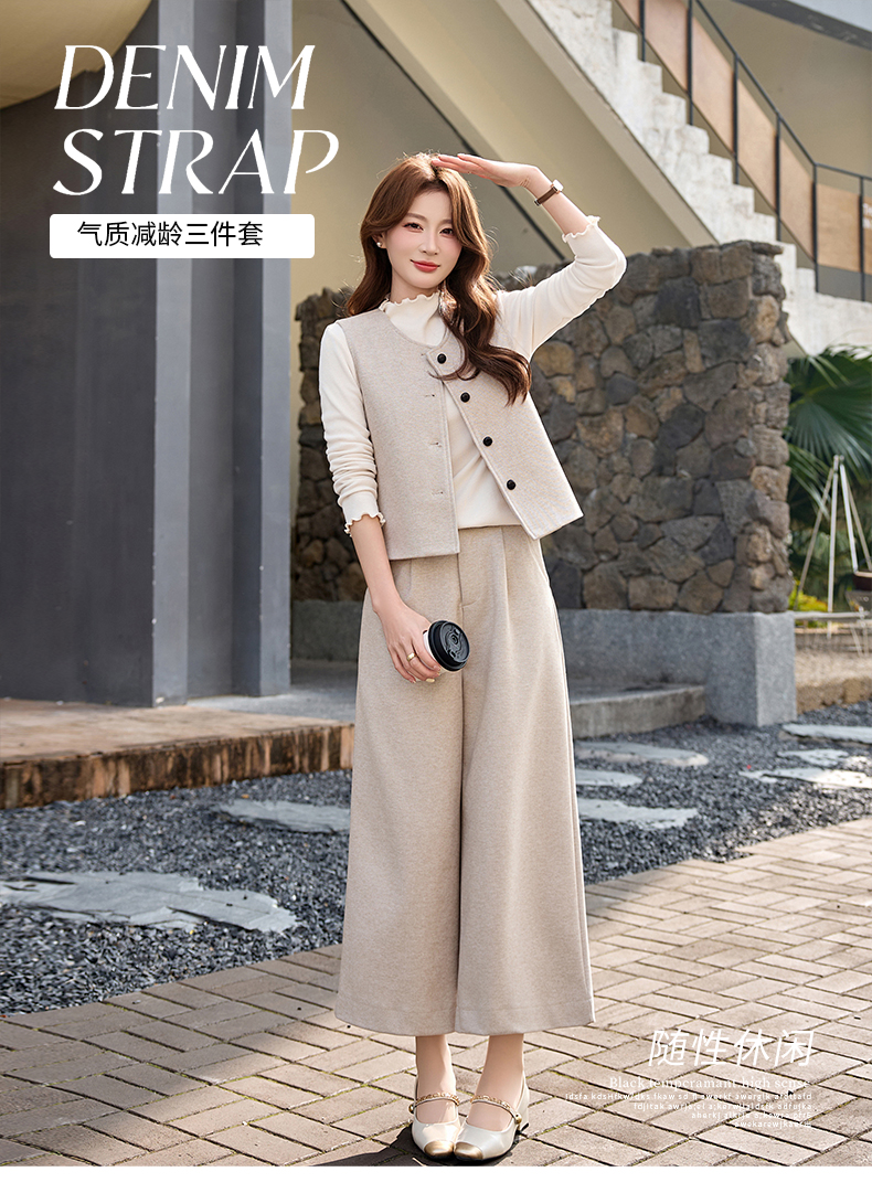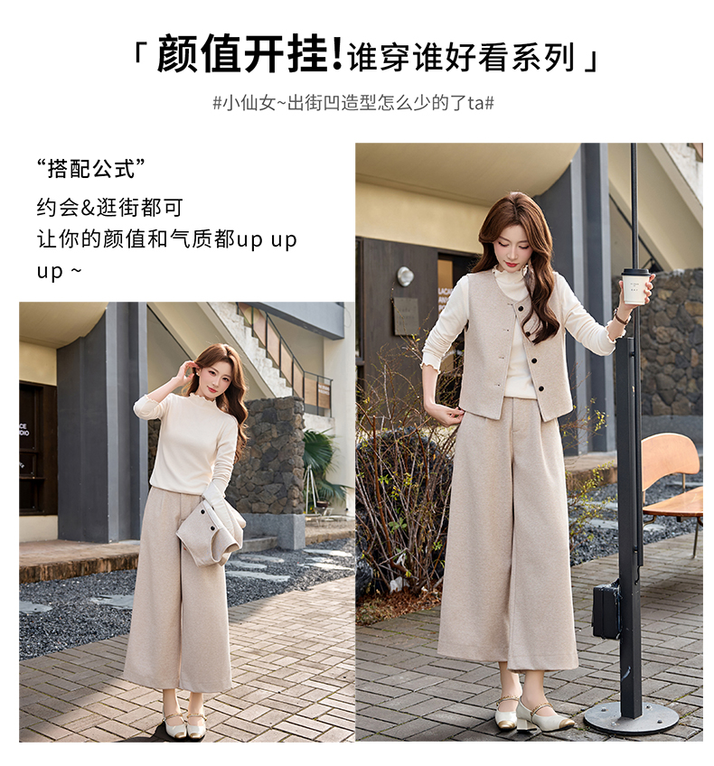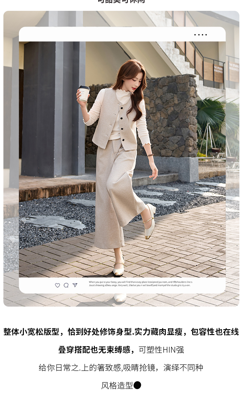 超好看洋气轻熟风气质套装,显瘦时髦马甲阔腿裤三件套HR-2671