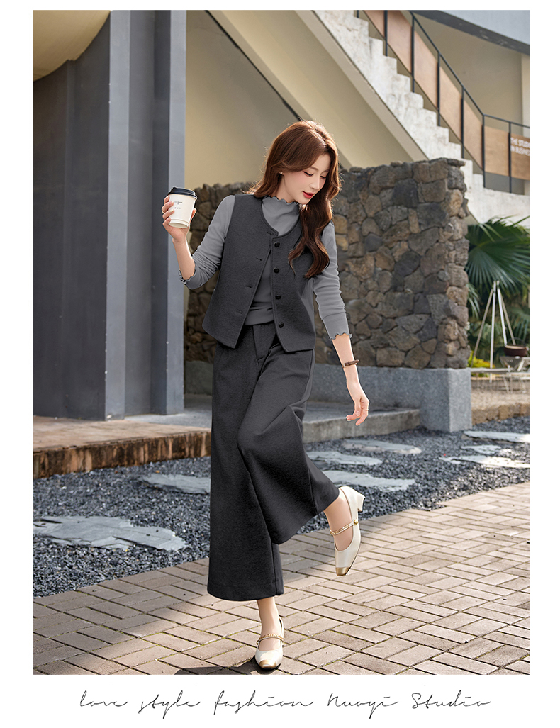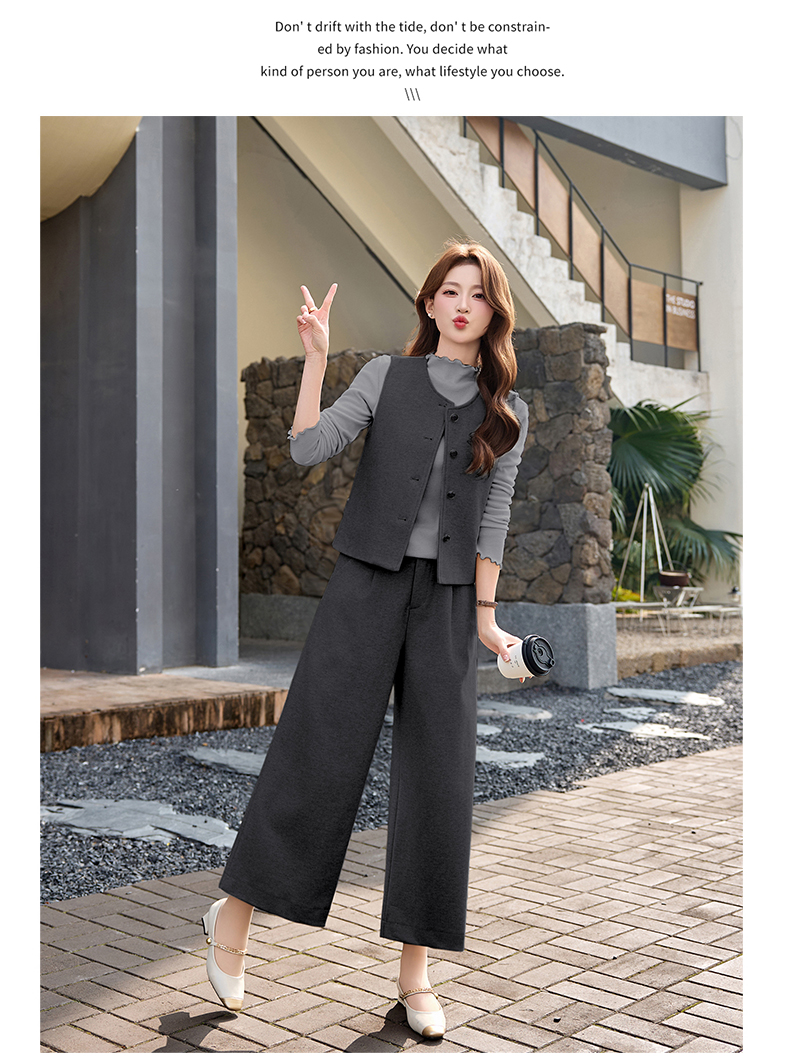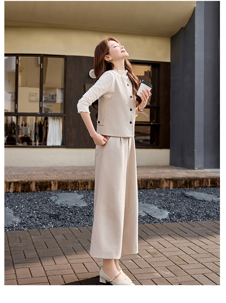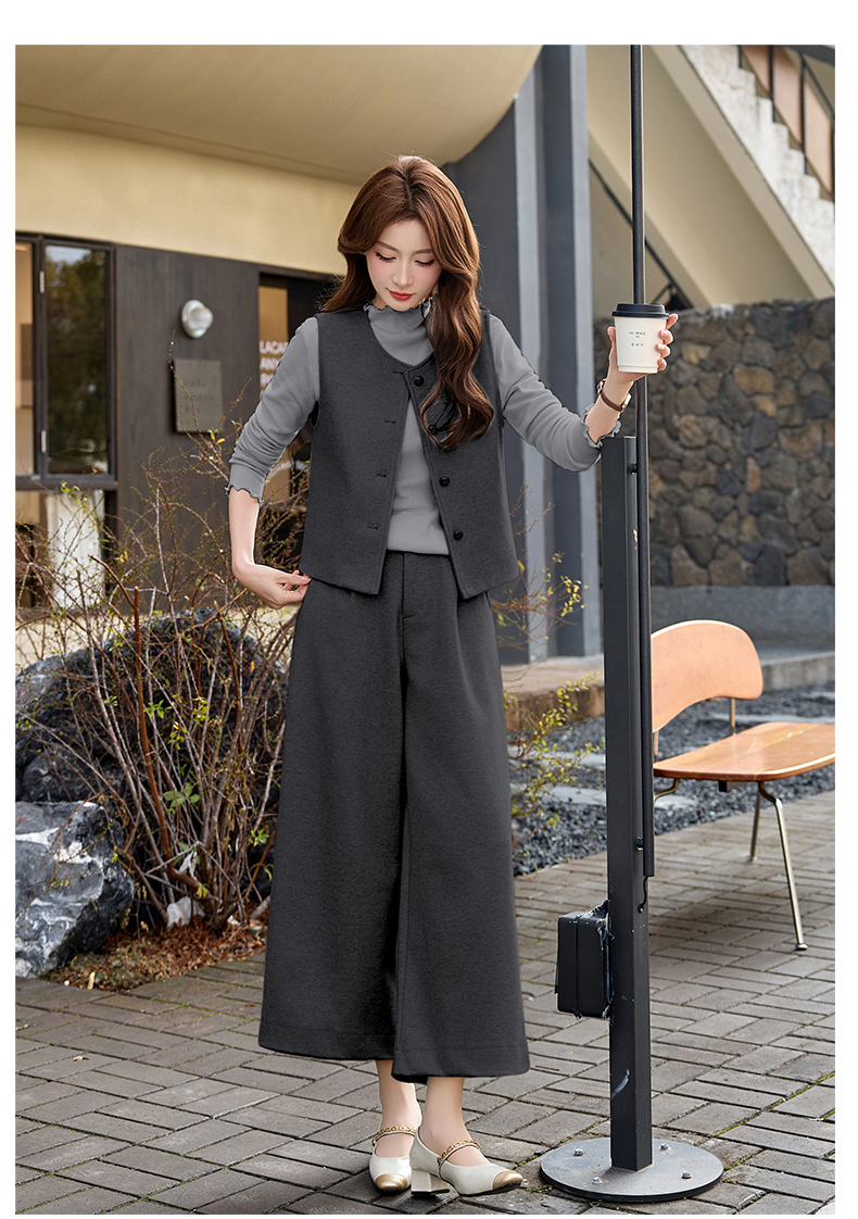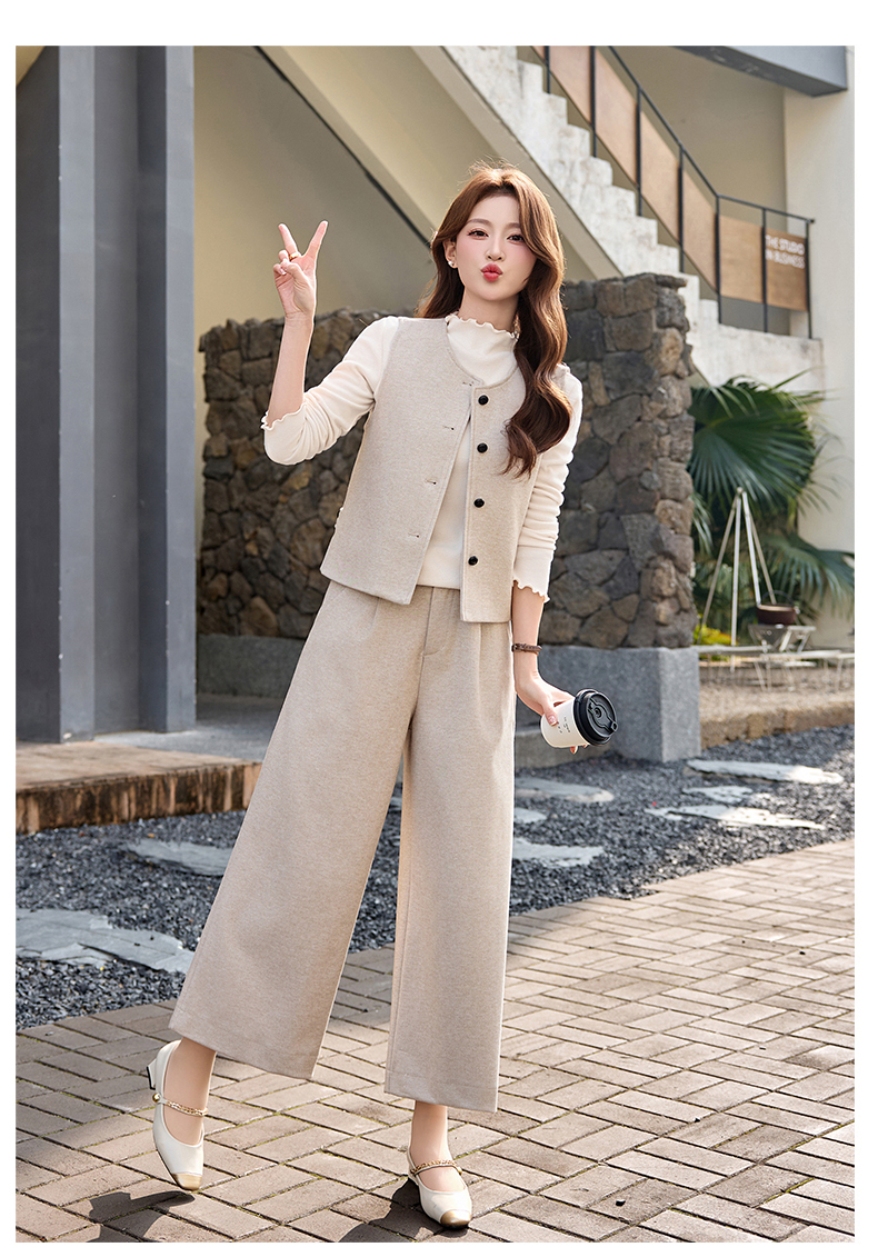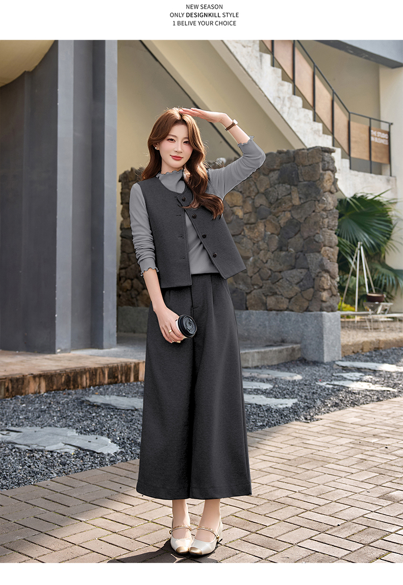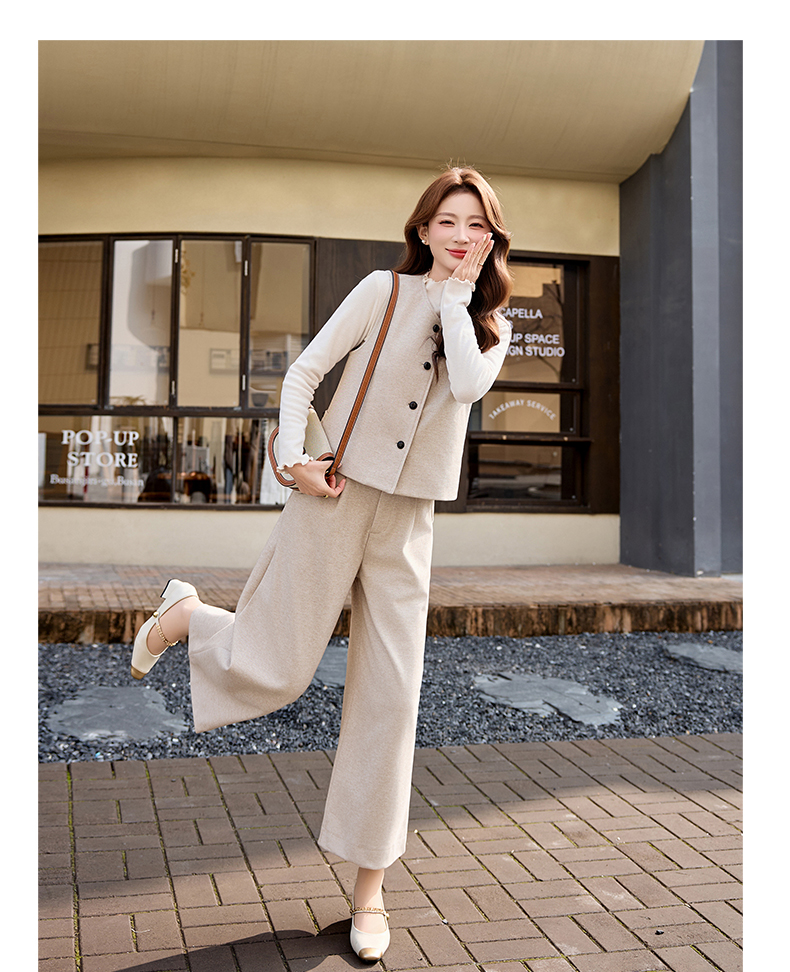 超好看洋气轻熟风气质套装,显瘦时髦马甲阔腿裤三件套HR-2671