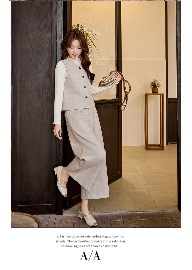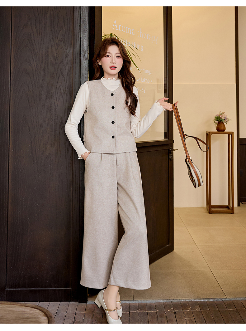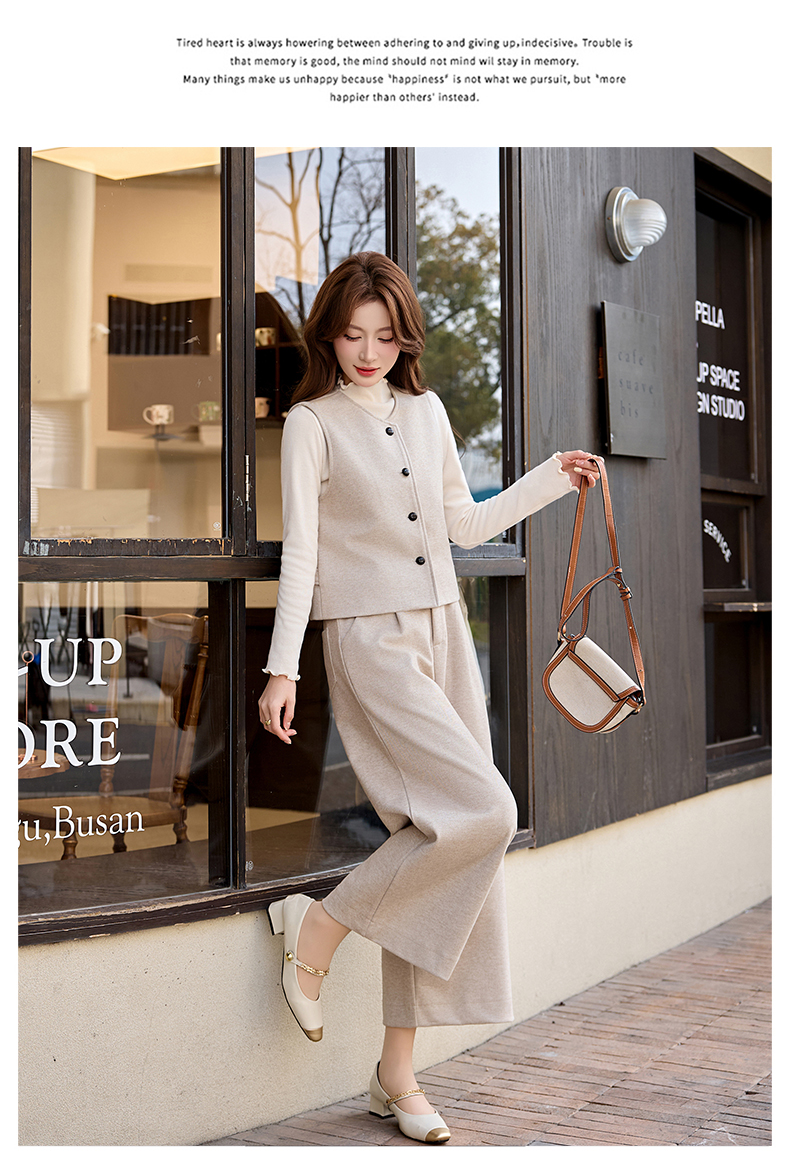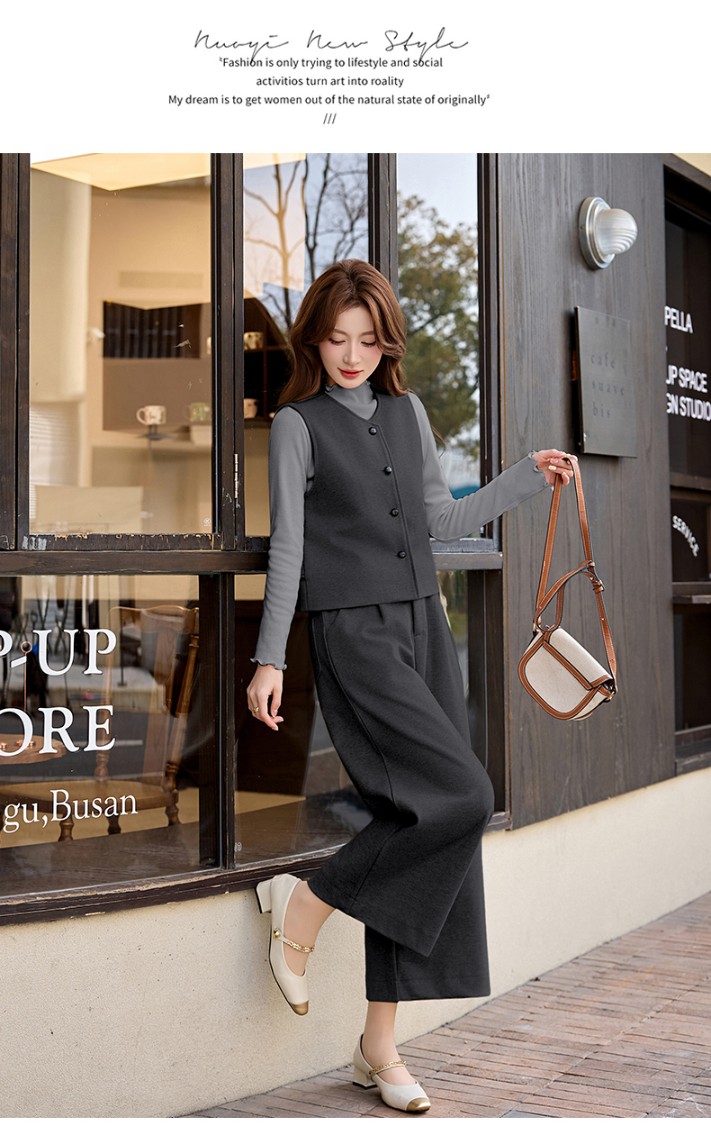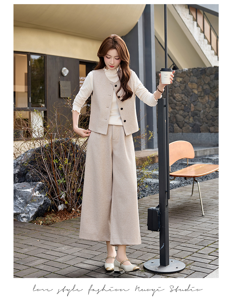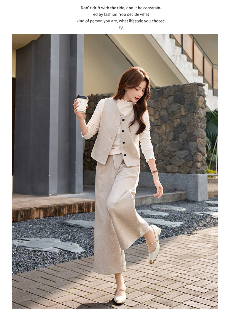 超好看洋气轻熟风气质套装,显瘦时髦马甲阔腿裤三件套HR-2671