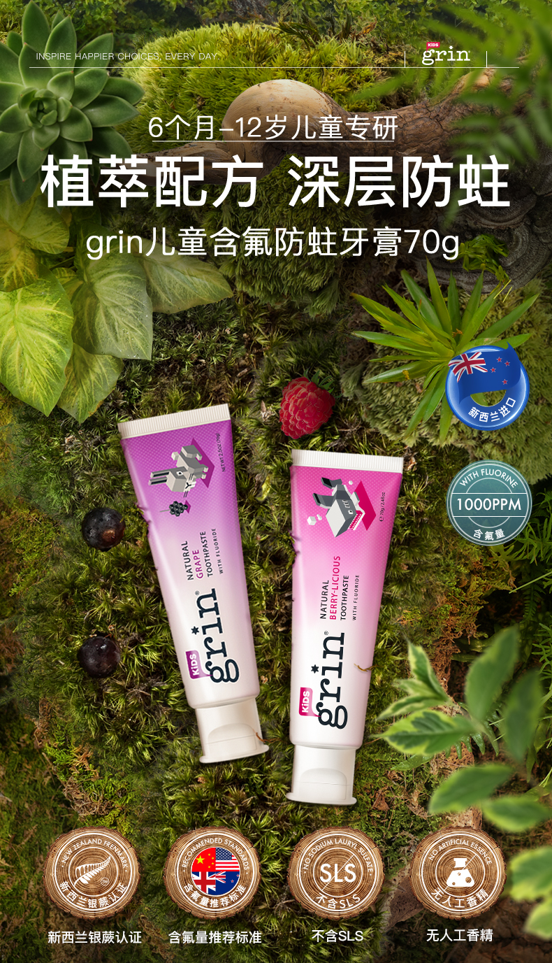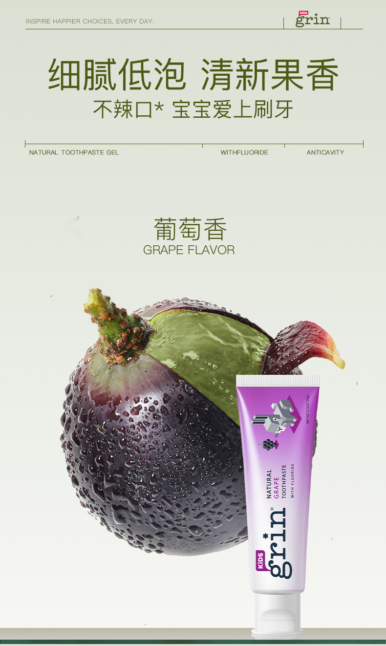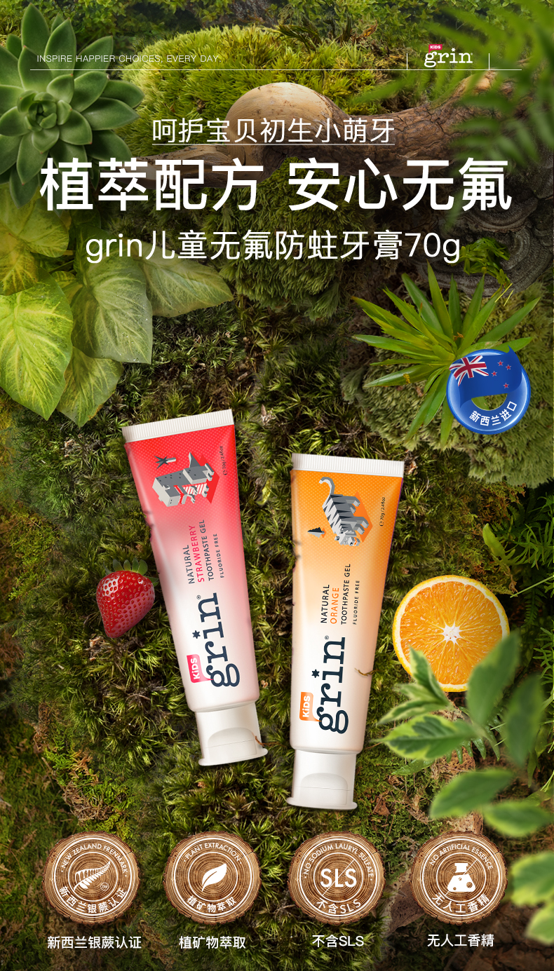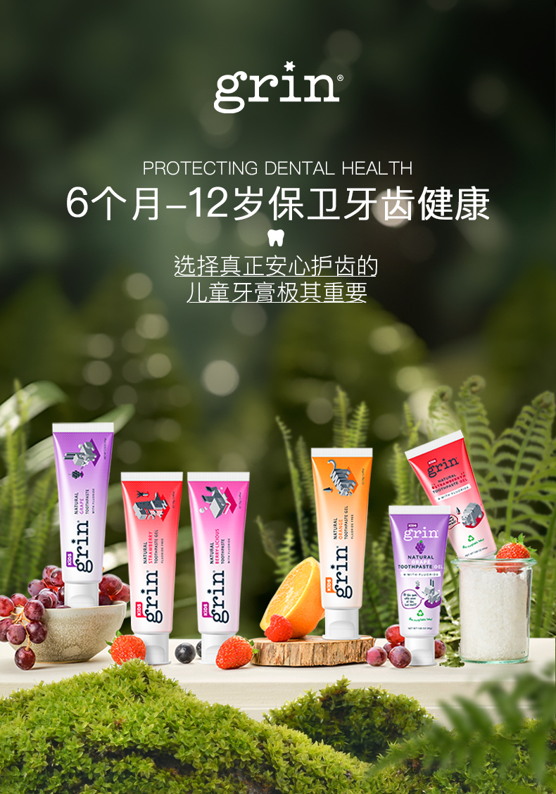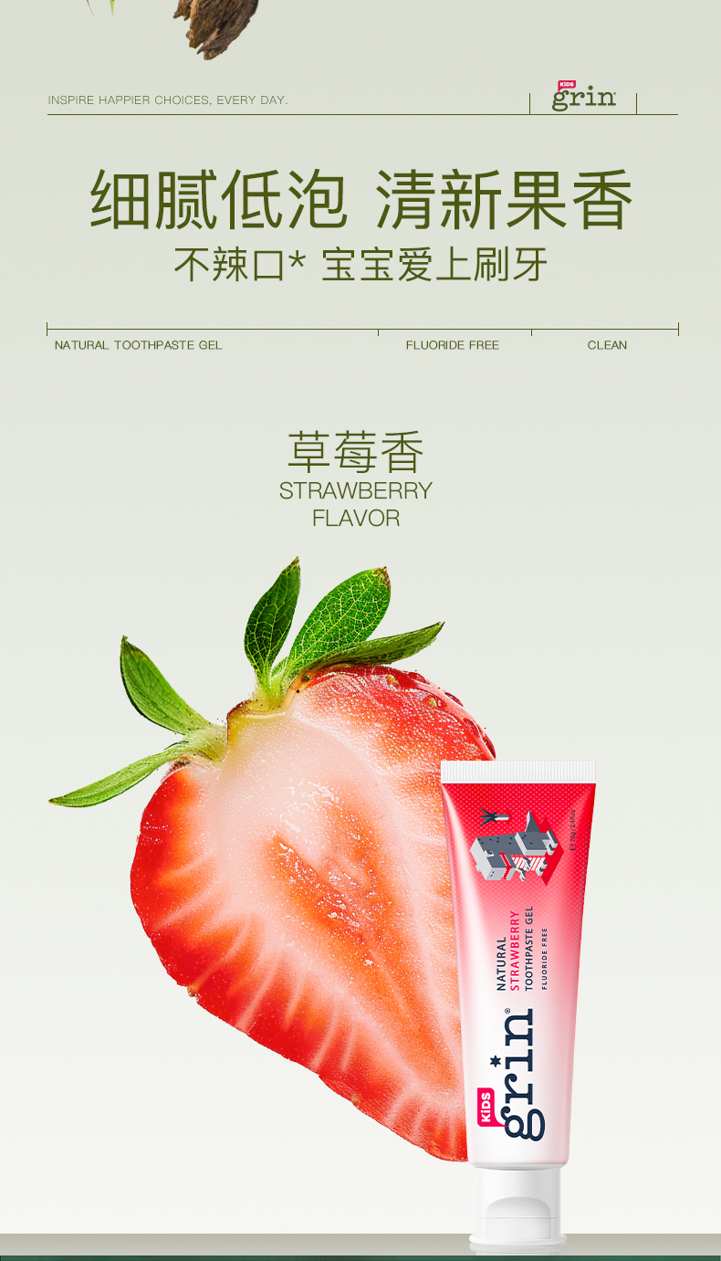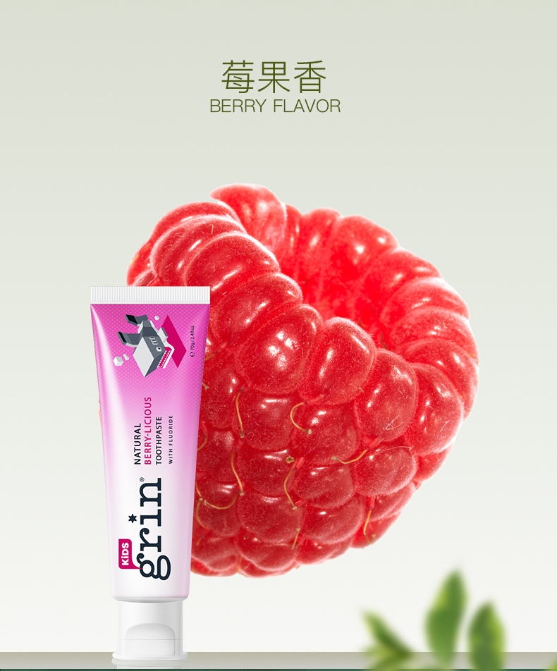 grin 儿童牙膏 天然防蛀 草莓味 橙子味 莓果味