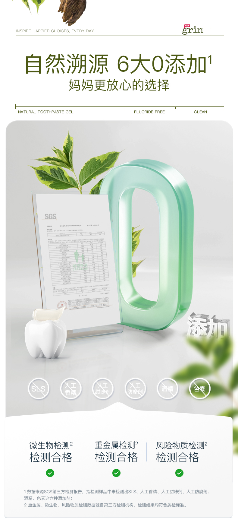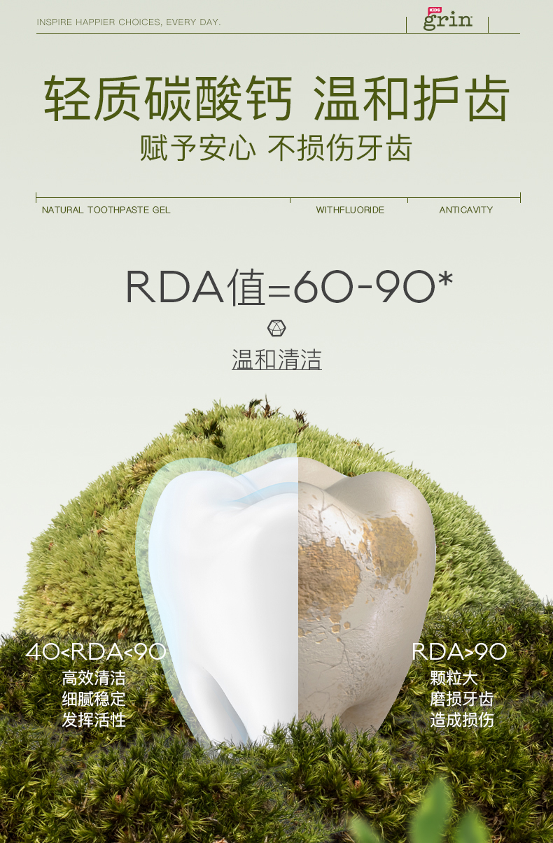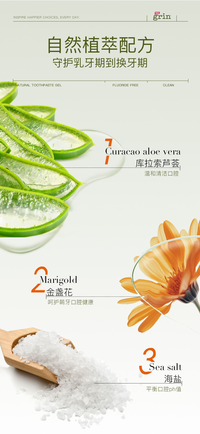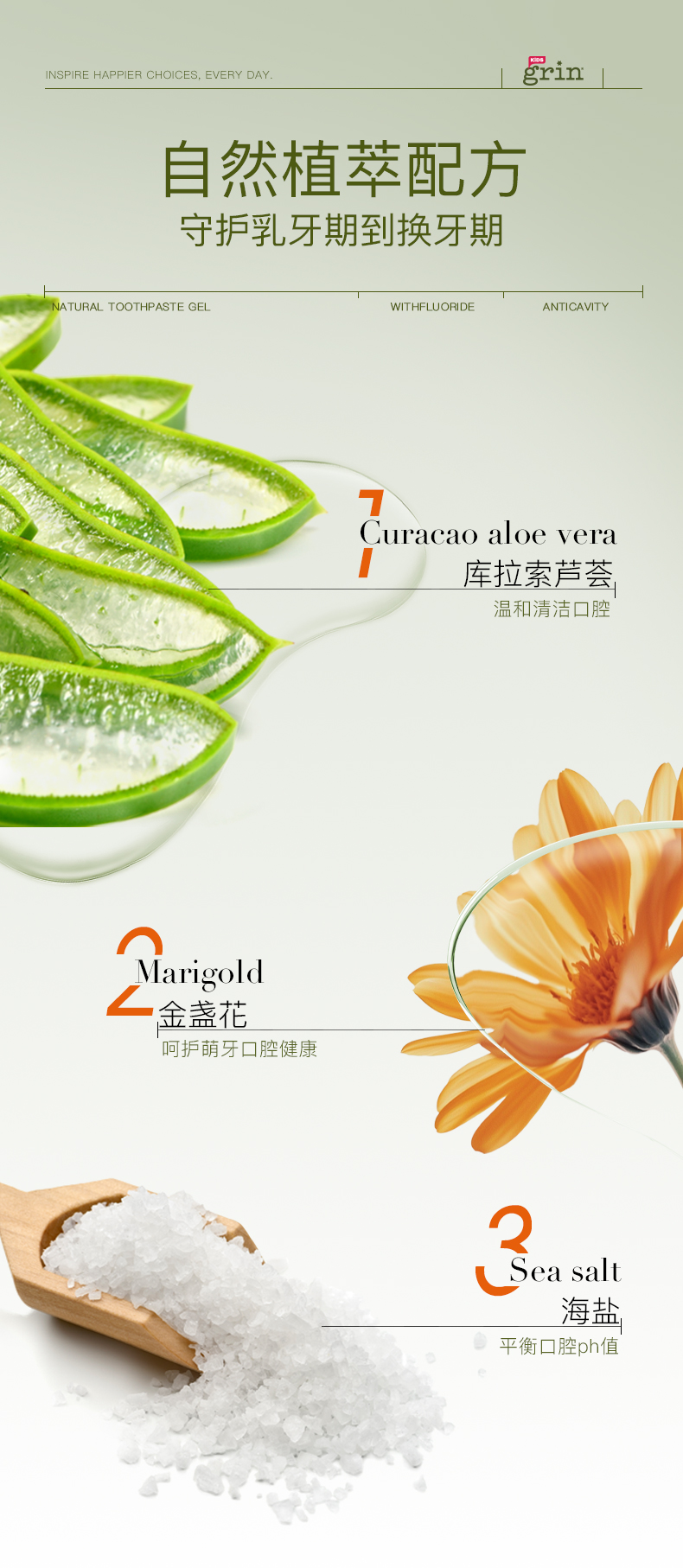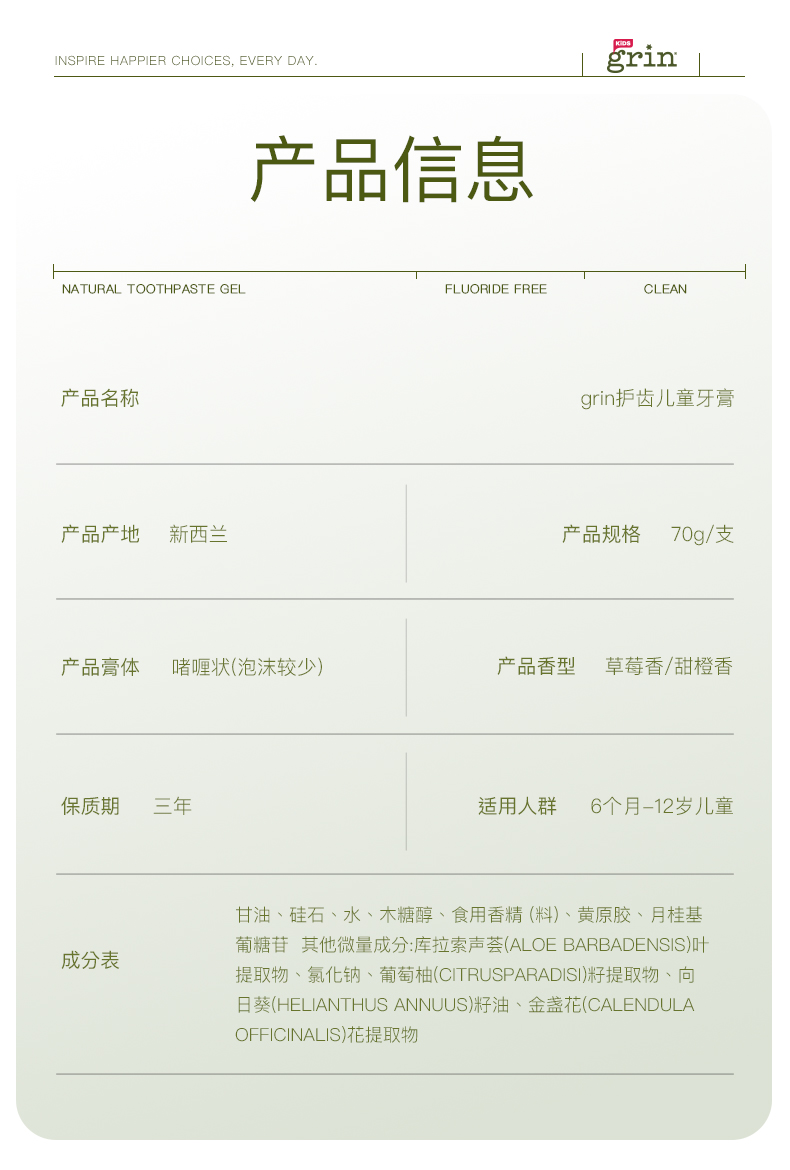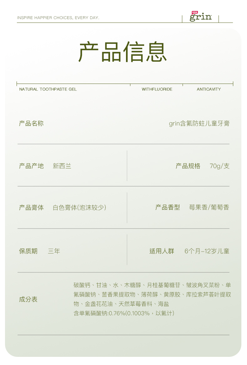 grin 儿童牙膏 天然防蛀 草莓味 橙子味 莓果味