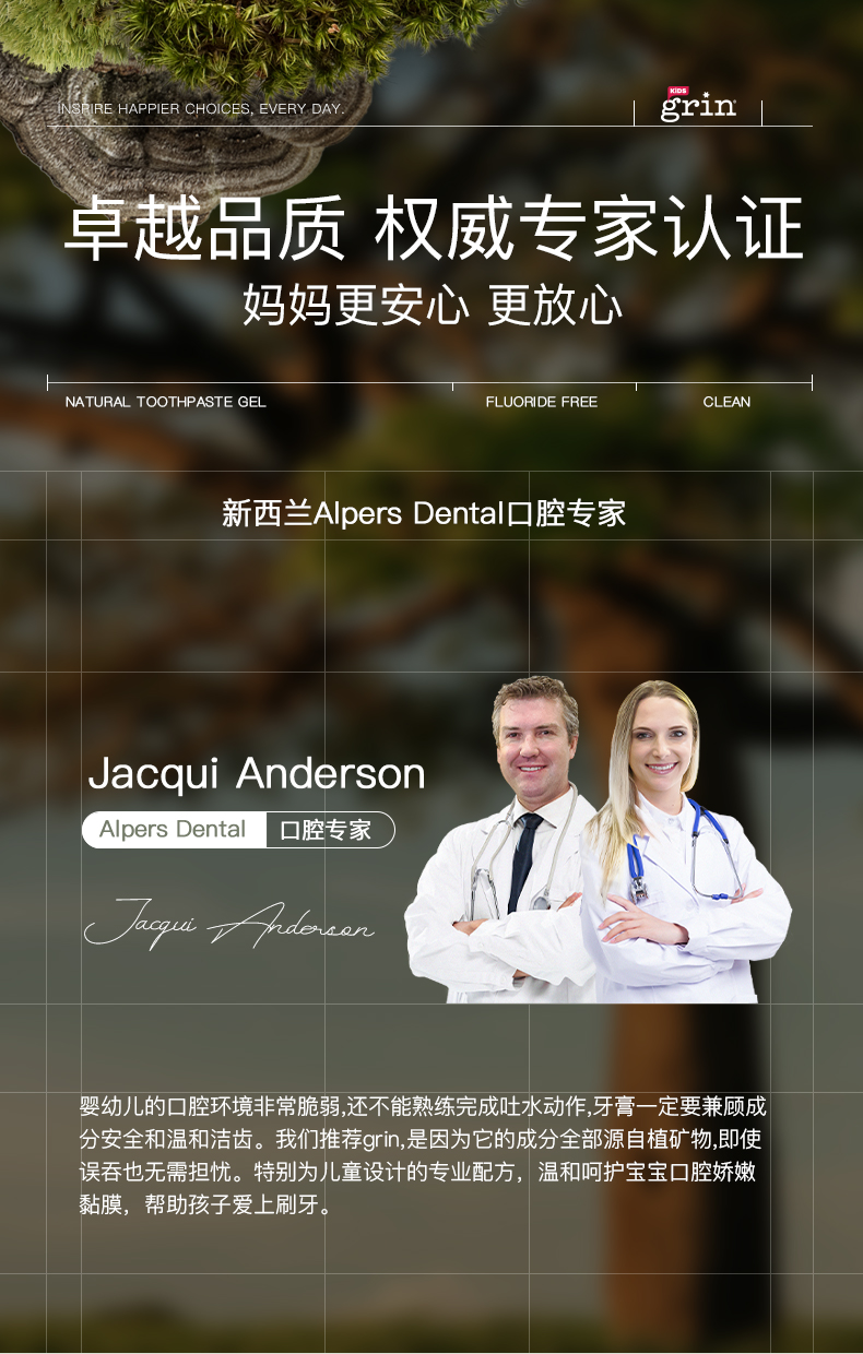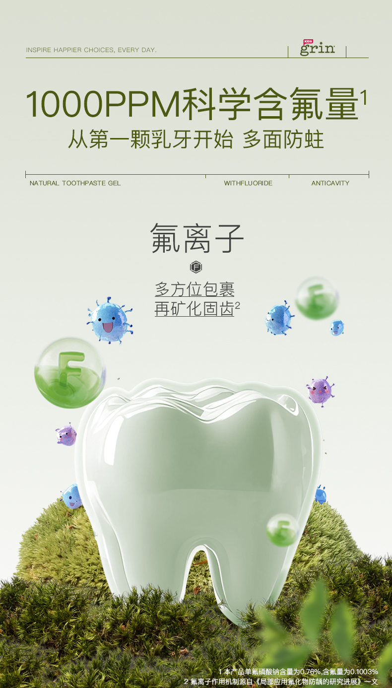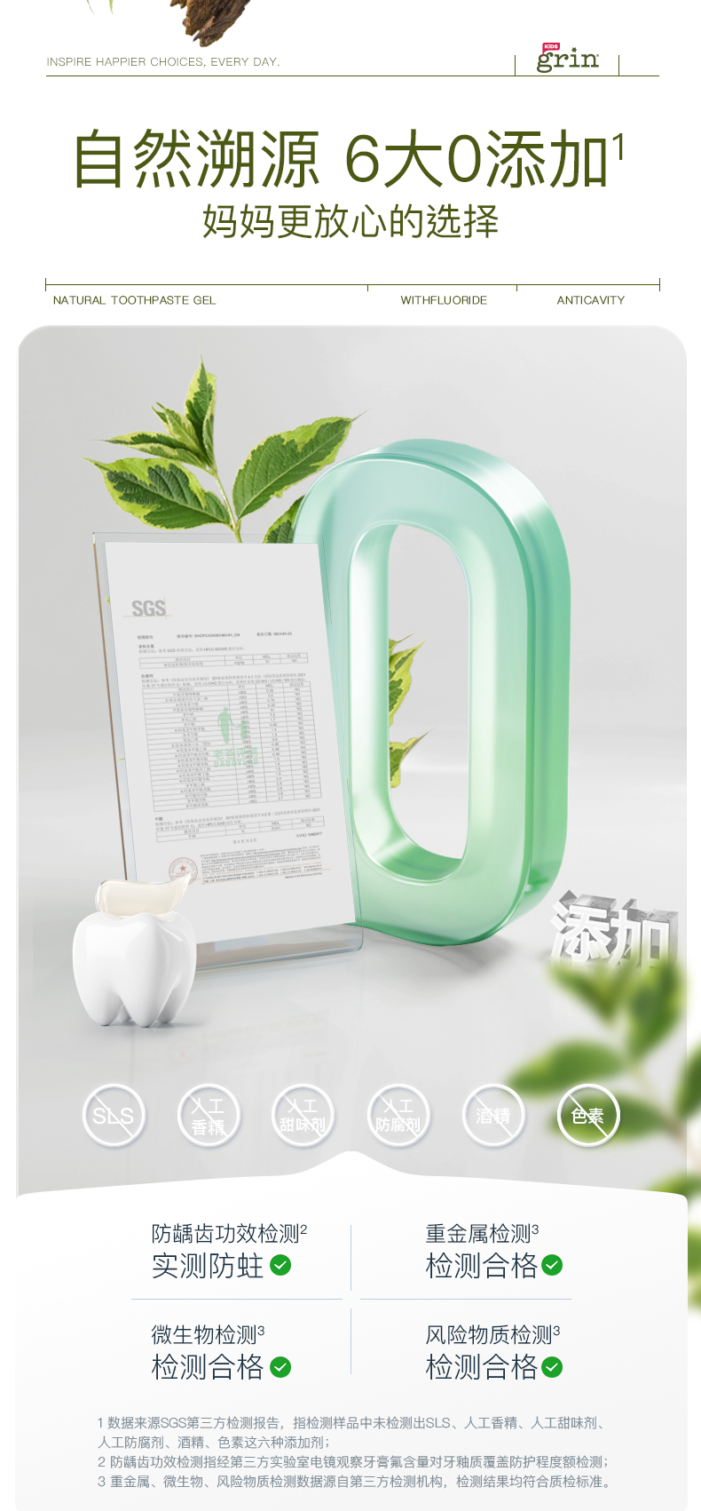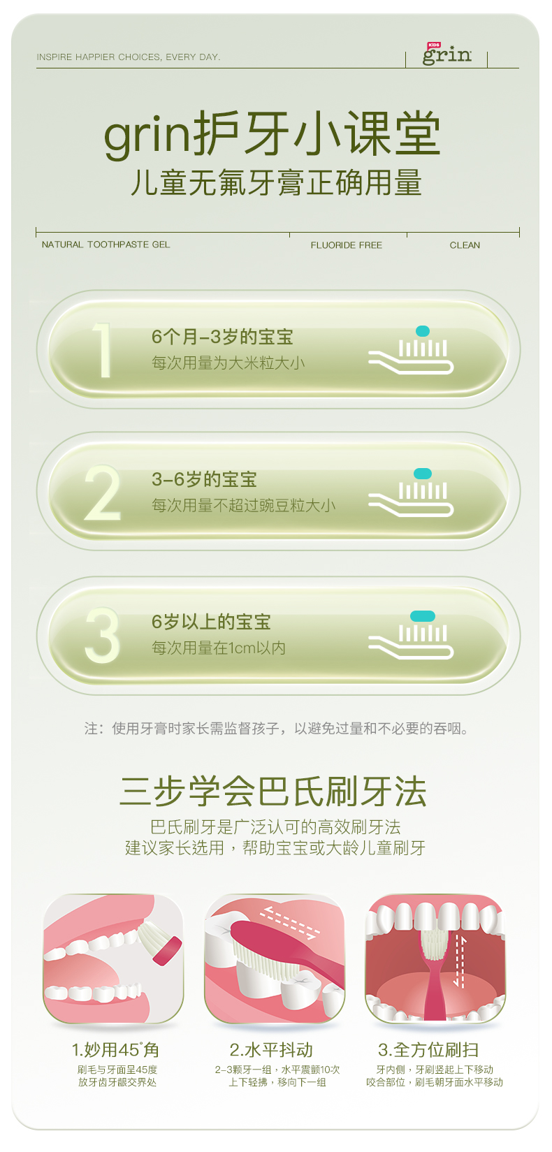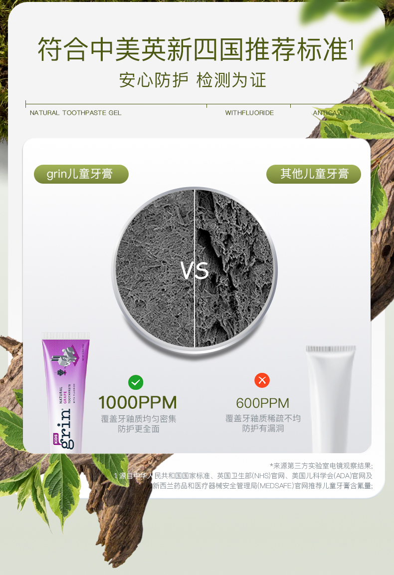 grin 儿童牙膏 天然防蛀 草莓味 橙子味 莓果味
