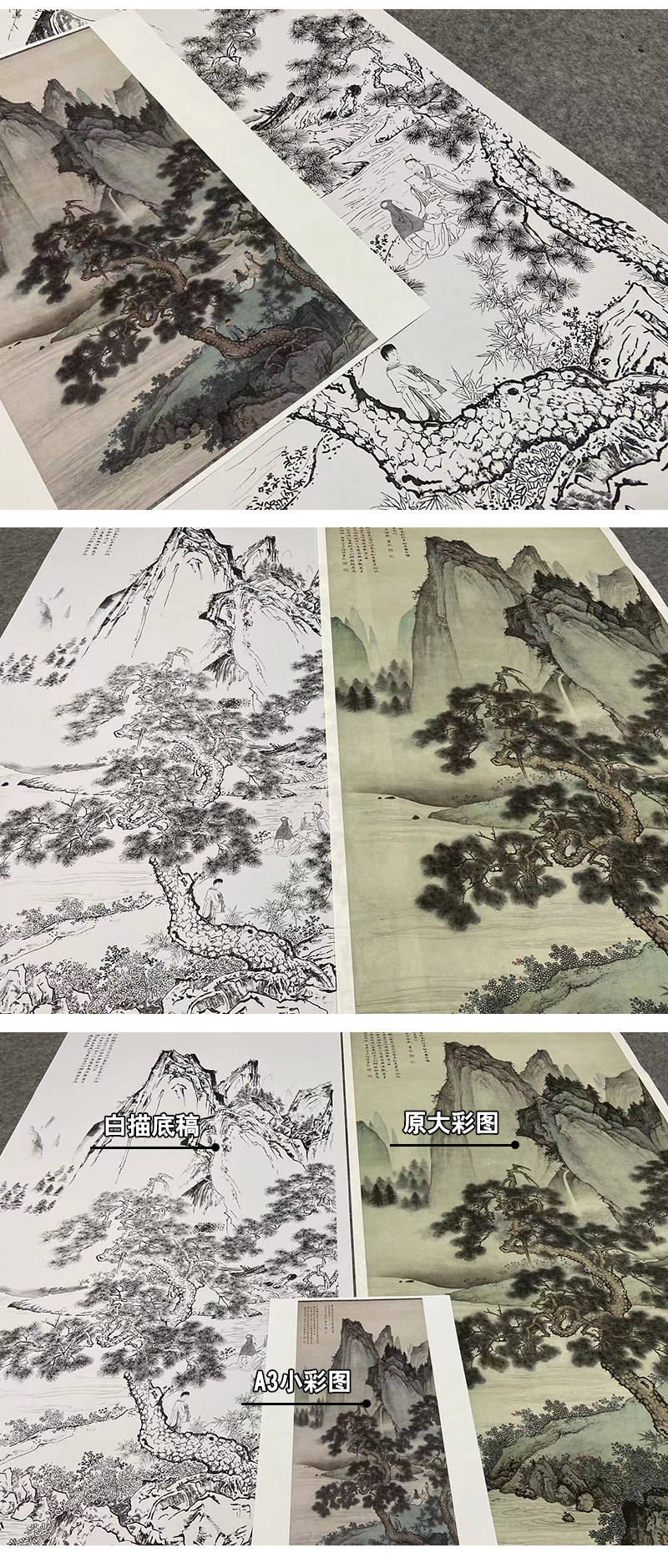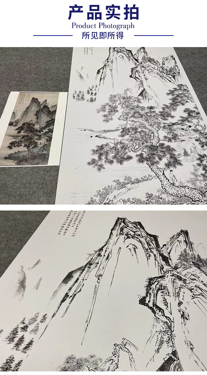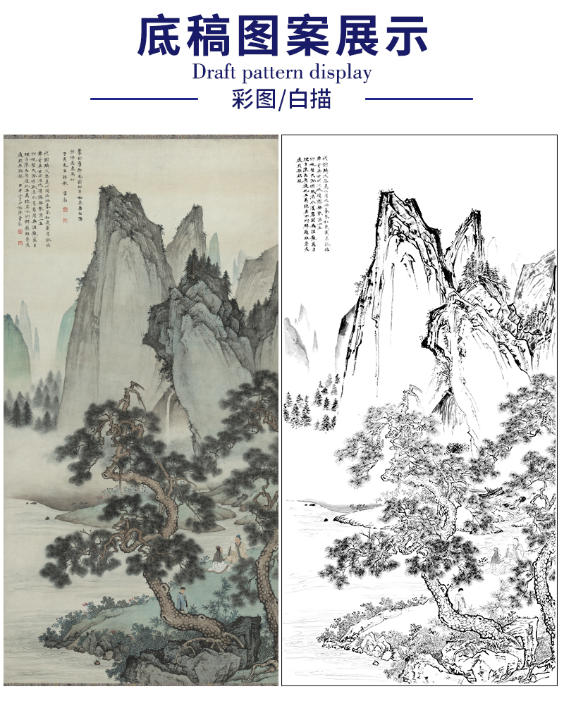 【大彩图】陈少梅工笔画白描底稿《云漳松下会友图》山水人物临摹勾线高清打印稿SV07