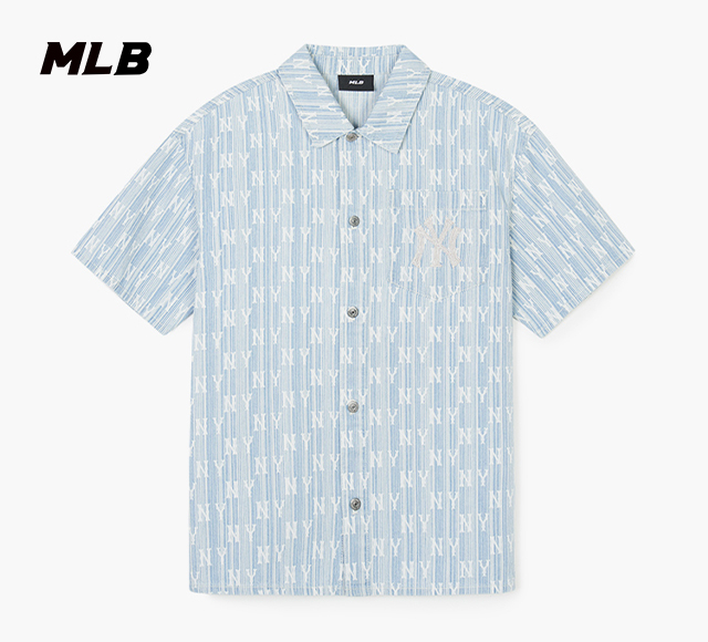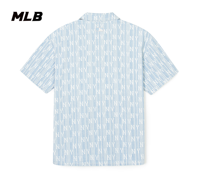 【XL断码】【微瑕,如无货做退款处理】MLB男女情侣满印老花短袖外套休闲舒适衬衫24春季新款3ADRM1043