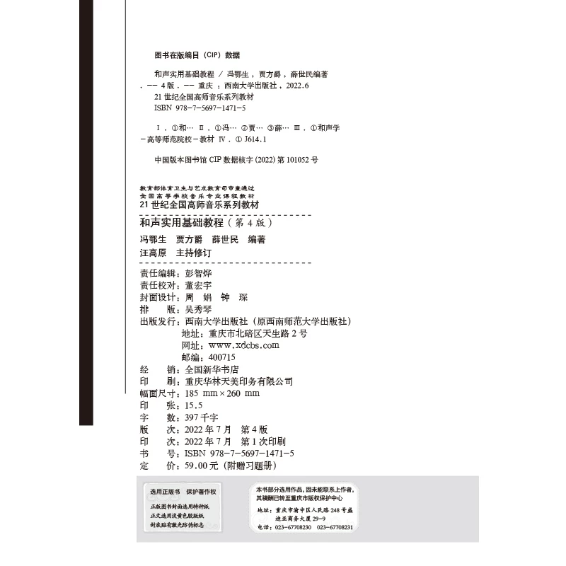 *书名:和声实用基础教程(第4版) | *ISBN:978-7-5697-1471-5 |