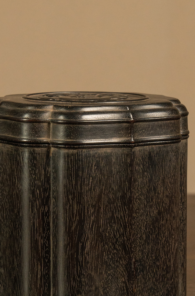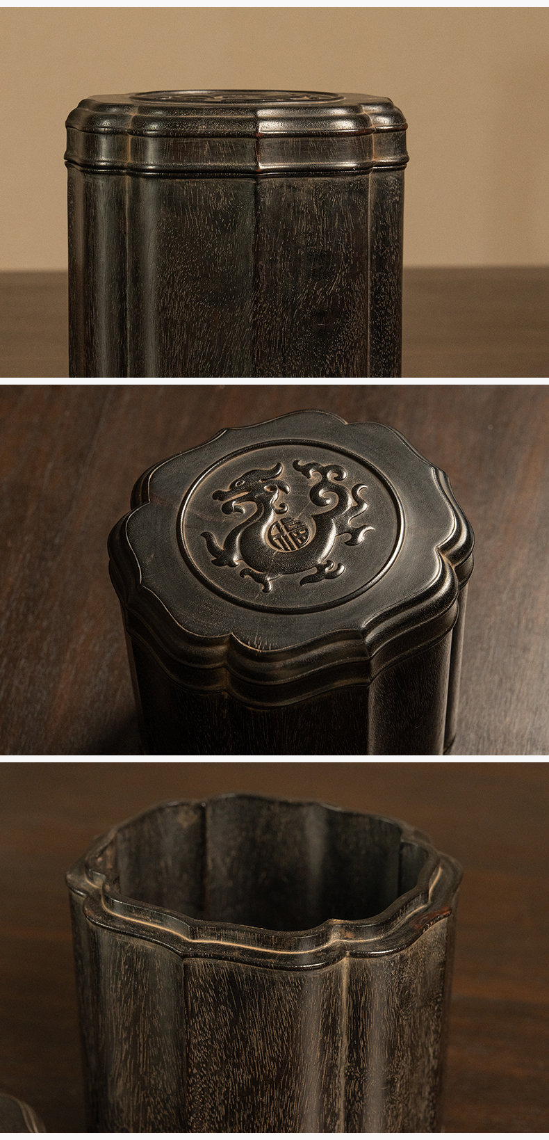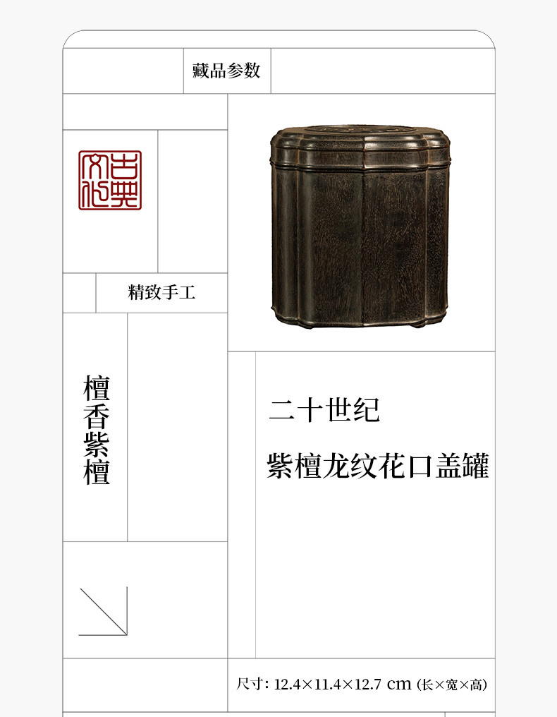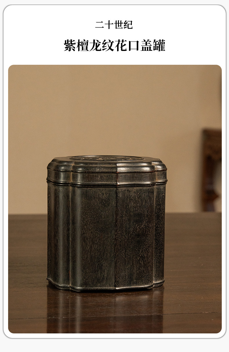 二十世纪 紫檀龙纹花口盖罐