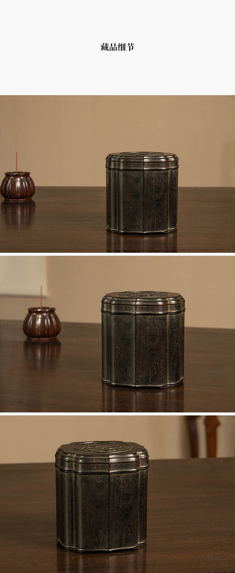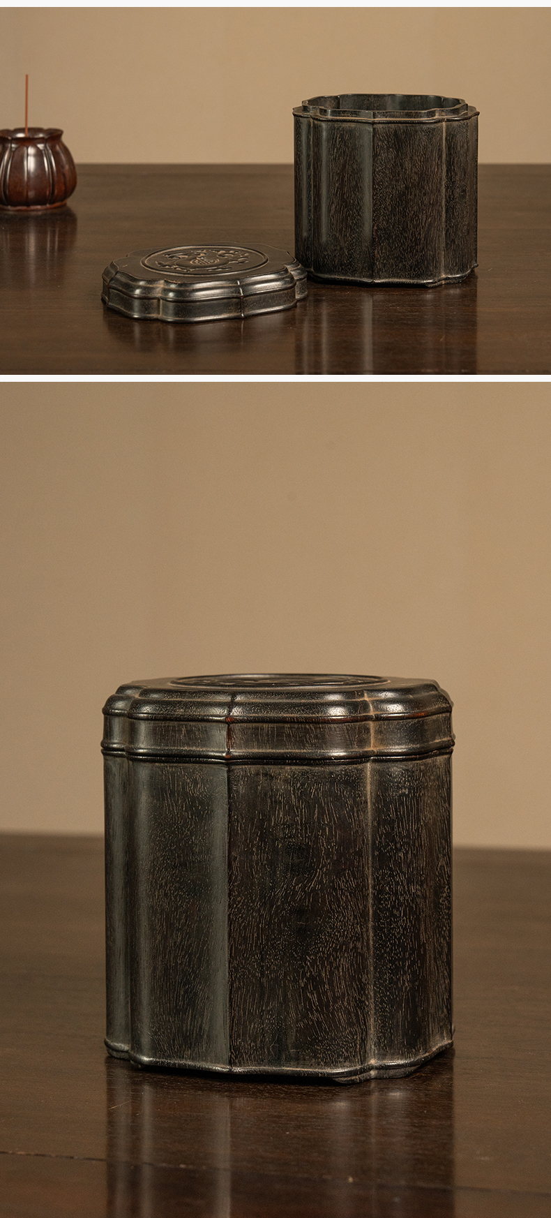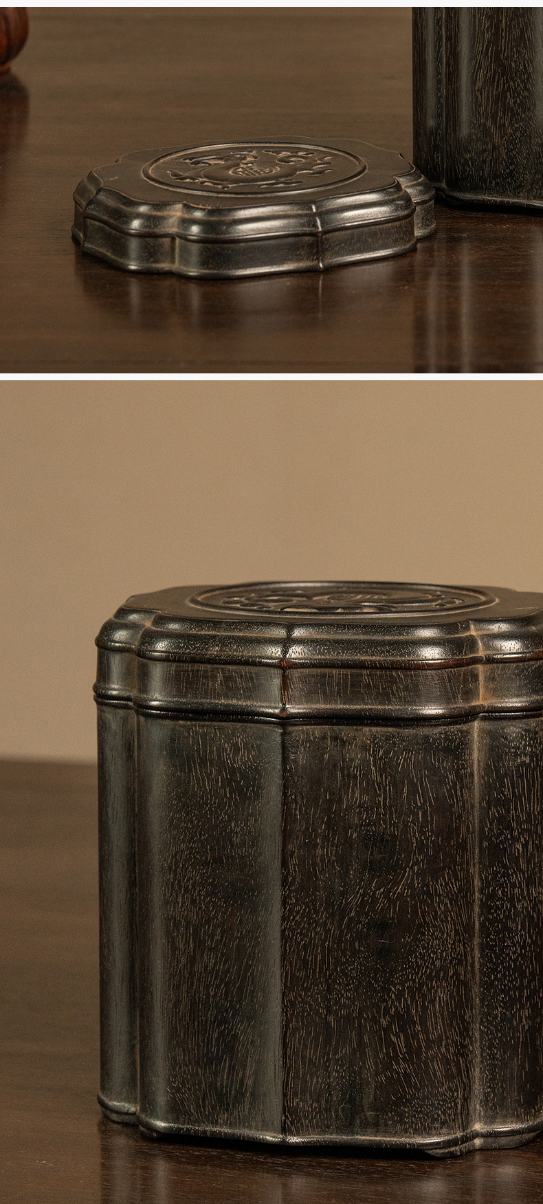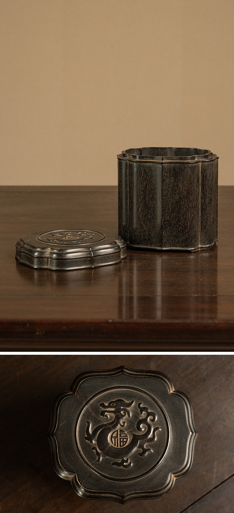 二十世纪 紫檀龙纹花口盖罐