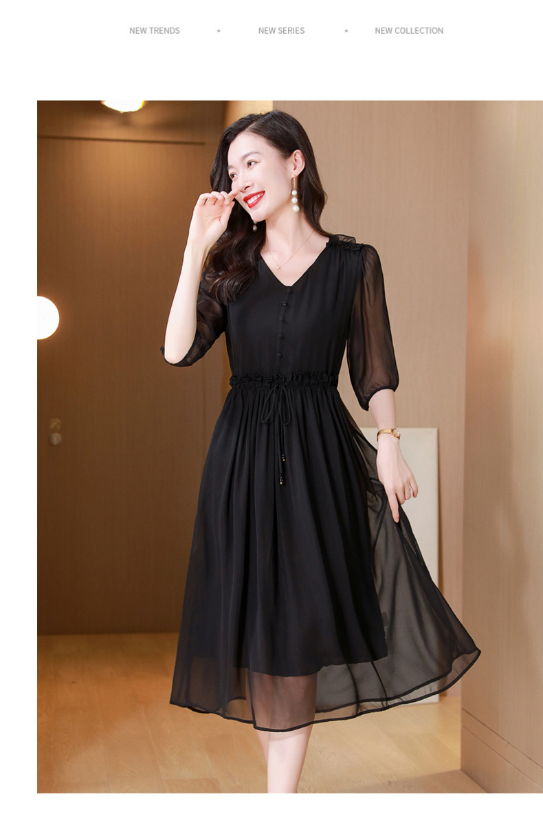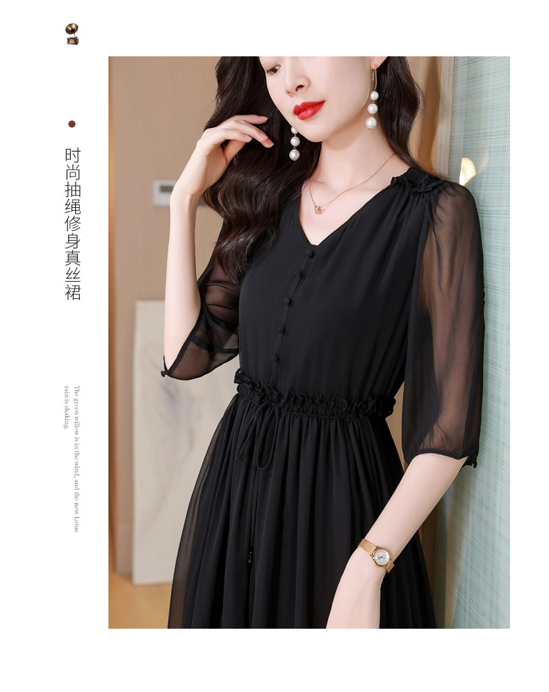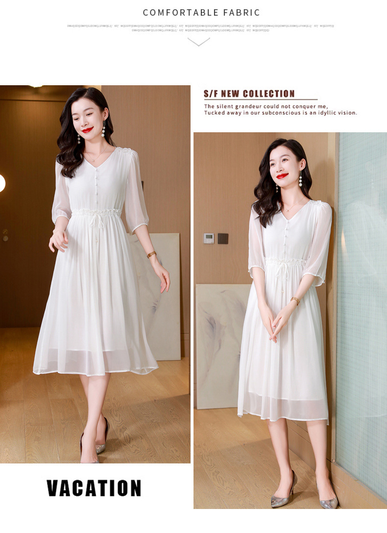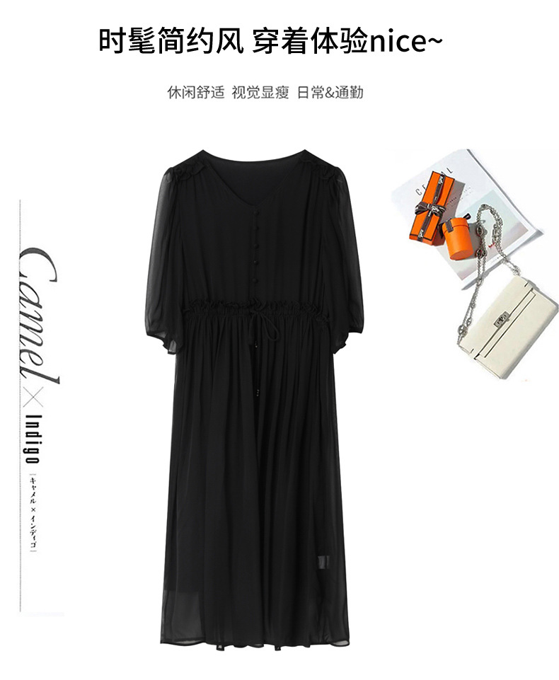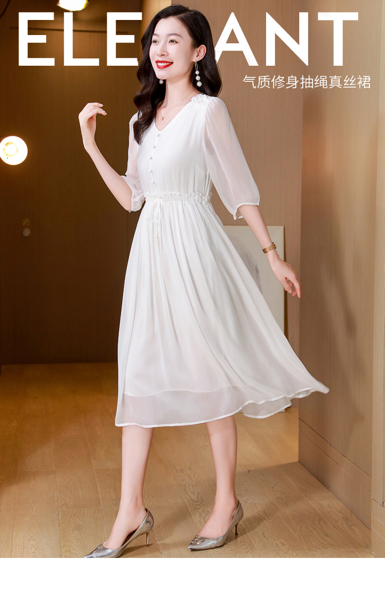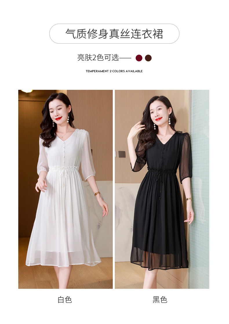 ASE-25027真丝连衣裙2024年夏季新款中长款高端度假法式真丝中长款裙子女