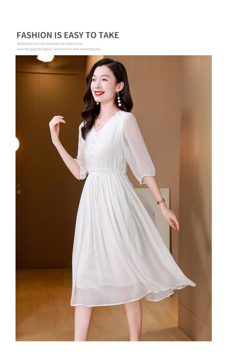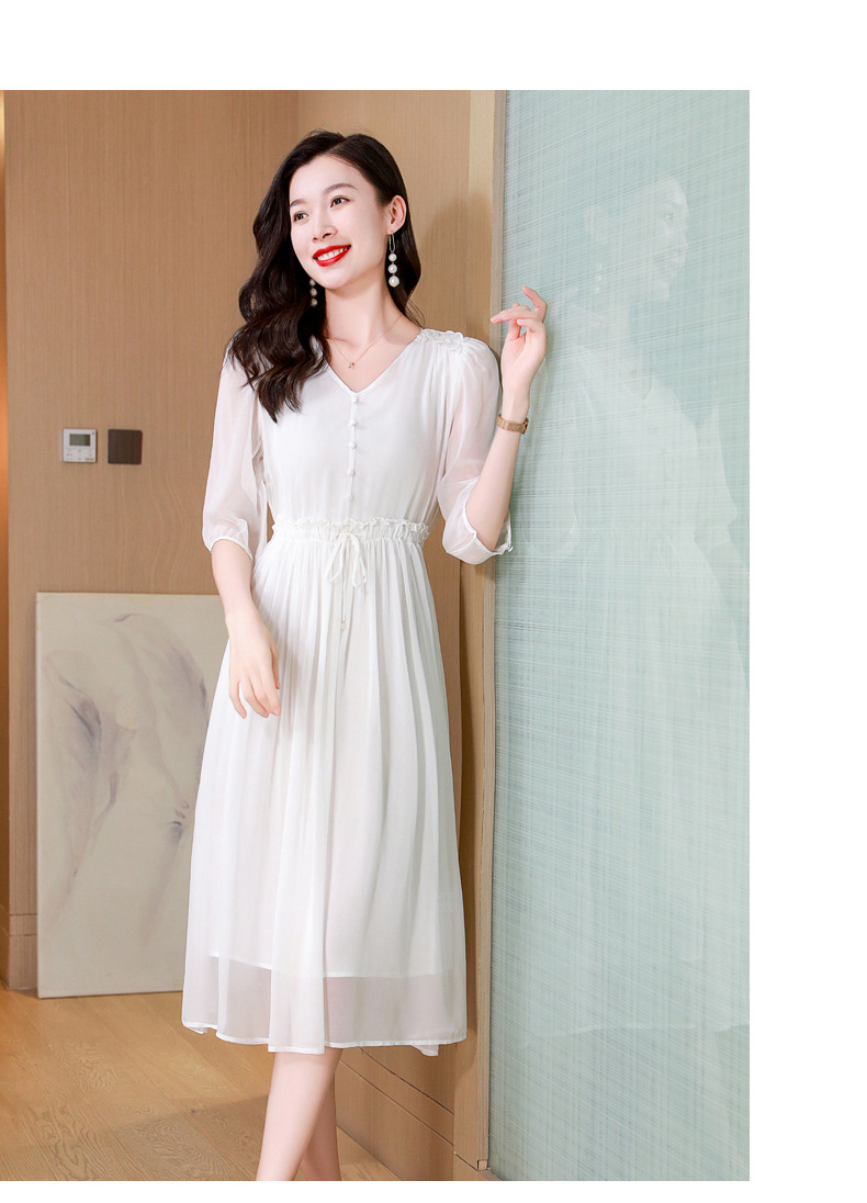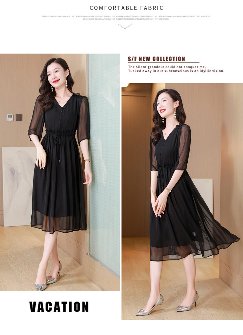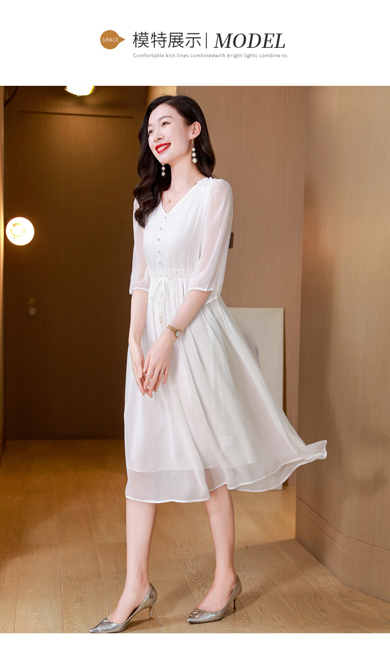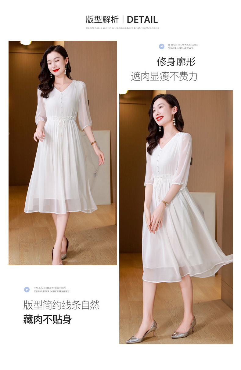 ASE-25027真丝连衣裙2024年夏季新款中长款高端度假法式真丝中长款裙子女