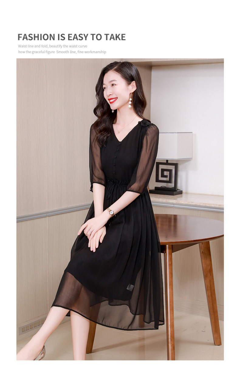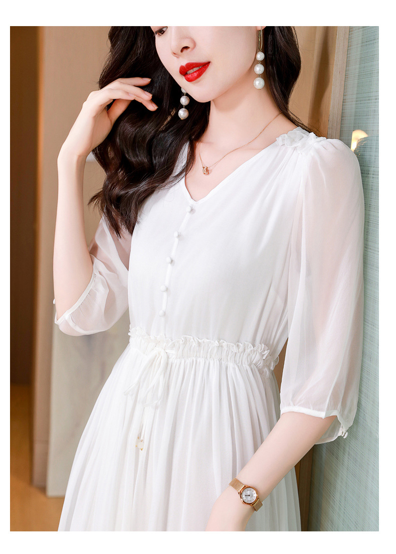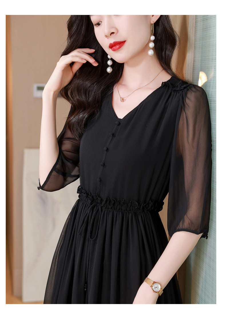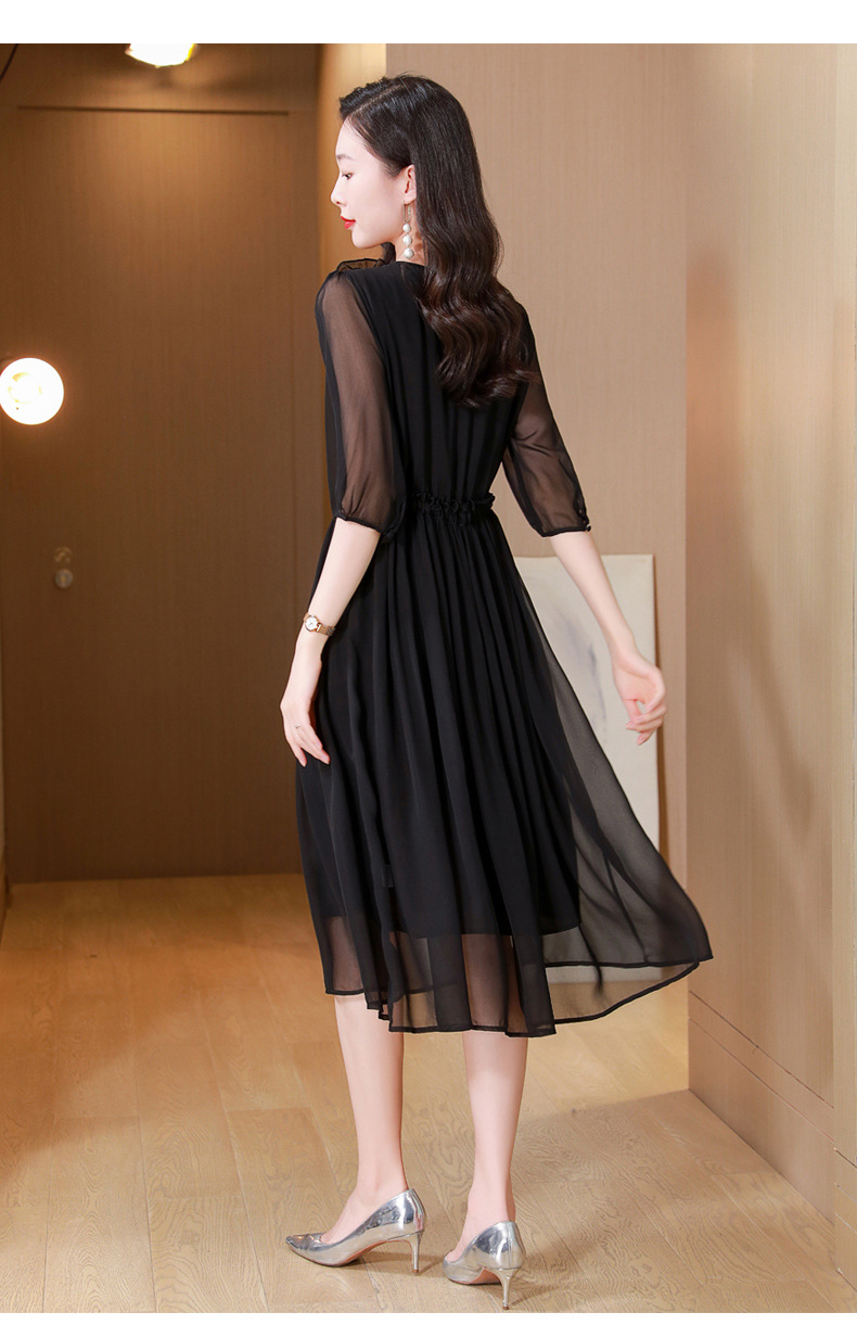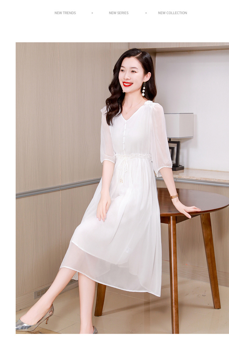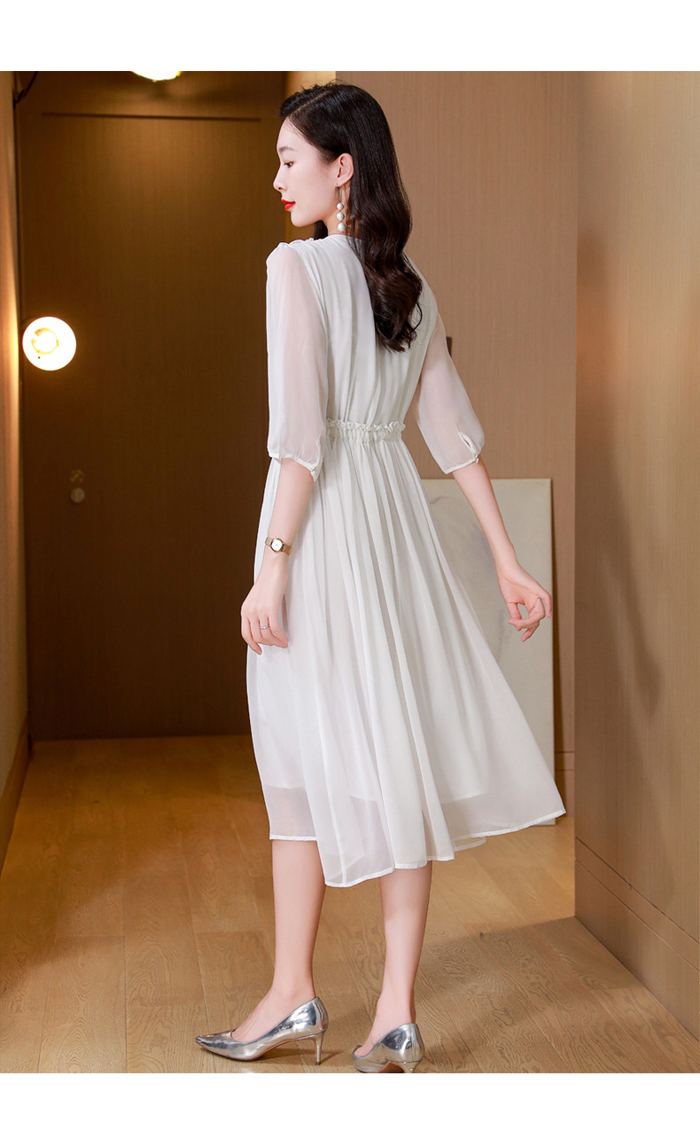 ASE-25027真丝连衣裙2024年夏季新款中长款高端度假法式真丝中长款裙子女