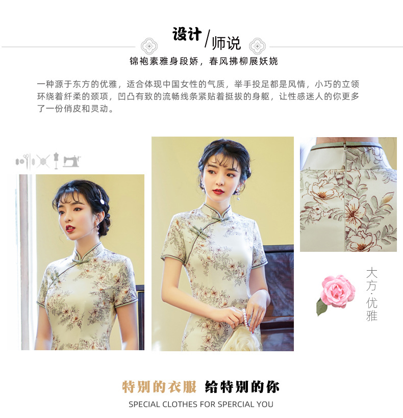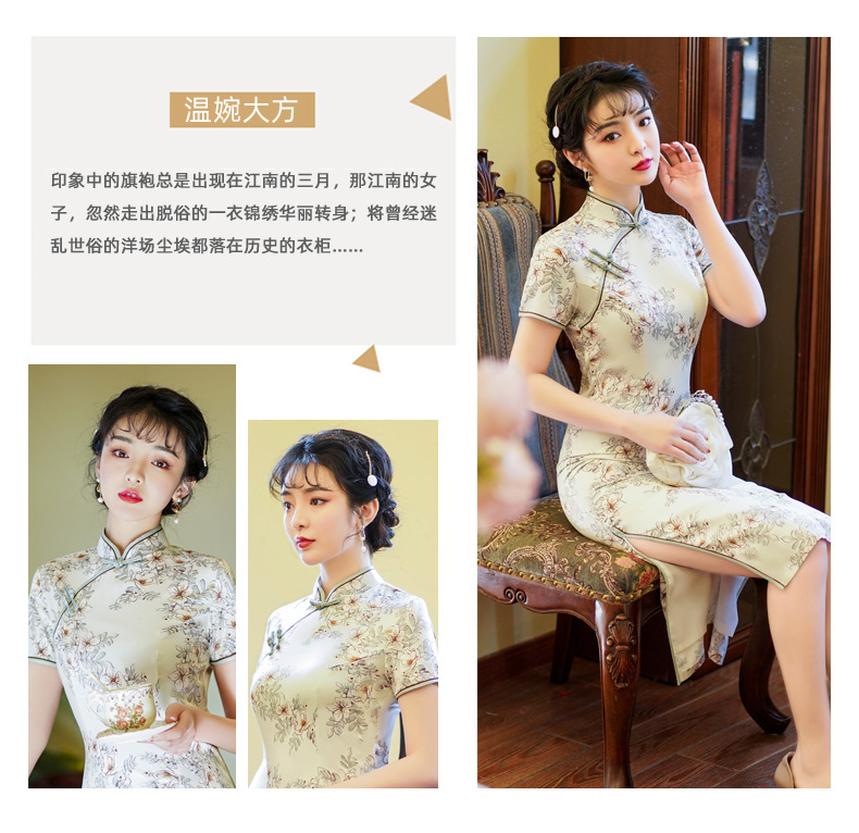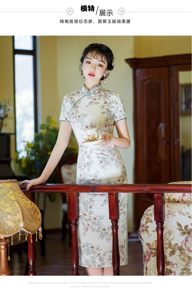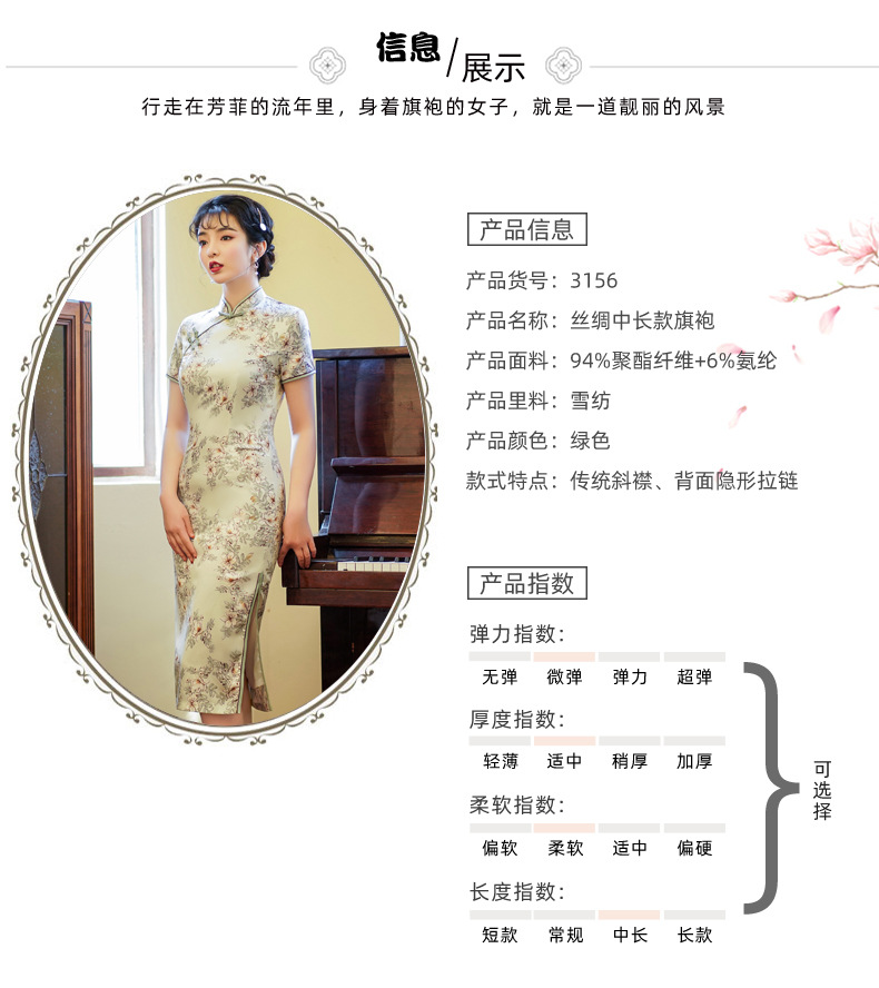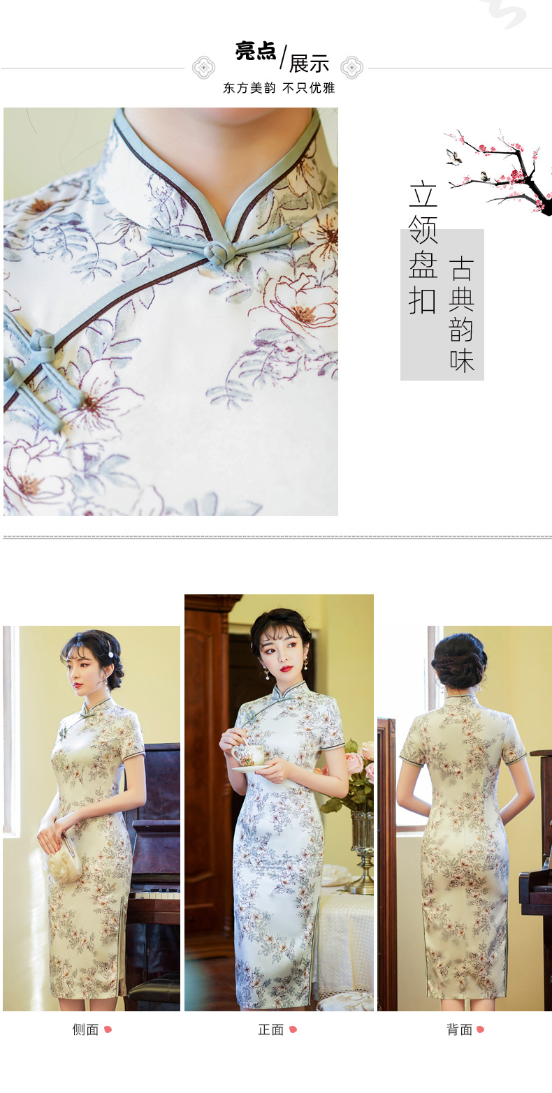 上海旗袍厂BJS-3156新款夏季高档改良复古丝绸旗袍新式中长款旗袍连衣裙