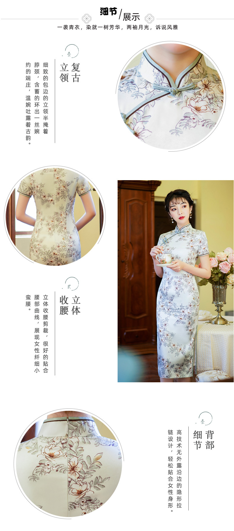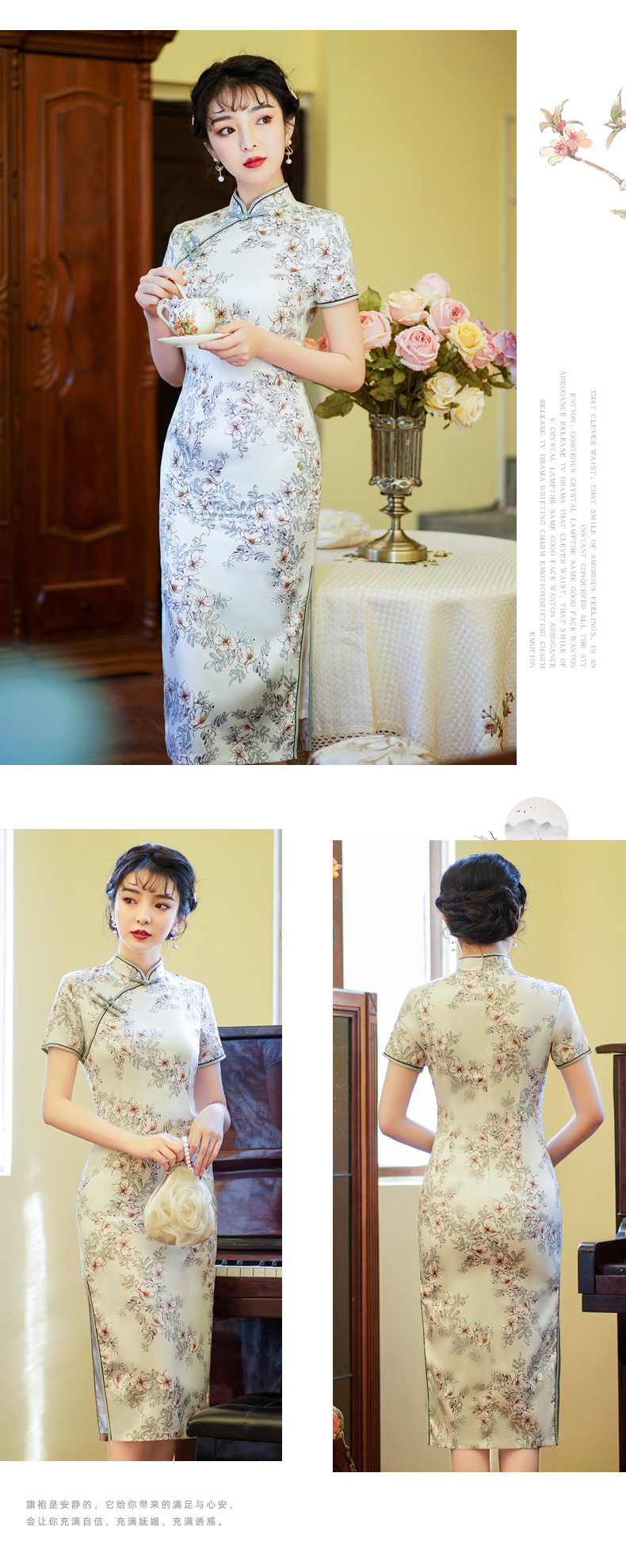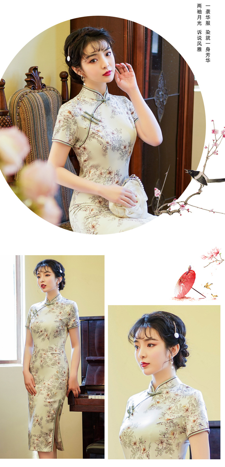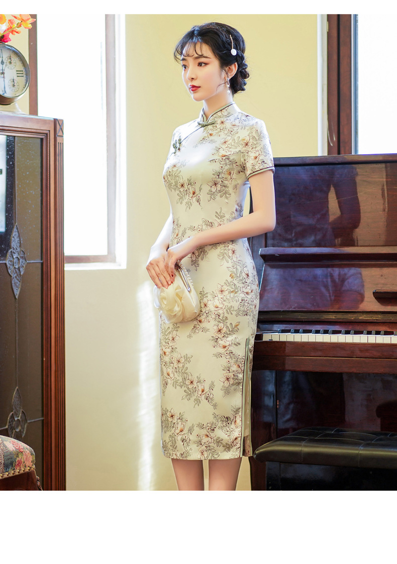 上海旗袍厂BJS-3156新款夏季高档改良复古丝绸旗袍新式中长款旗袍连衣裙