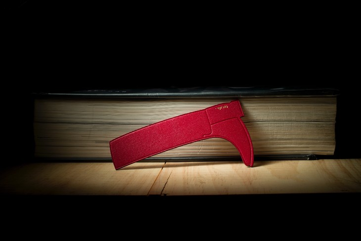 而这款马靴书签在设计时就考虑了兼具书拨的功能。而比起坚硬易碎的竹片、玉板,柔而有骨的皮革更适合拿来用作书签。