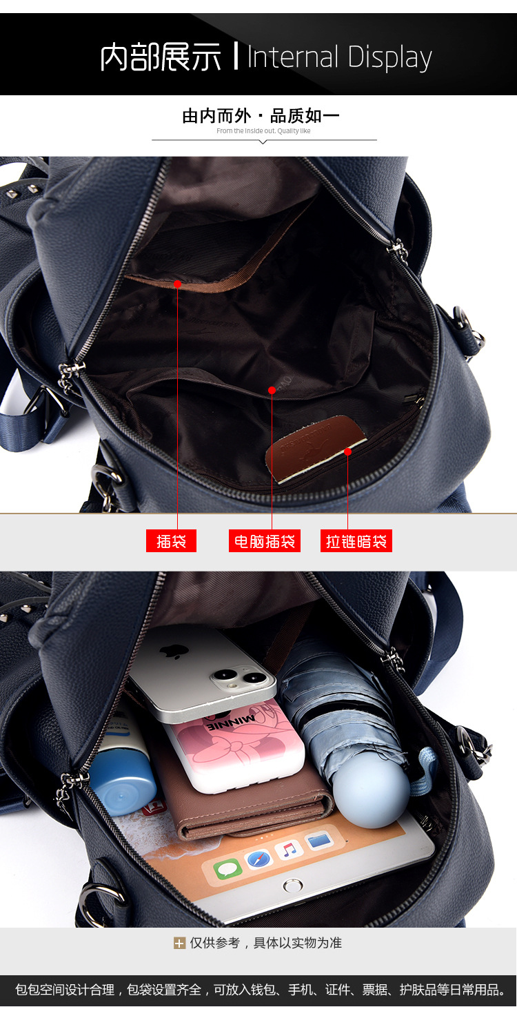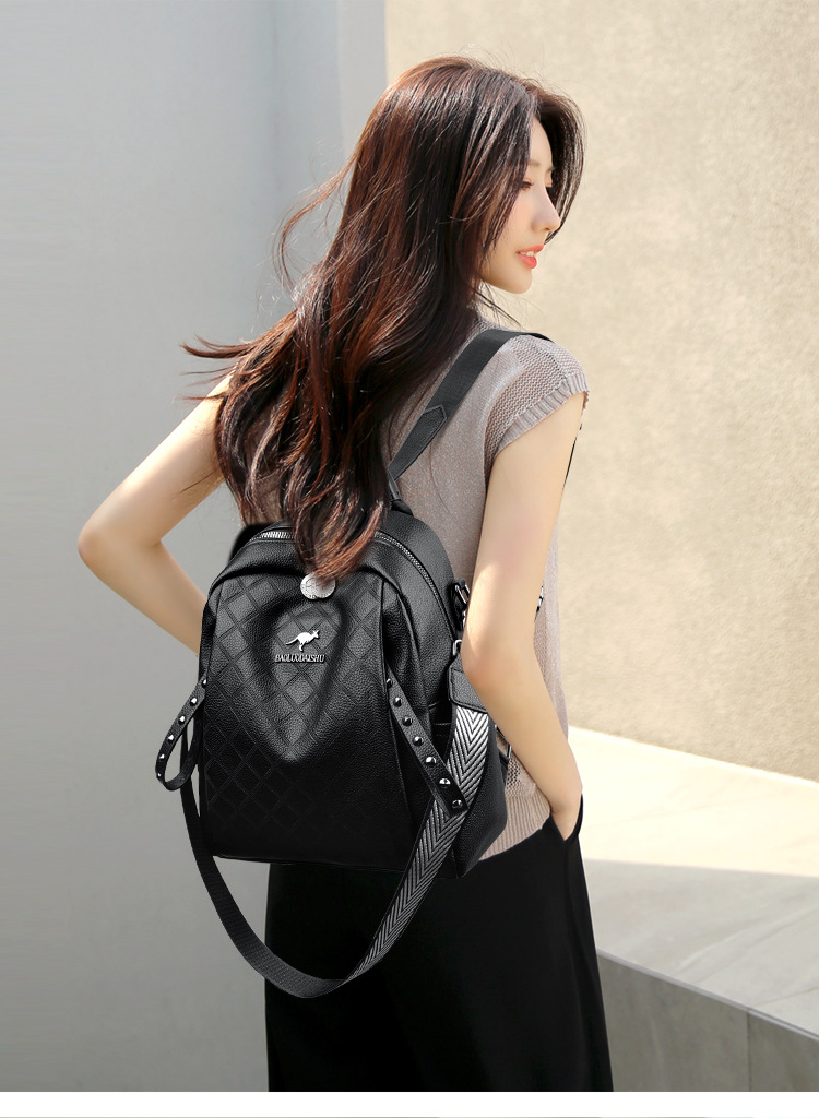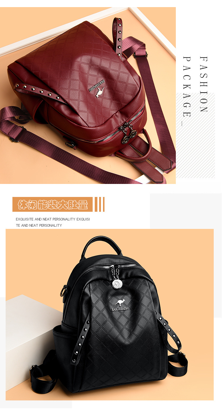 ALBB-真皮质感双肩包女2023秋冬新款韩版休闲大容量女士背包软皮旅行包(货号:BL812)
