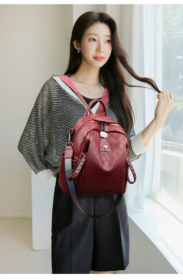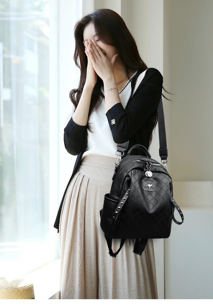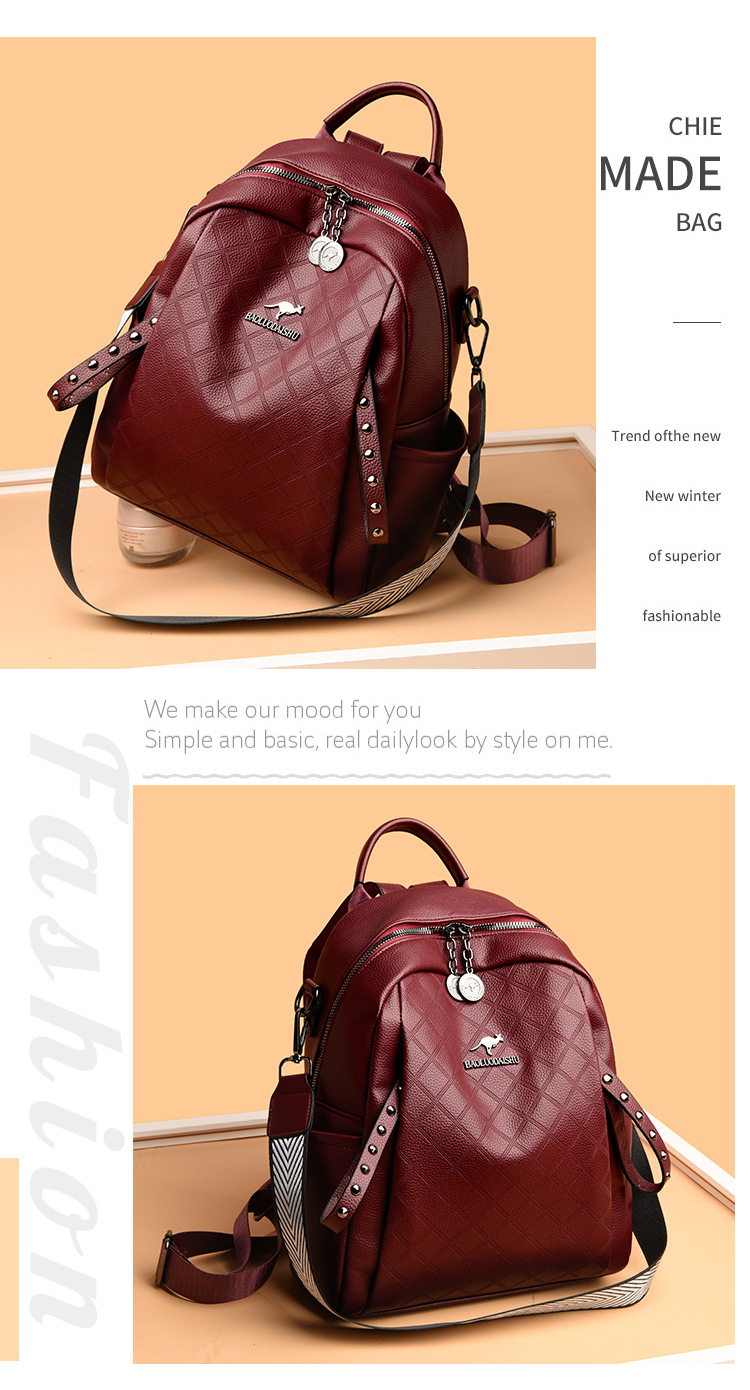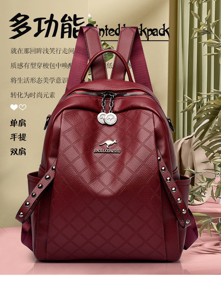 ALBB-真皮质感双肩包女2023秋冬新款韩版休闲大容量女士背包软皮旅行包(货号:BL812)
