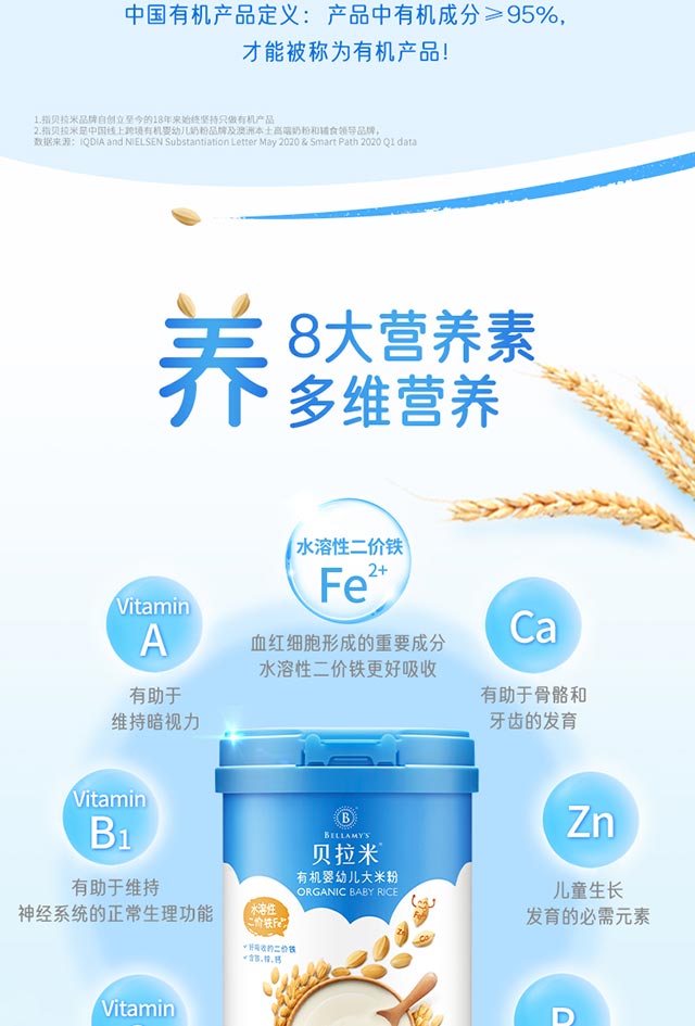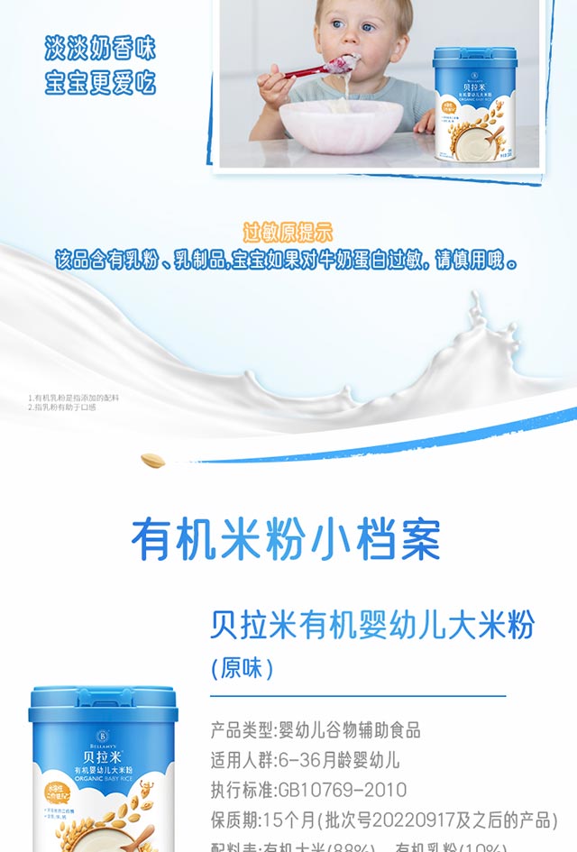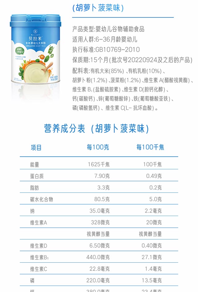 贝拉米有机婴幼儿大米粉胡萝卜菠菜味250g/罐【效期至25年8月,不参与全店营销活动】