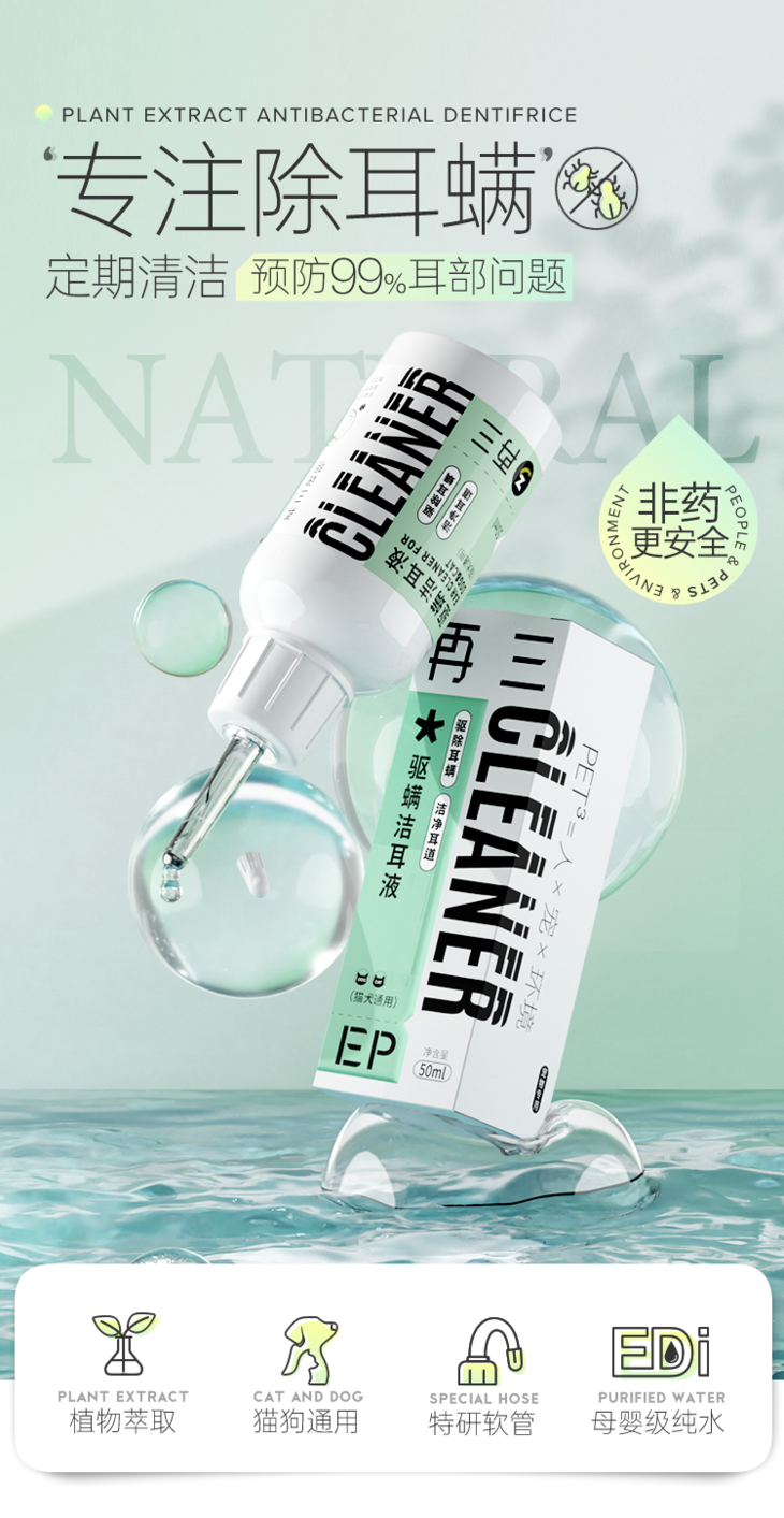 再三宠物洗耳液猫狗耳部滴耳液除耳螨日常清洁用品-W仓