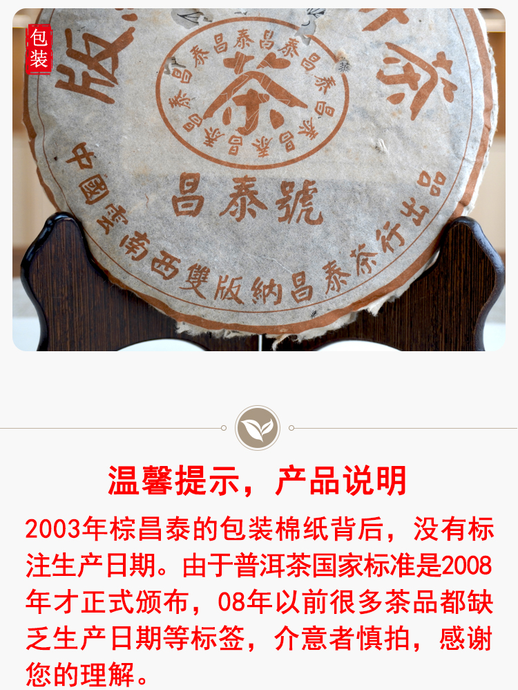 2003年棕昌泰单天书无条码批次 得分95分高品质棕昌泰 干仓真品经典老生茶