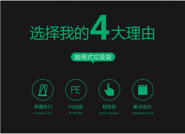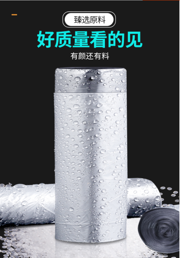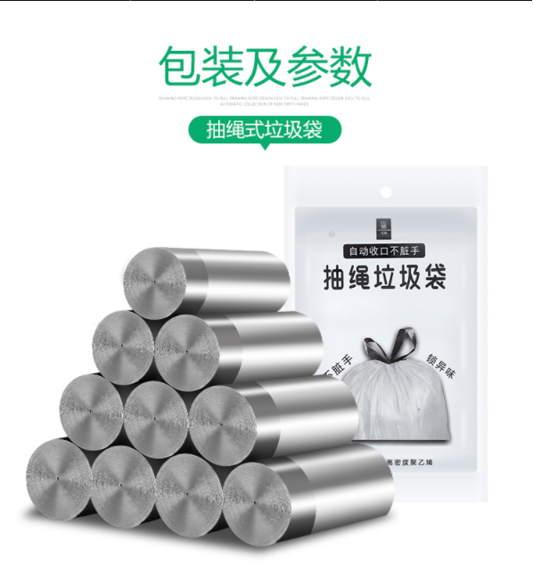 【厨房精选】家用断点式自动收口垃圾袋,加厚塑料手提抽绳银钢袋一次性垃圾袋