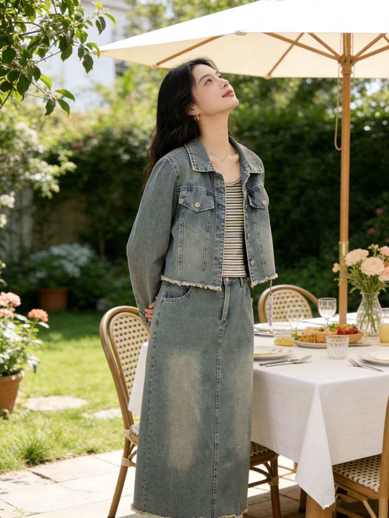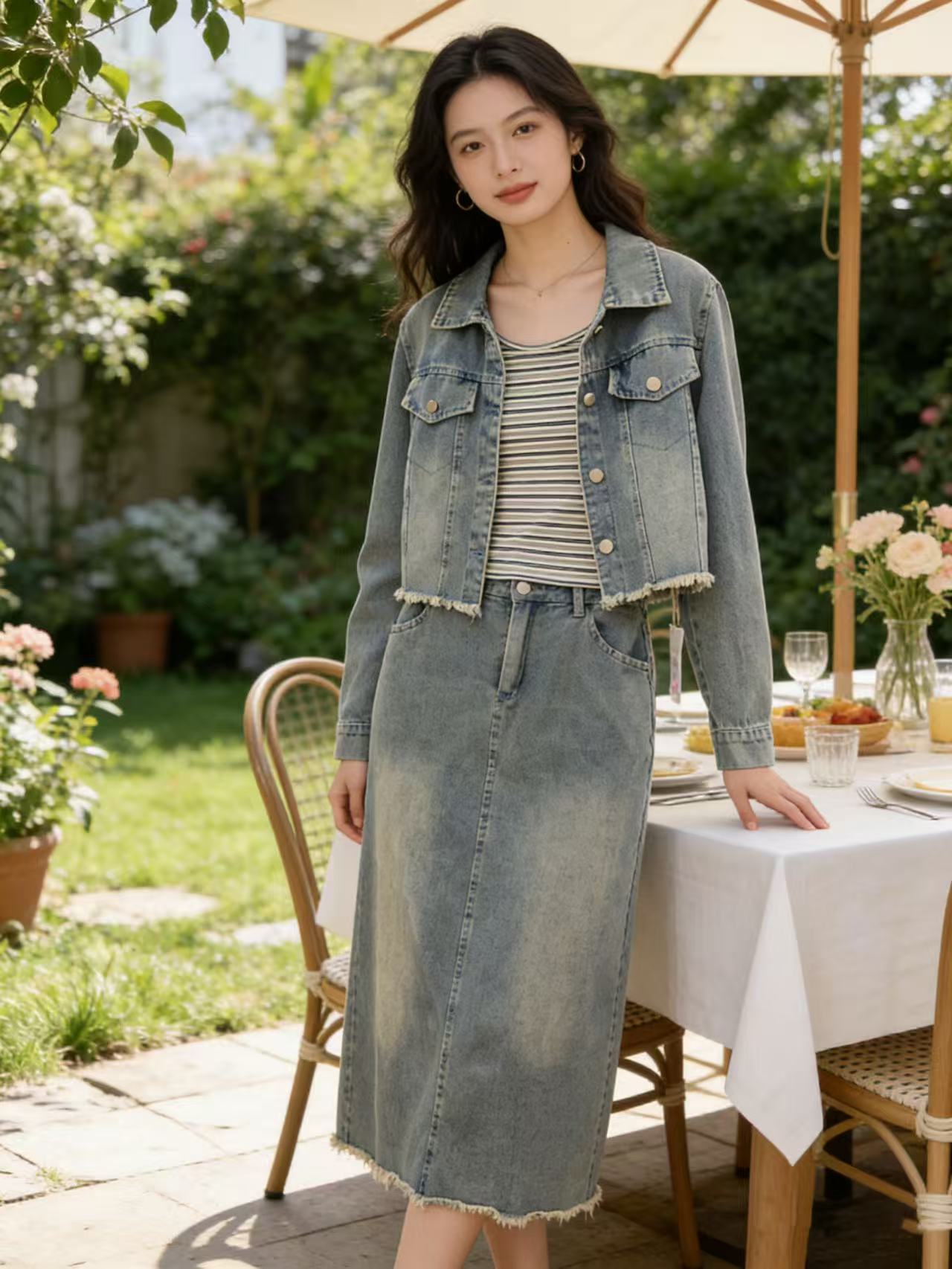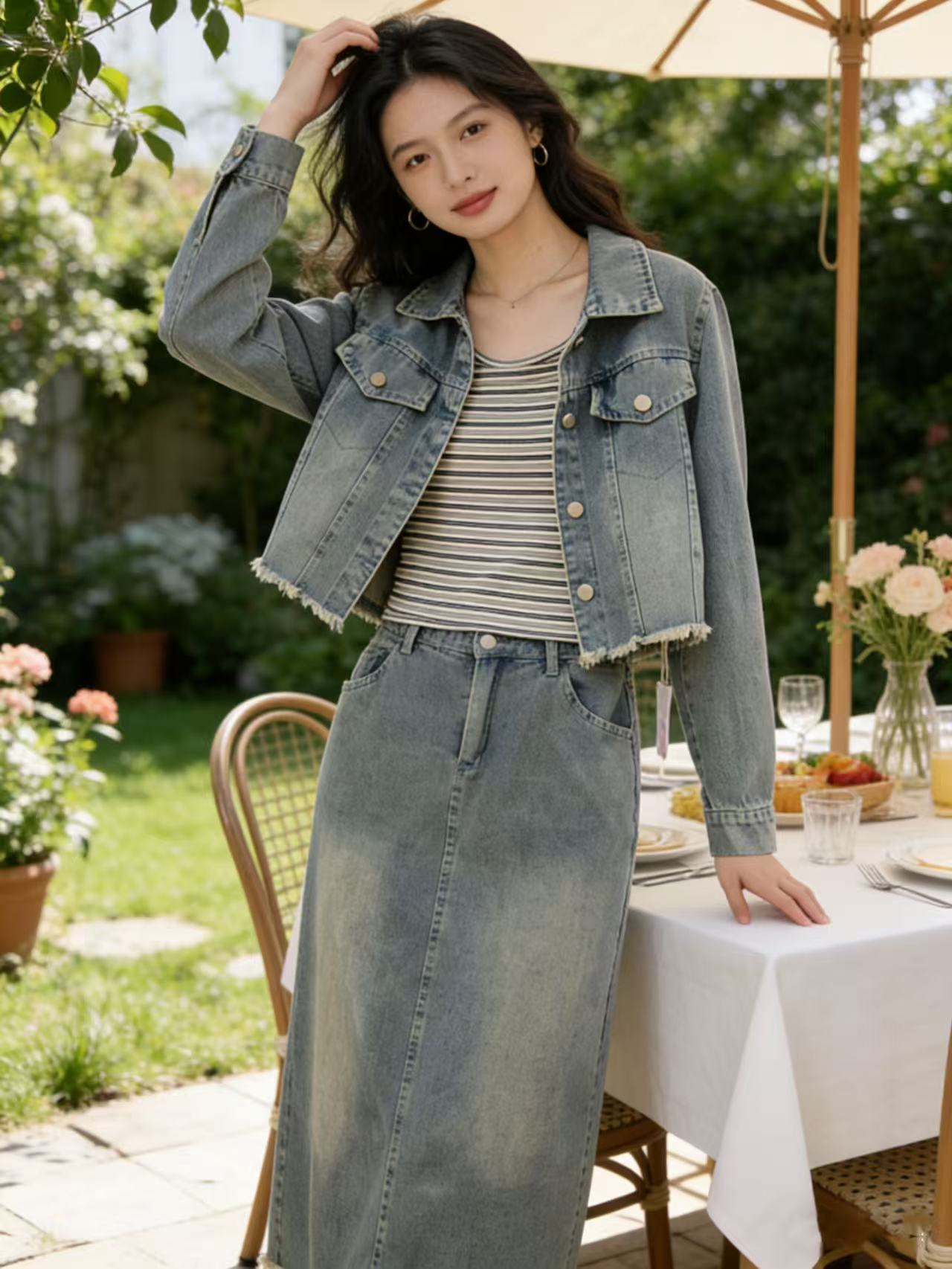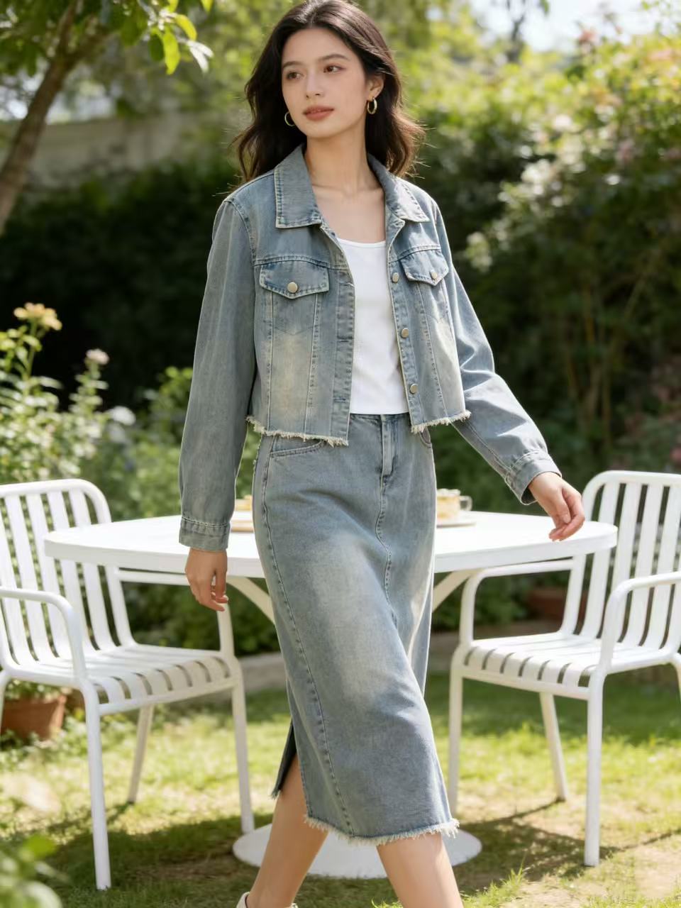 418良粉节|2026 活动爆款【自营】衣周期~(三件套)A10牛仔外套➕吊带➕牛仔半身套装-喜出