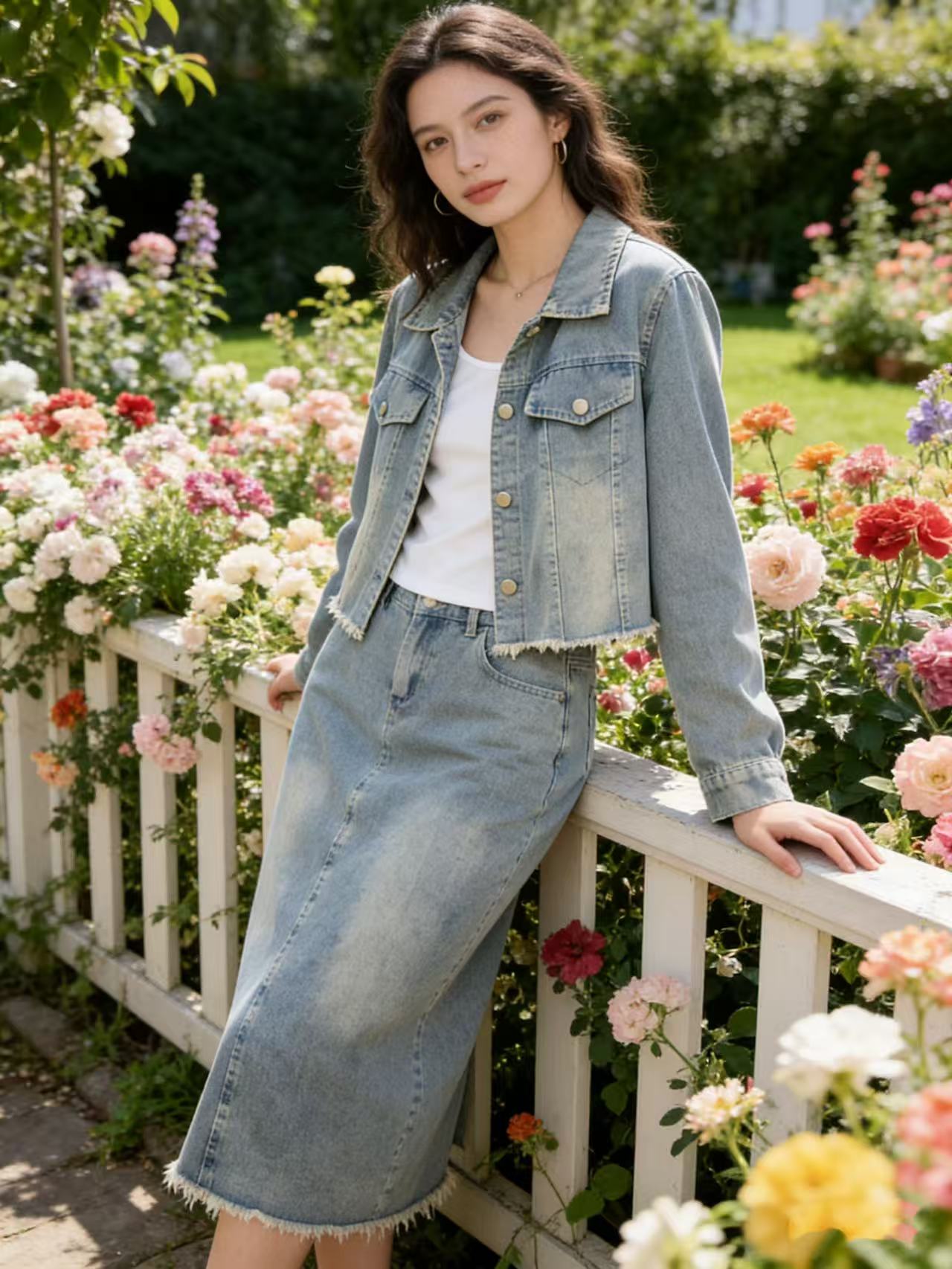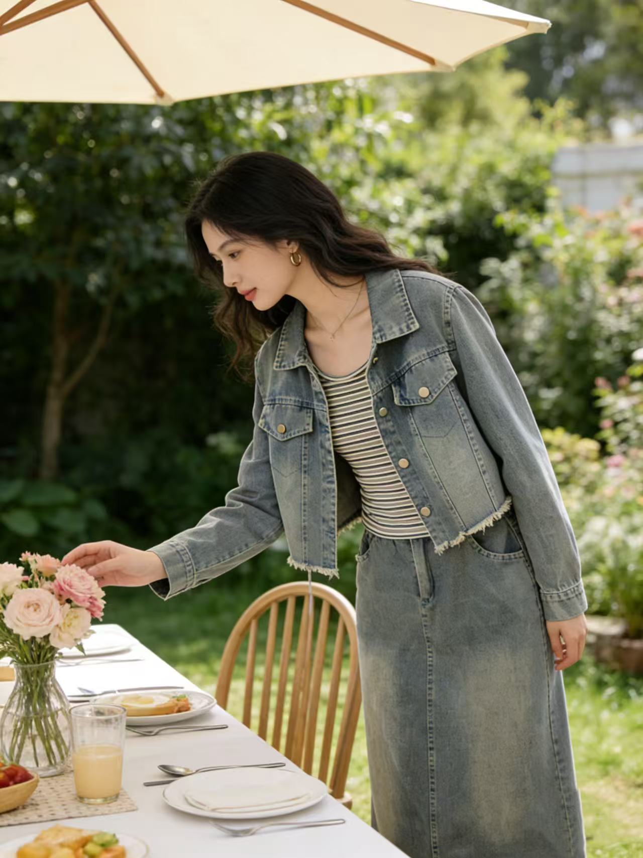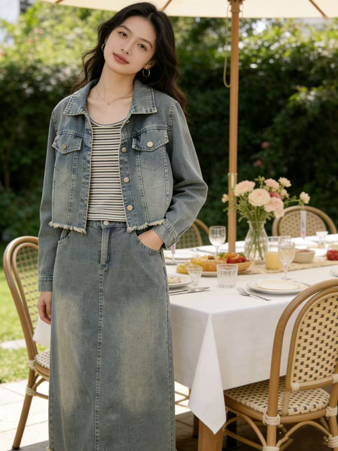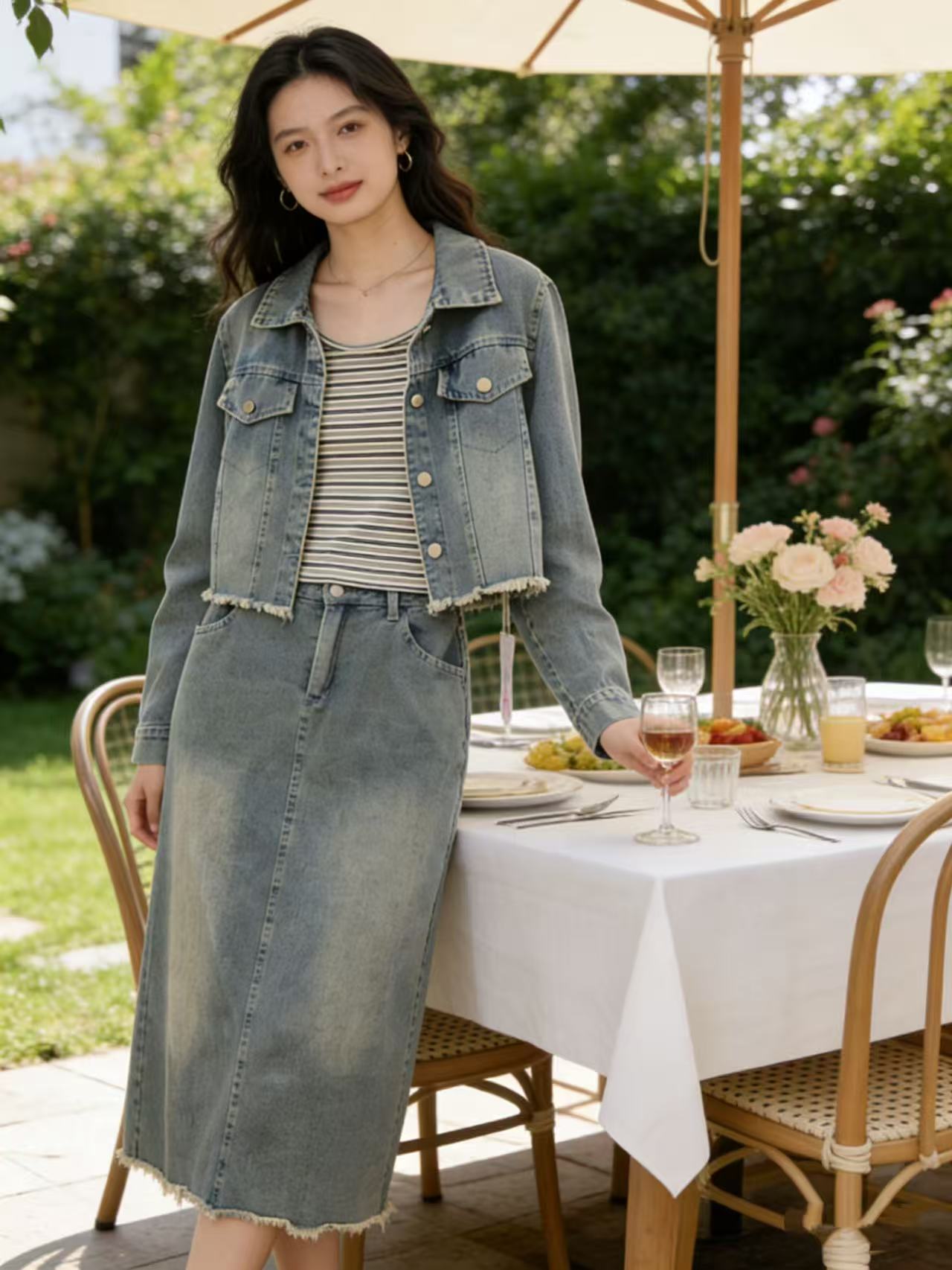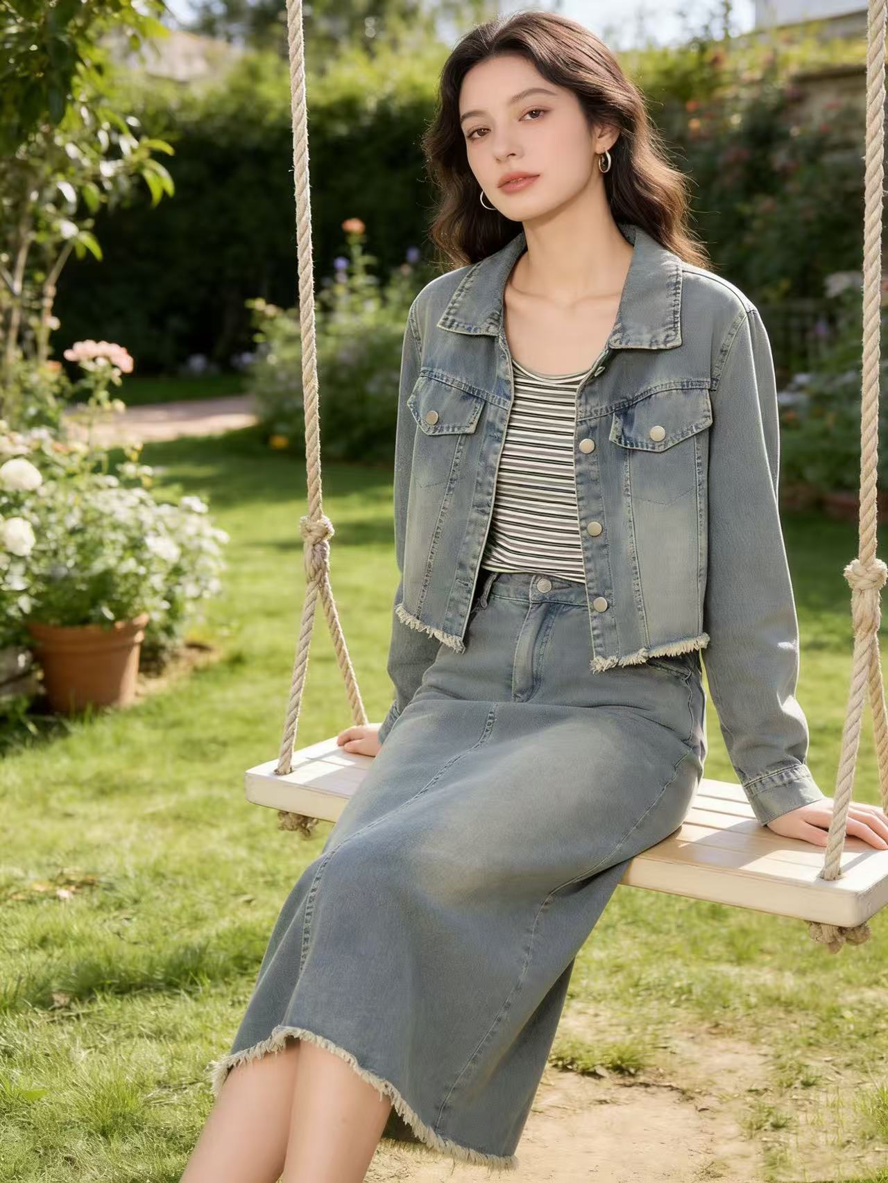 418良粉节|2026 活动爆款【自营】衣周期~(三件套)A10牛仔外套➕吊带➕牛仔半身套装-喜出
