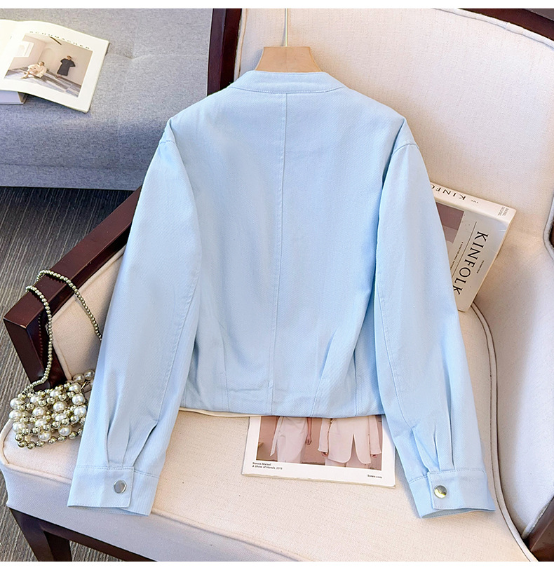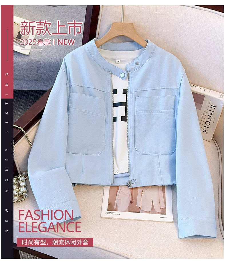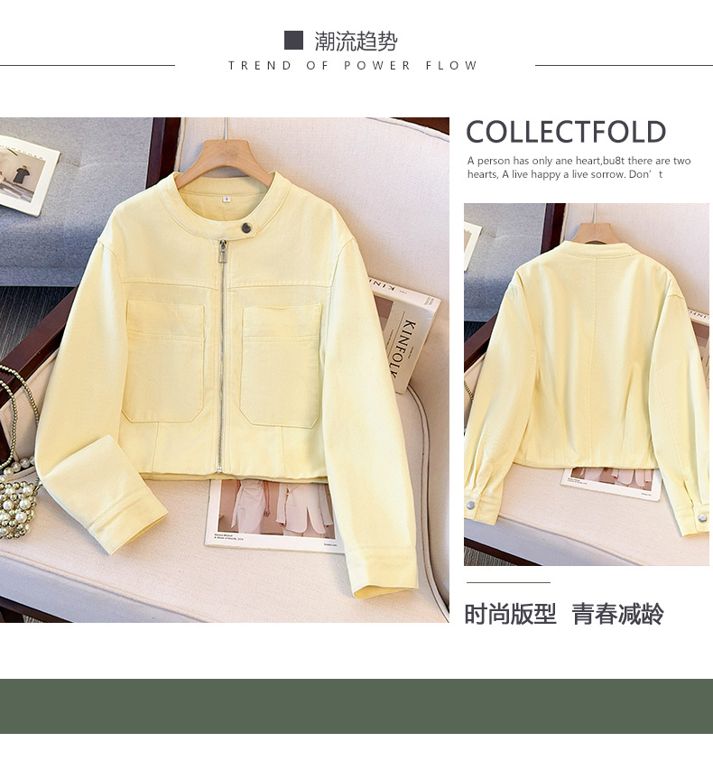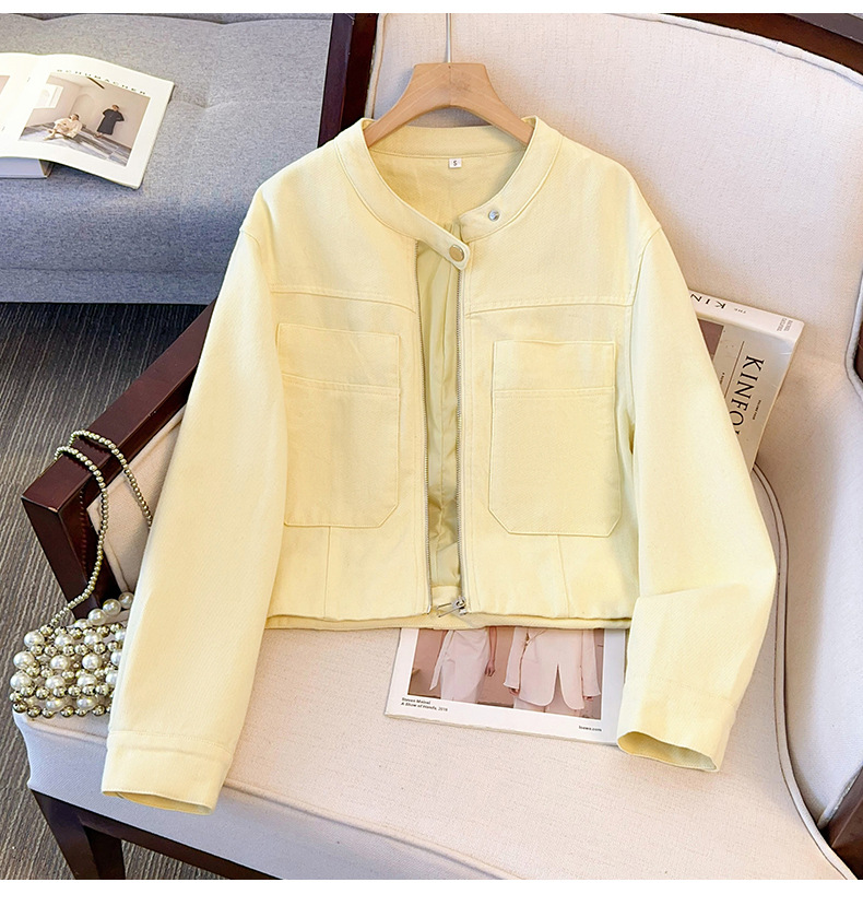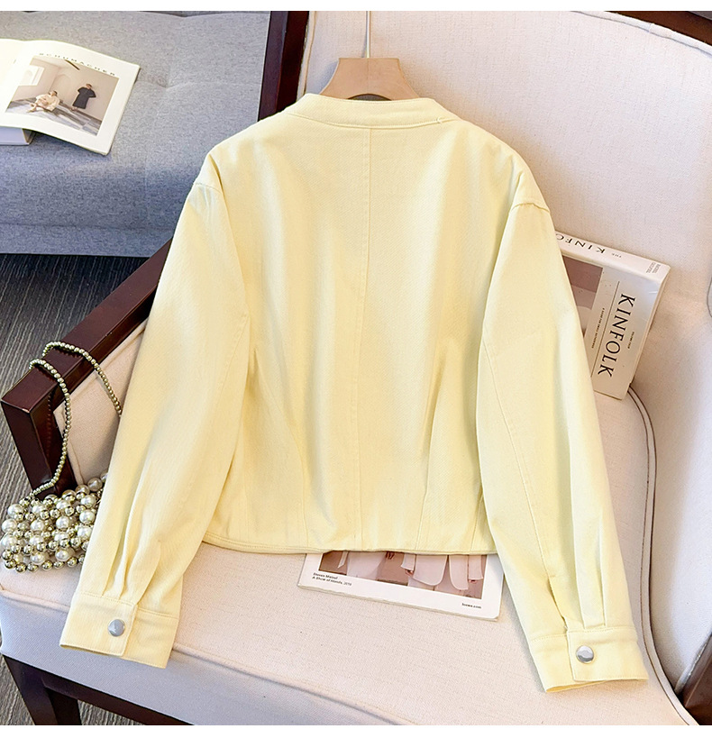 丁摩 超火小香风奶黄色圆领牛仔外套女短款春装新款减龄夹克6ZF-2537