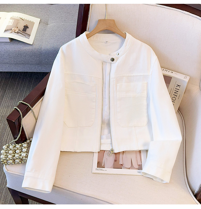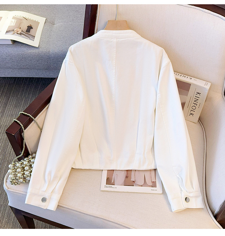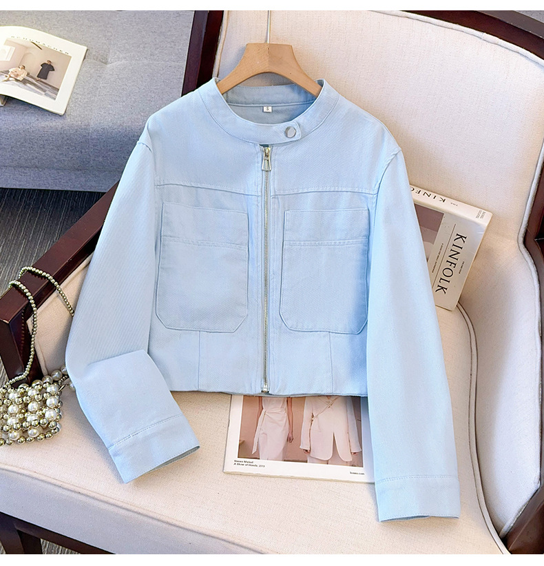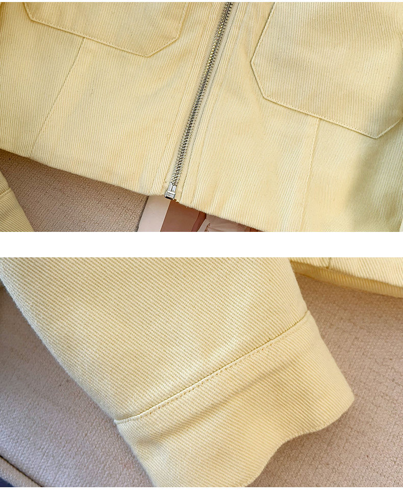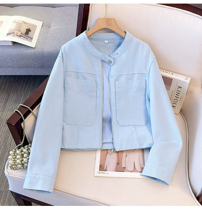 丁摩 超火小香风奶黄色圆领牛仔外套女短款春装新款减龄夹克6ZF-2537