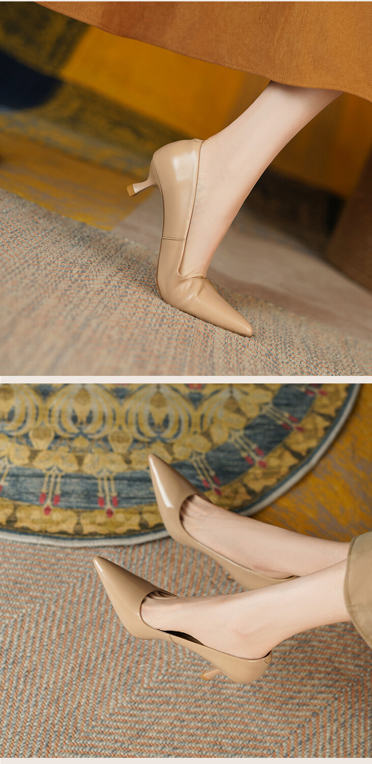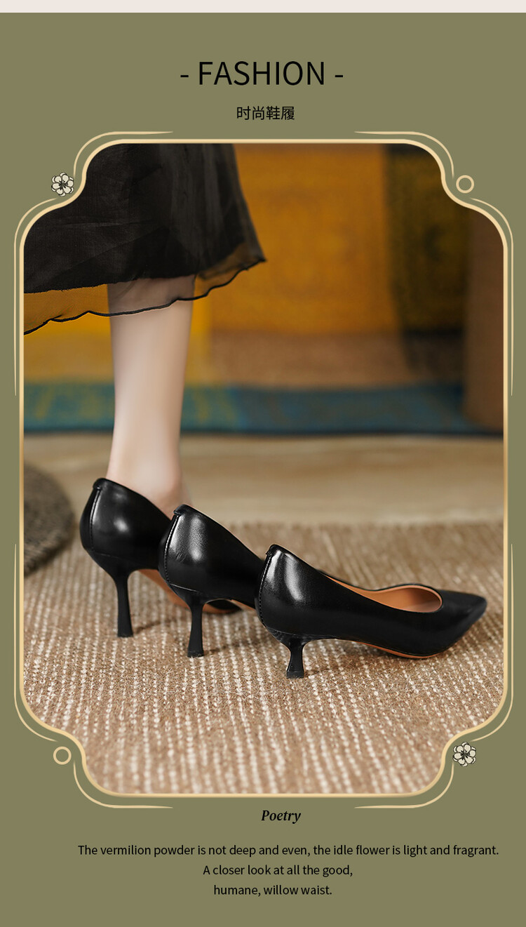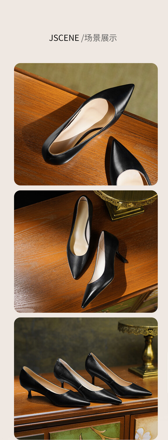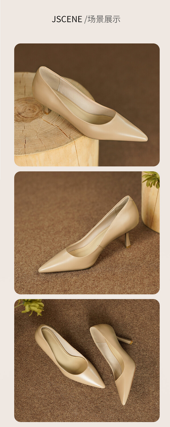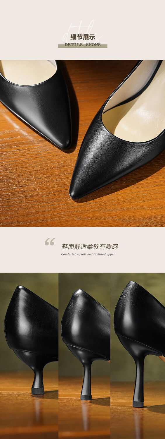 【预售5天】牛皮高跟鞋2024新款春秋季不累脚工作鞋细跟尖头女士单鞋HYDD&2024