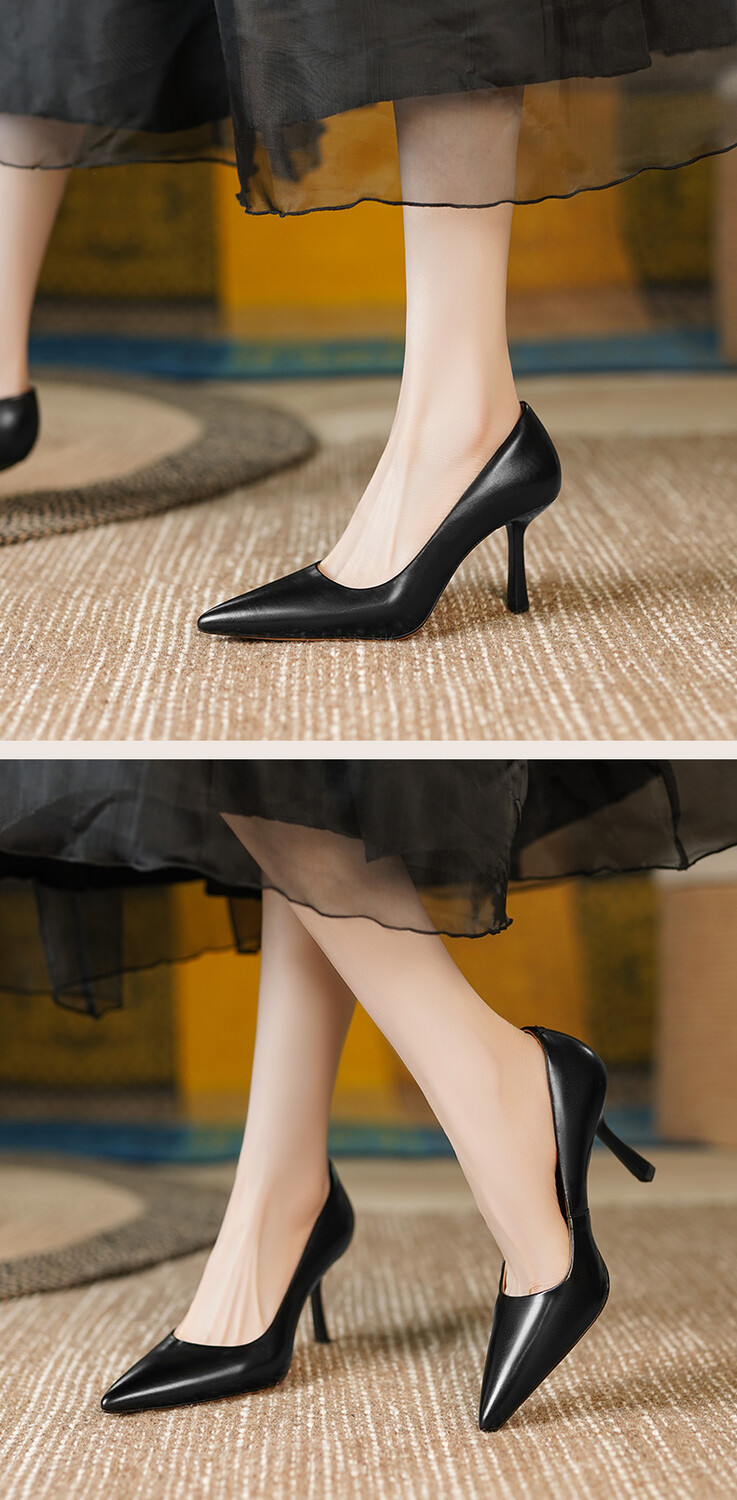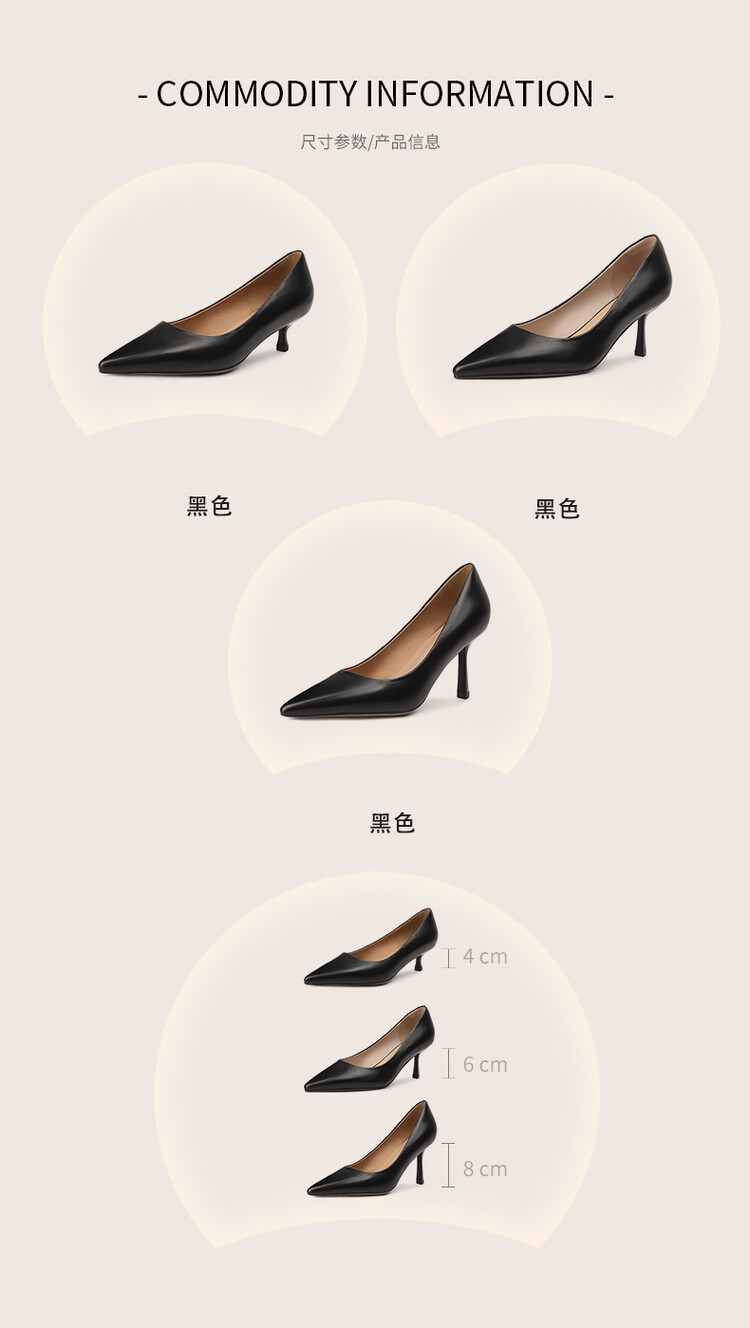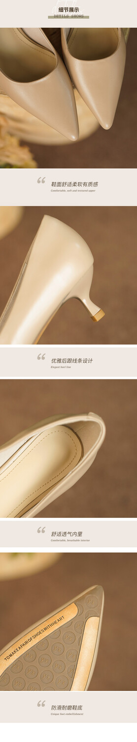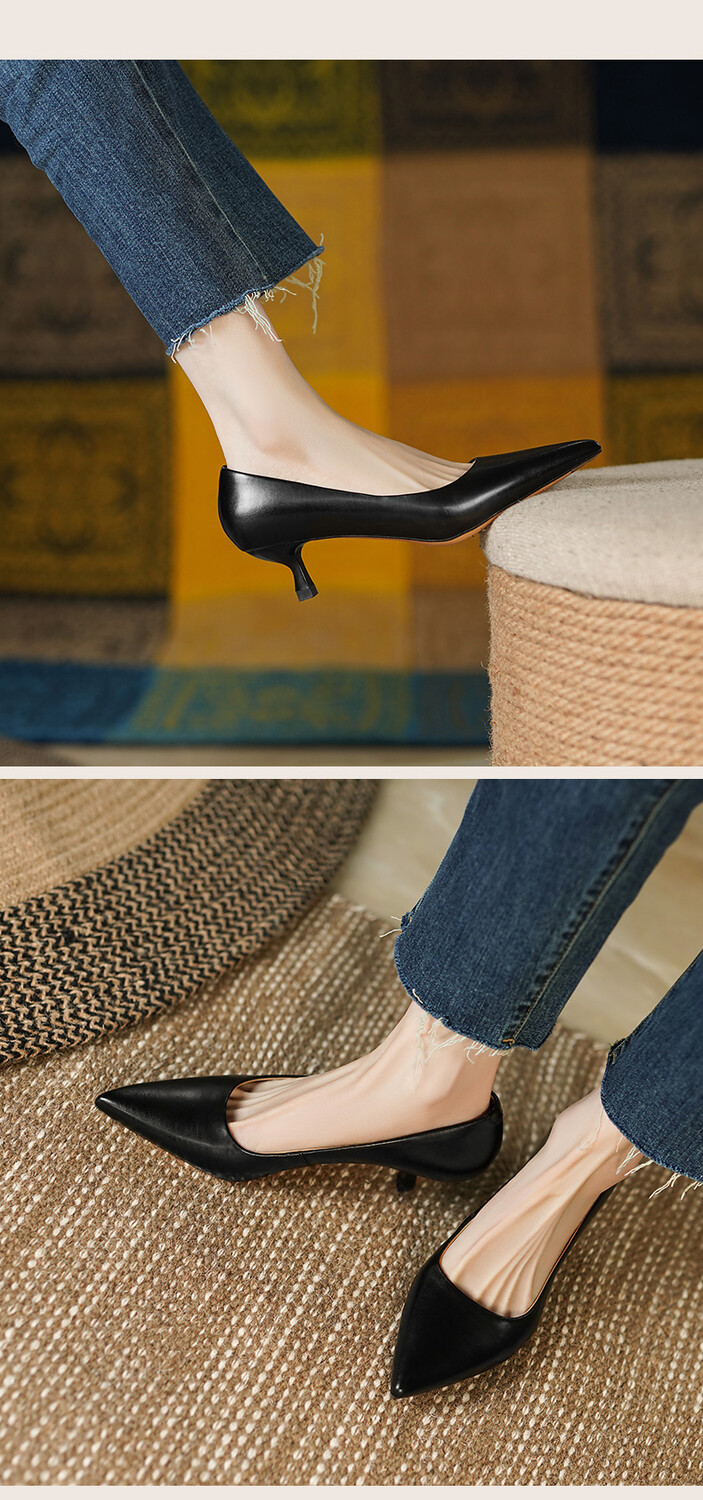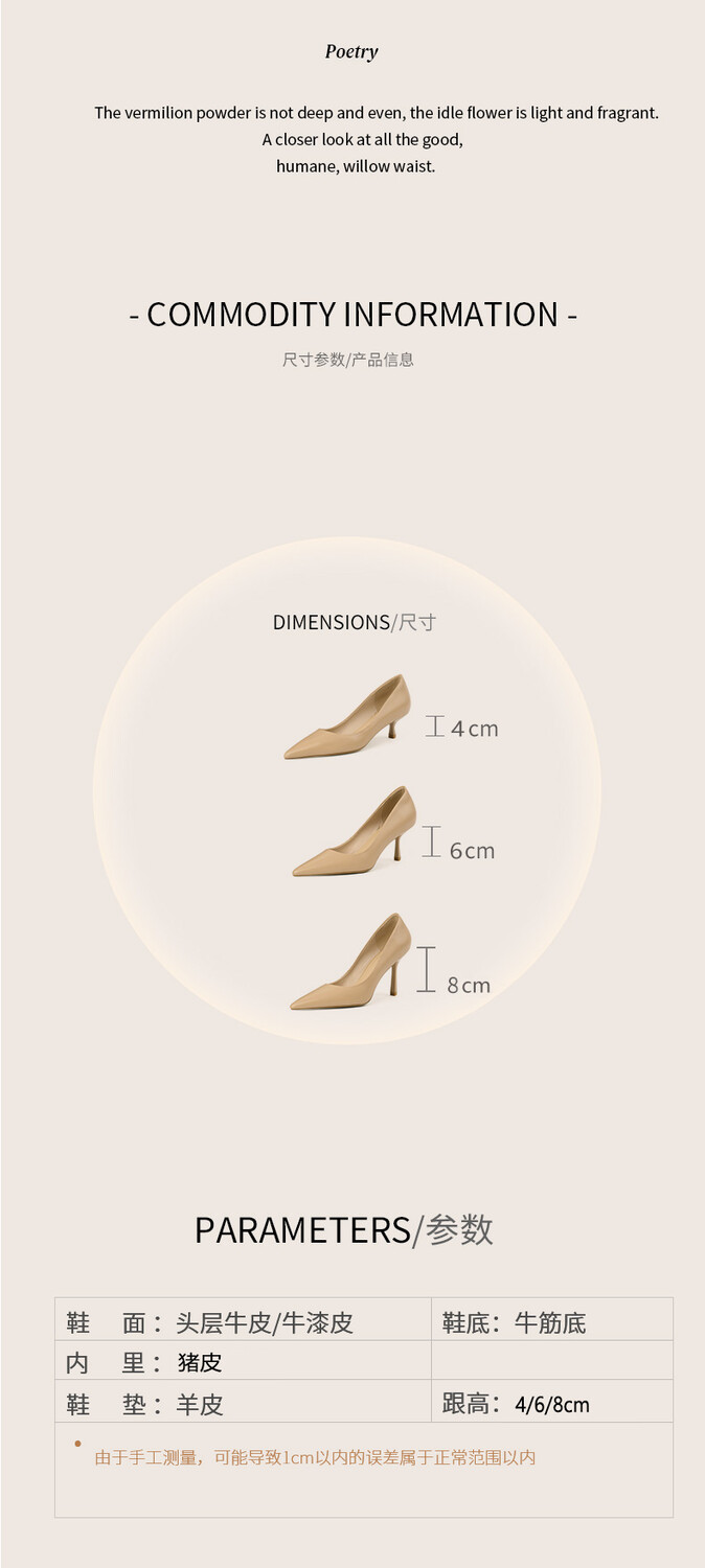 【预售5天】牛皮高跟鞋2024新款春秋季不累脚工作鞋细跟尖头女士单鞋HYDD&2024