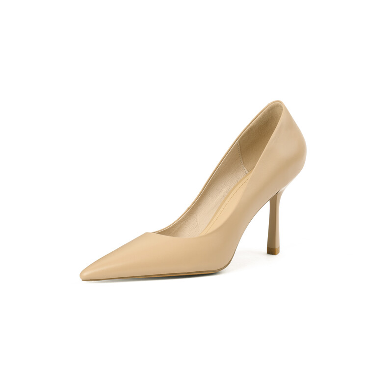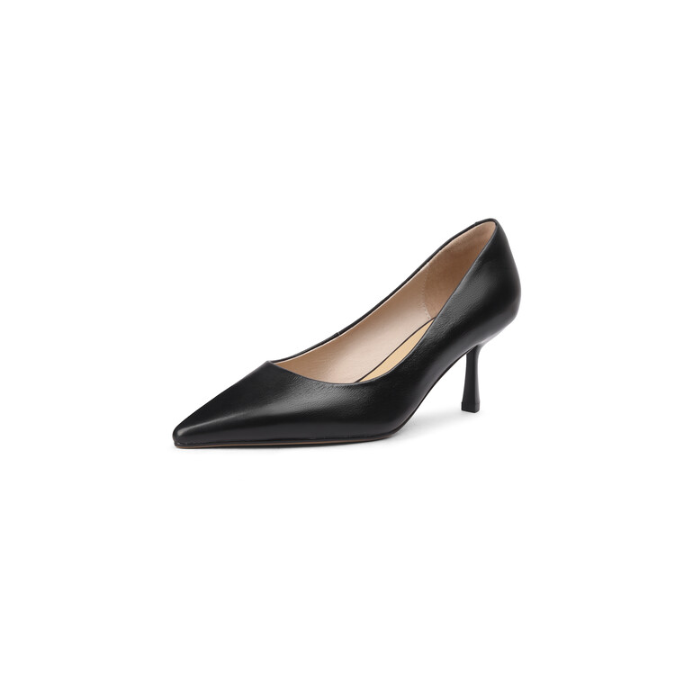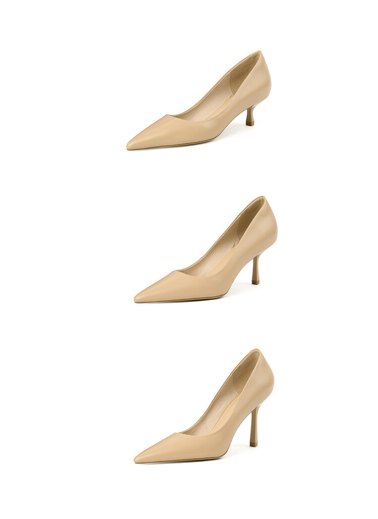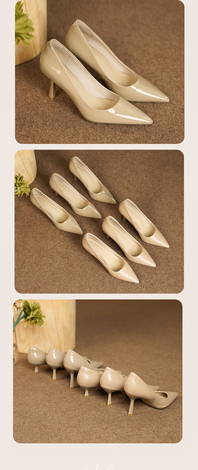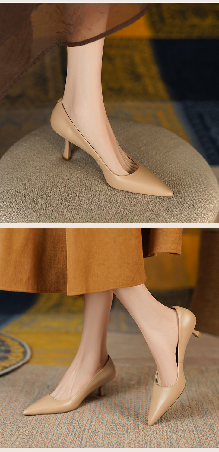 【预售5天】牛皮高跟鞋2024新款春秋季不累脚工作鞋细跟尖头女士单鞋HYDD&2024