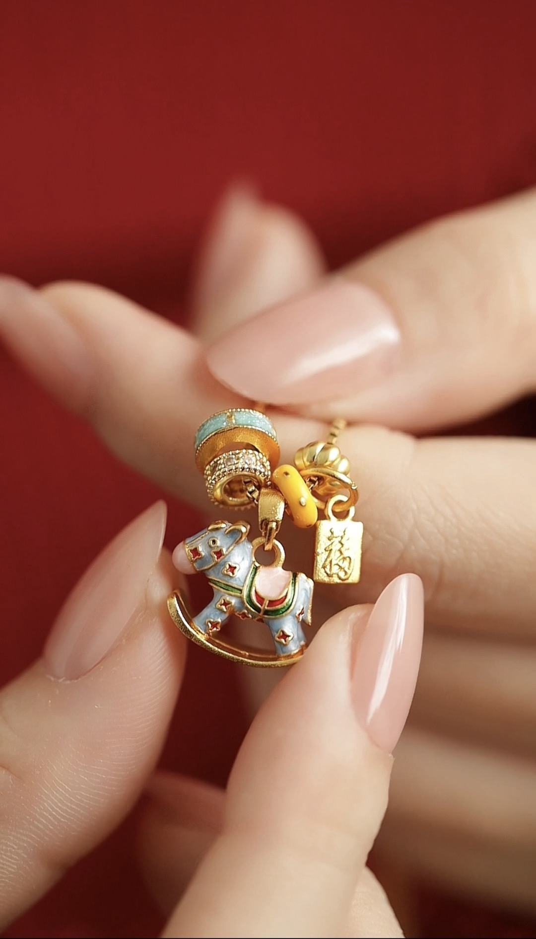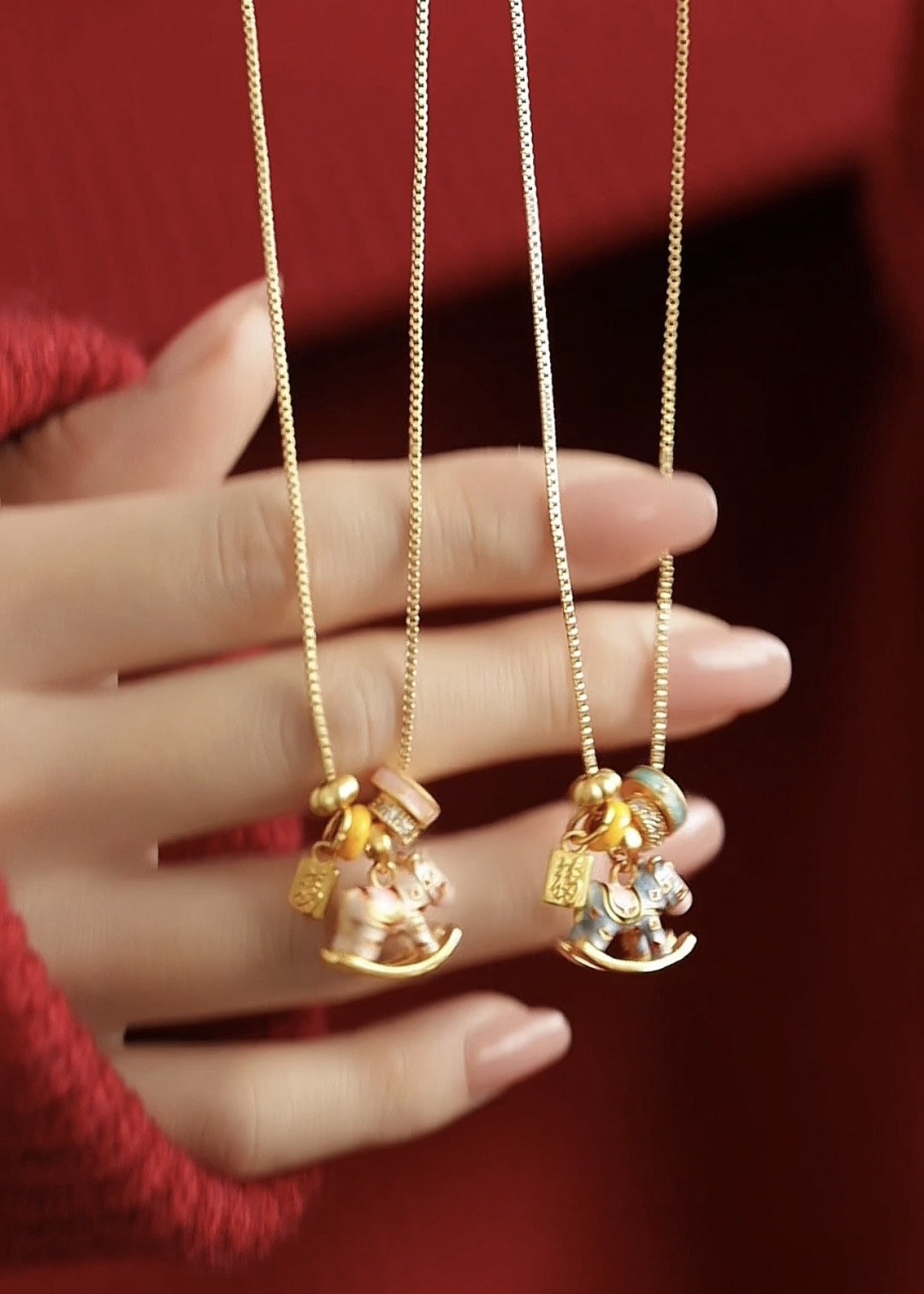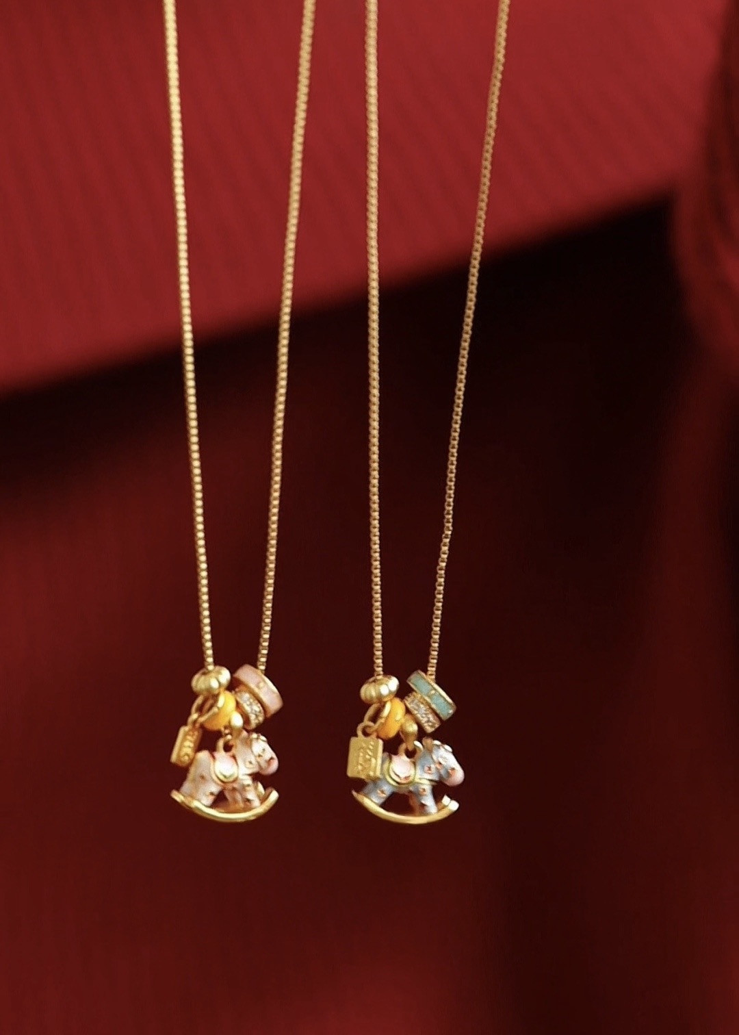 ✅粉色「丹粉踏春款」萃取〈天街小雨润如酥,草色遥看近却无〉的春日意趣,柔粉珐琅晕染马身,恰似枝头初绽的桃花,嫩蕊轻摇,藏尽春光。金链环衬粉雕小马,宛若踏春而来的祥瑞使者,暗合「春风得意马蹄疾」的吉愿,把春日的灵动与温柔,悄悄系在颈畔。
