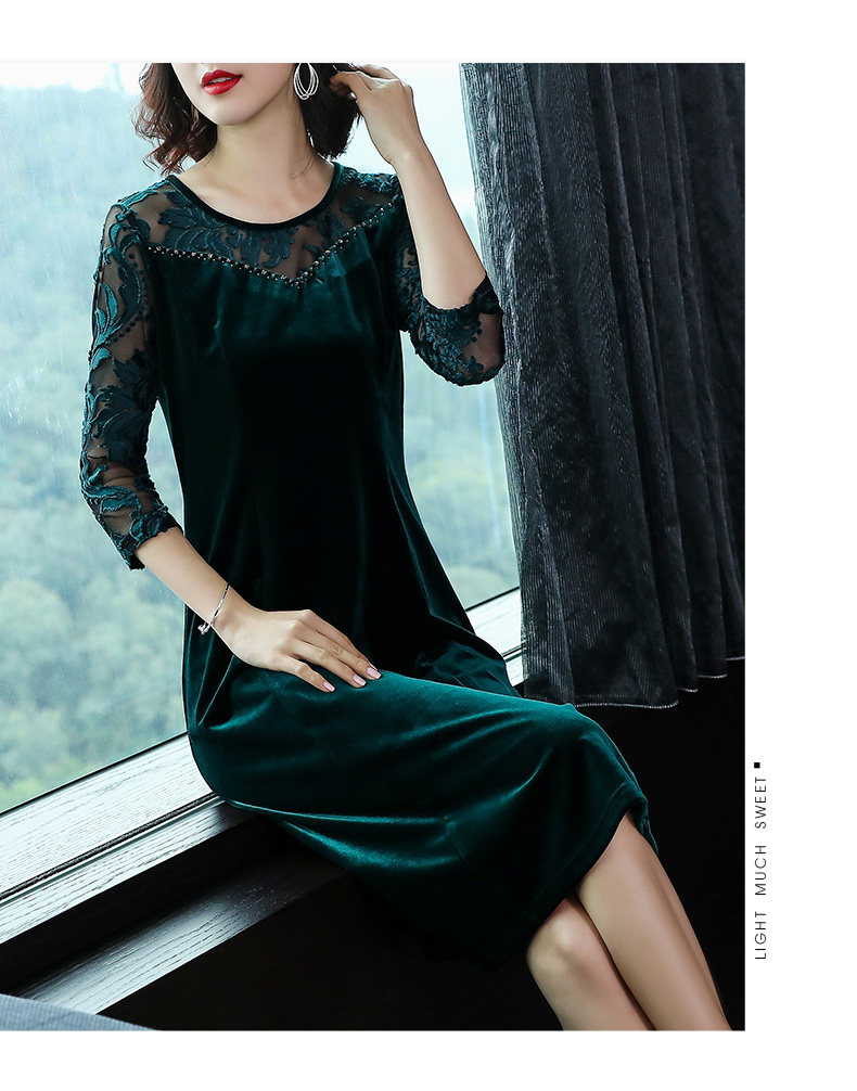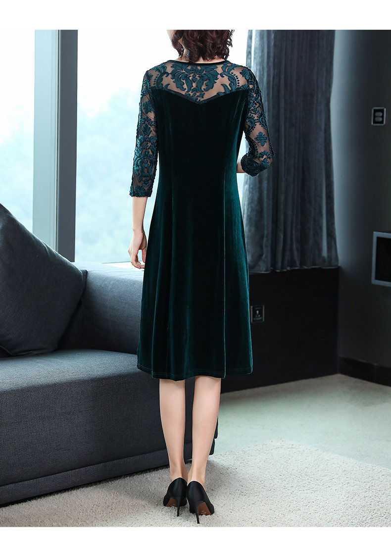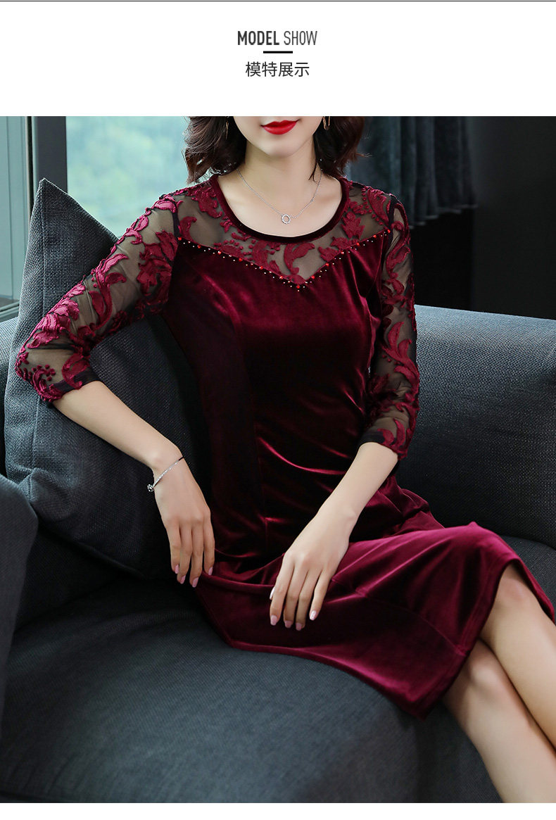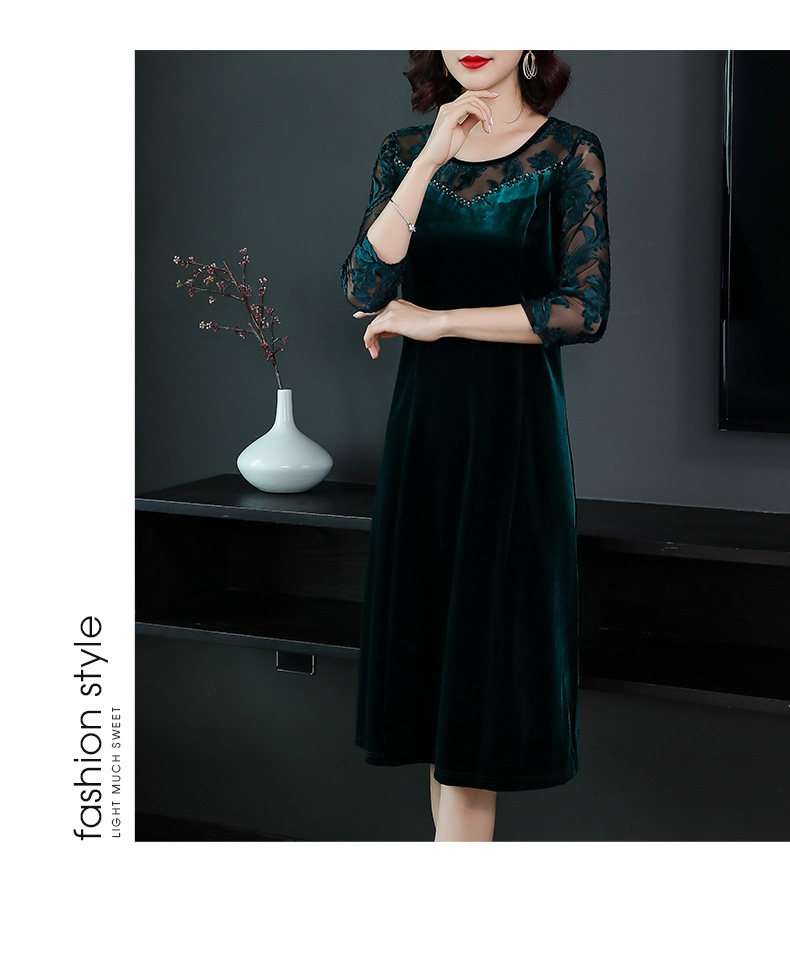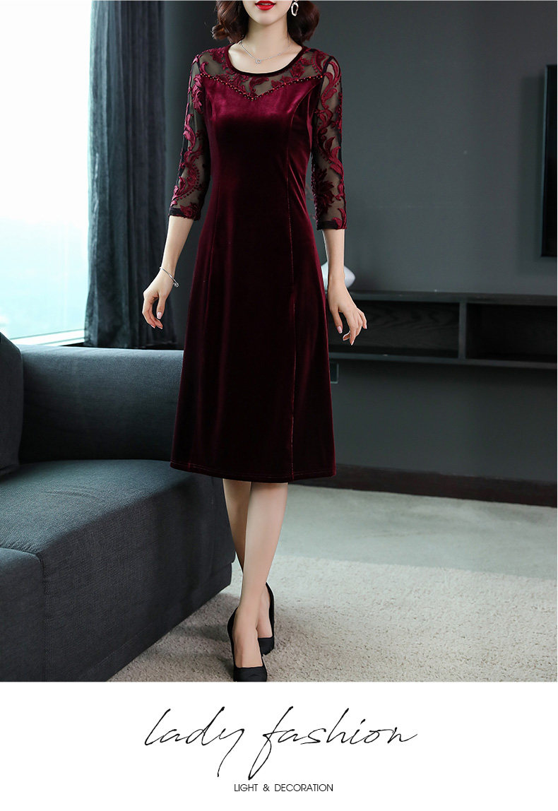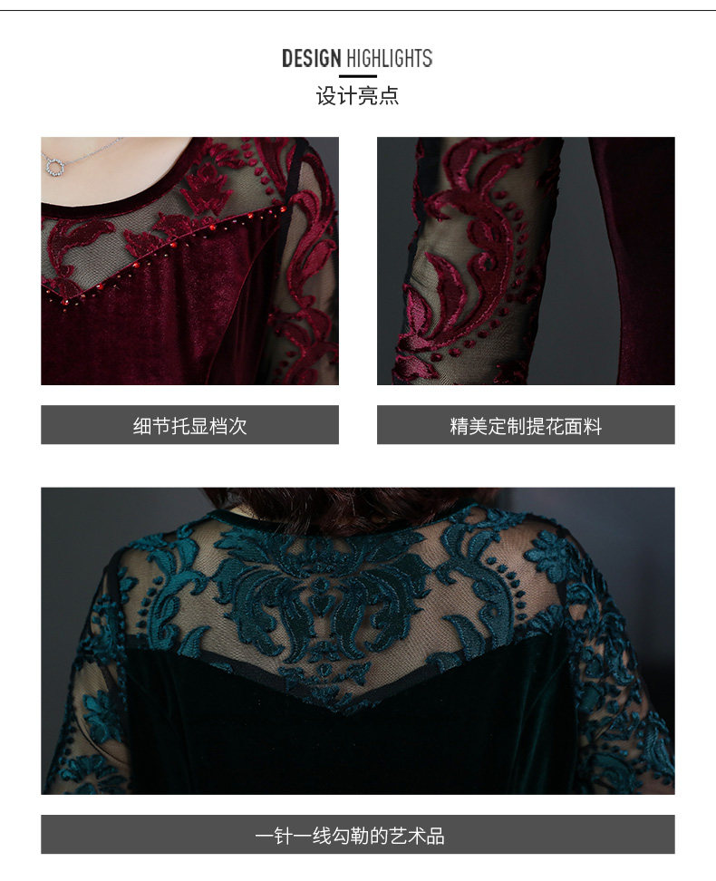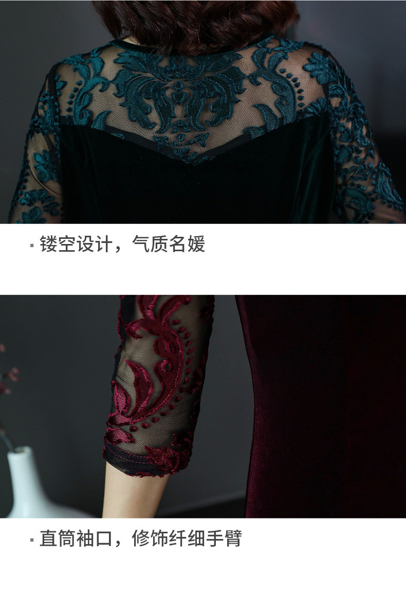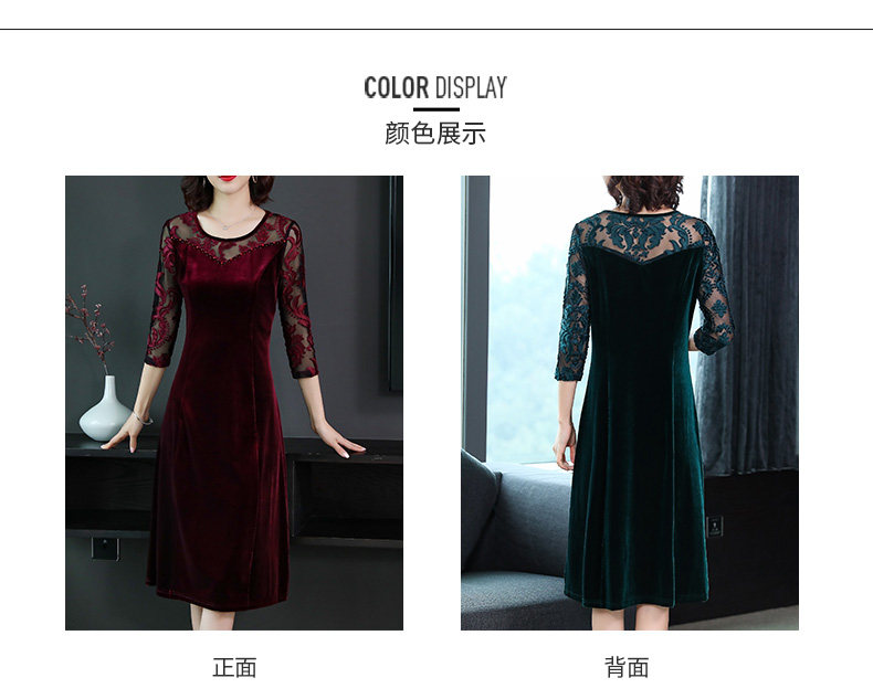 MQ-A909春秋新款气质收腰提花网纱拼接阔太太金丝绒连衣裙ZXH