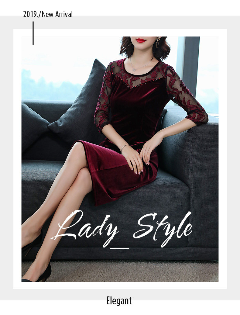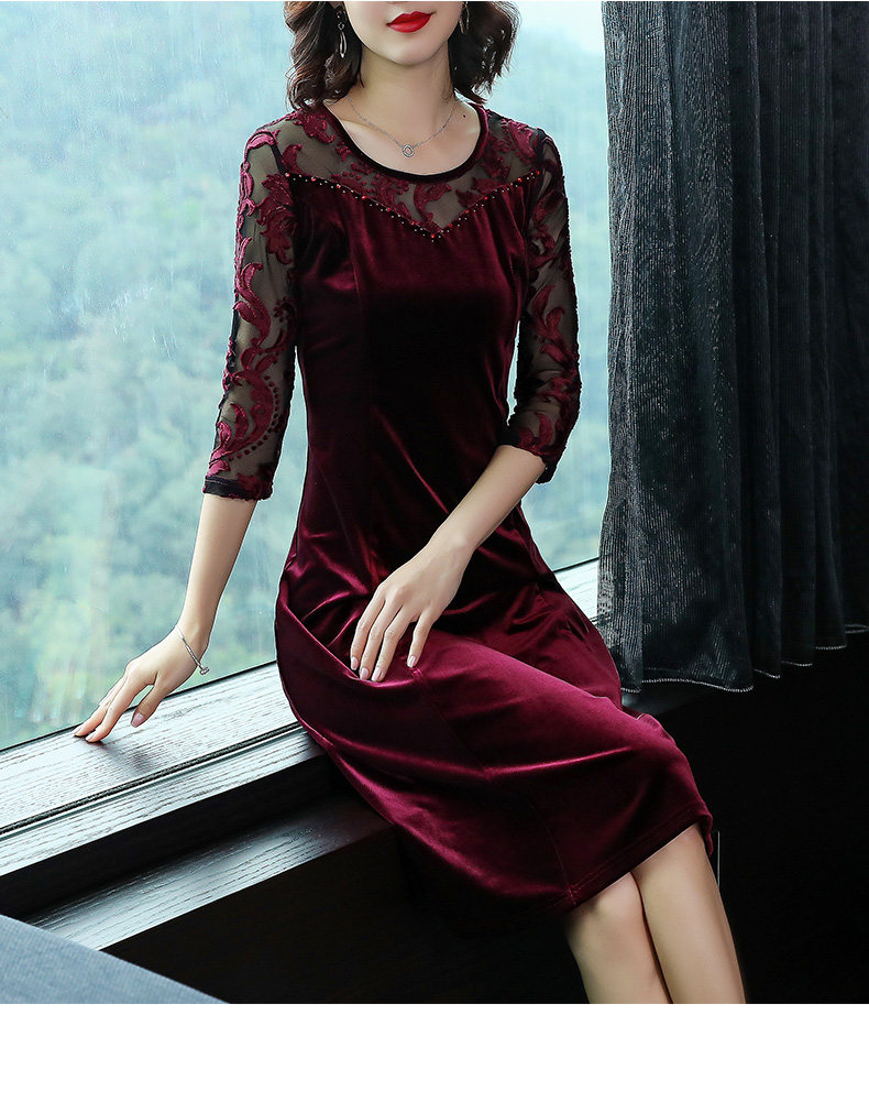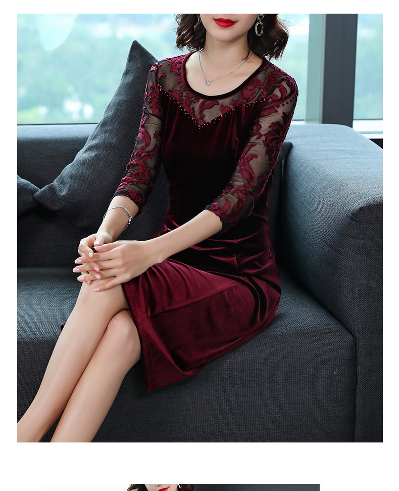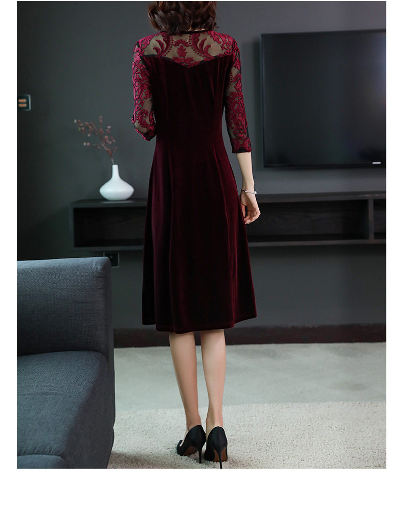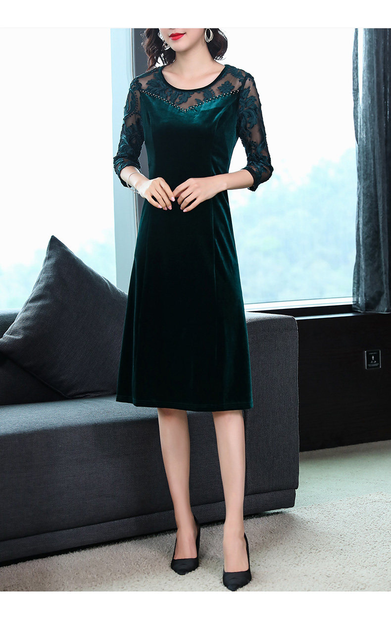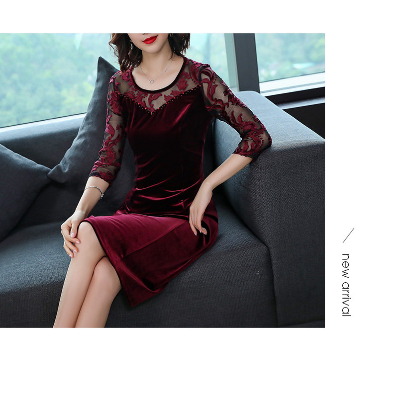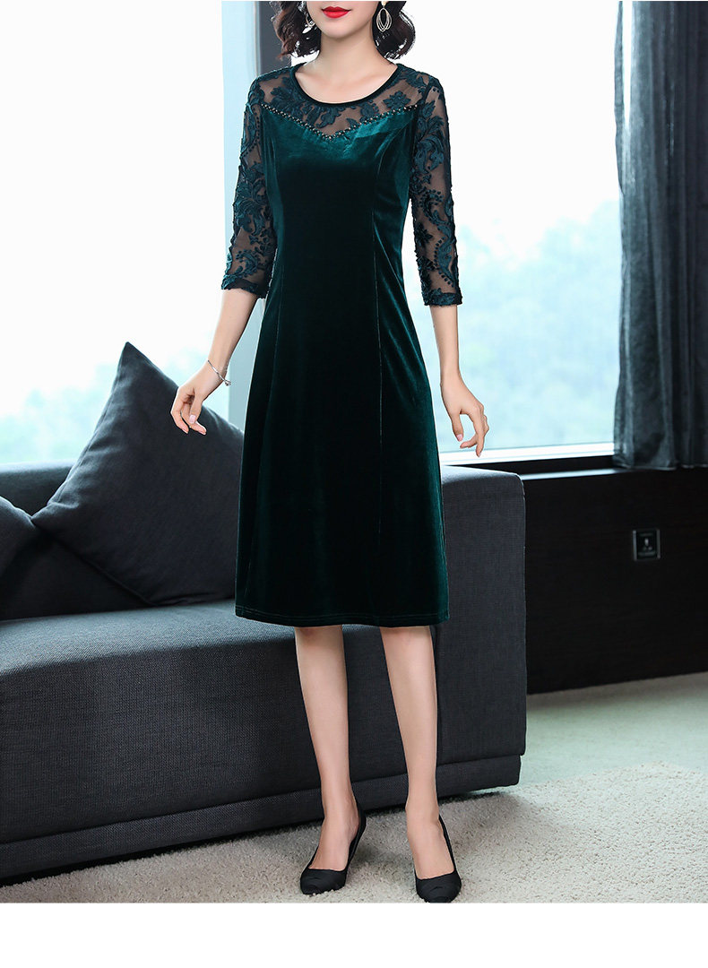 MQ-A909春秋新款气质收腰提花网纱拼接阔太太金丝绒连衣裙ZXH