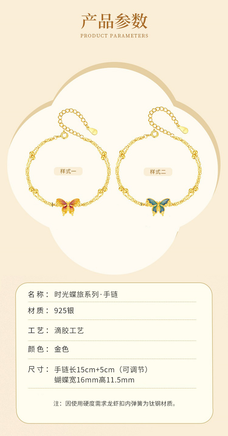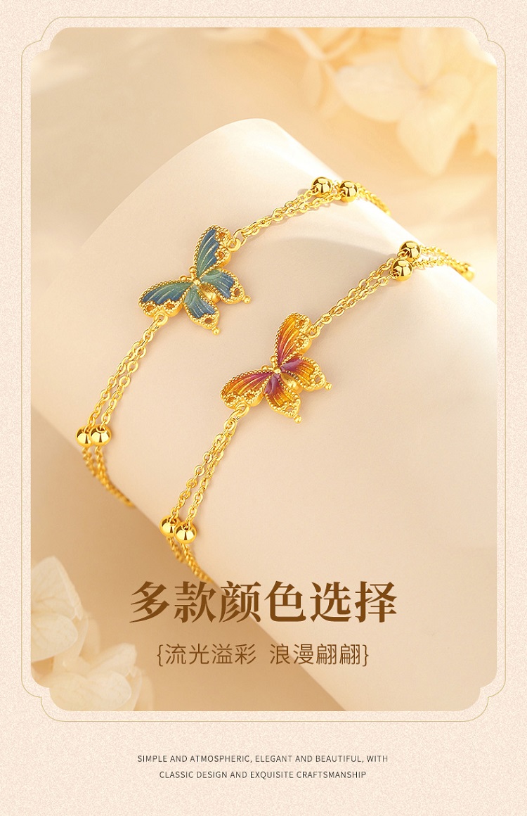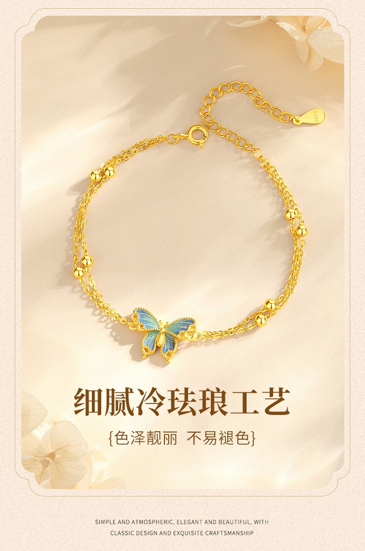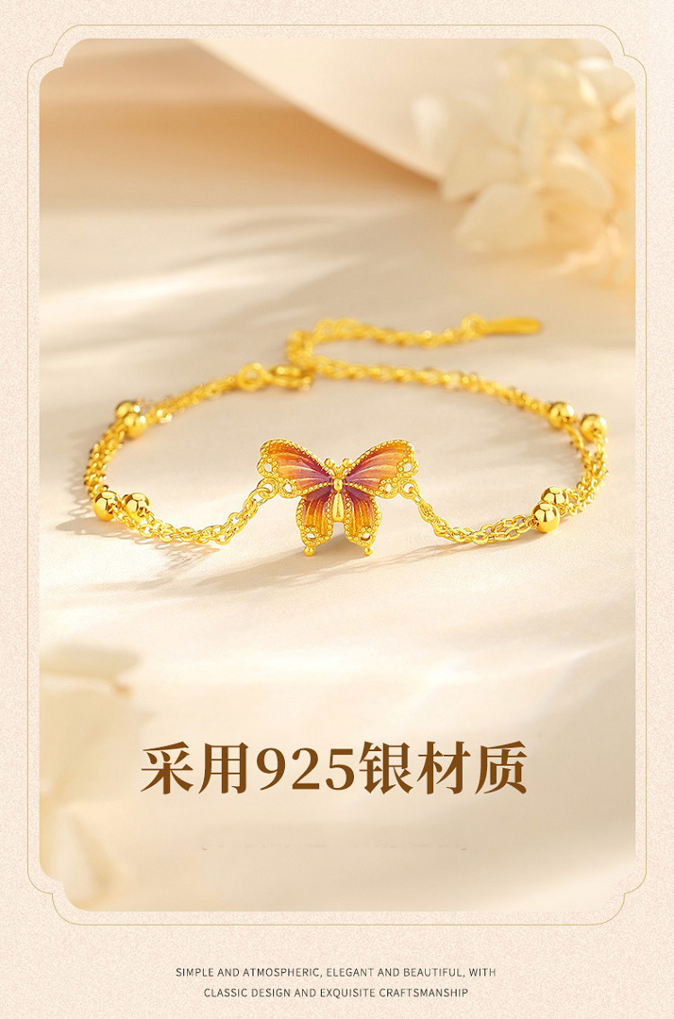 Winy925银橘蝶珐琅手链配证书送女友闺蜜节日礼物