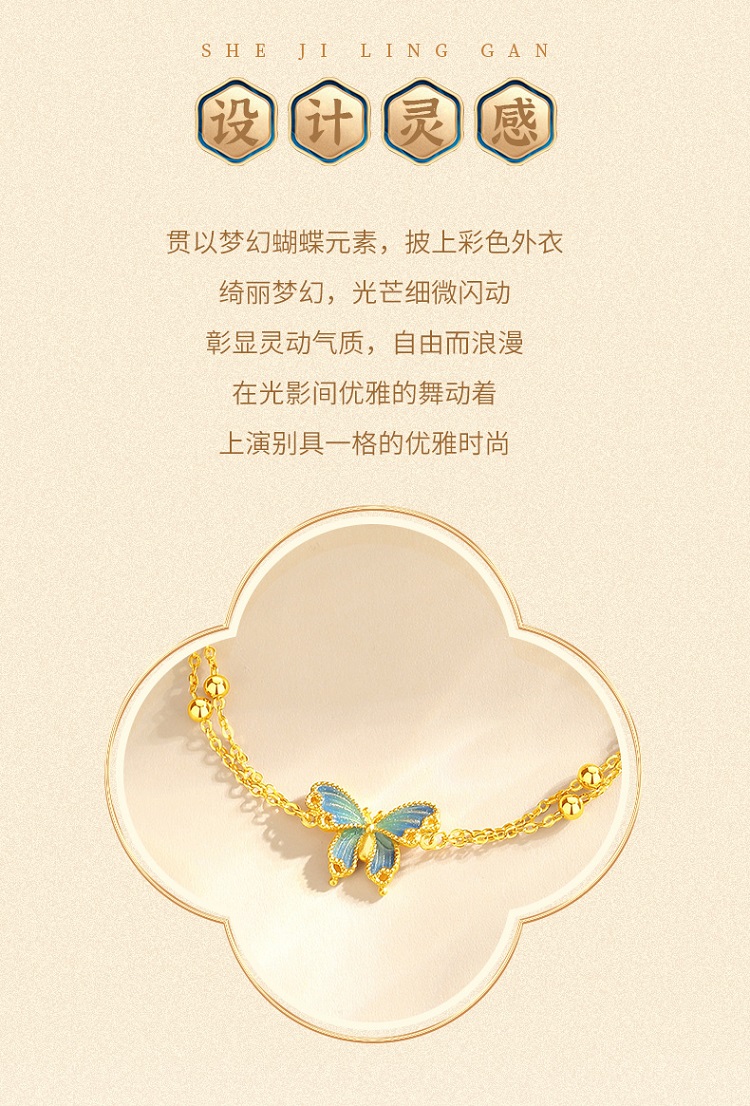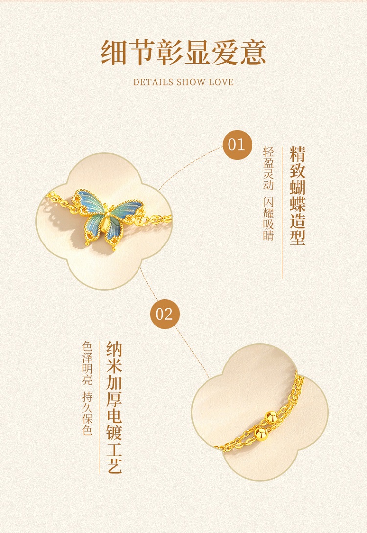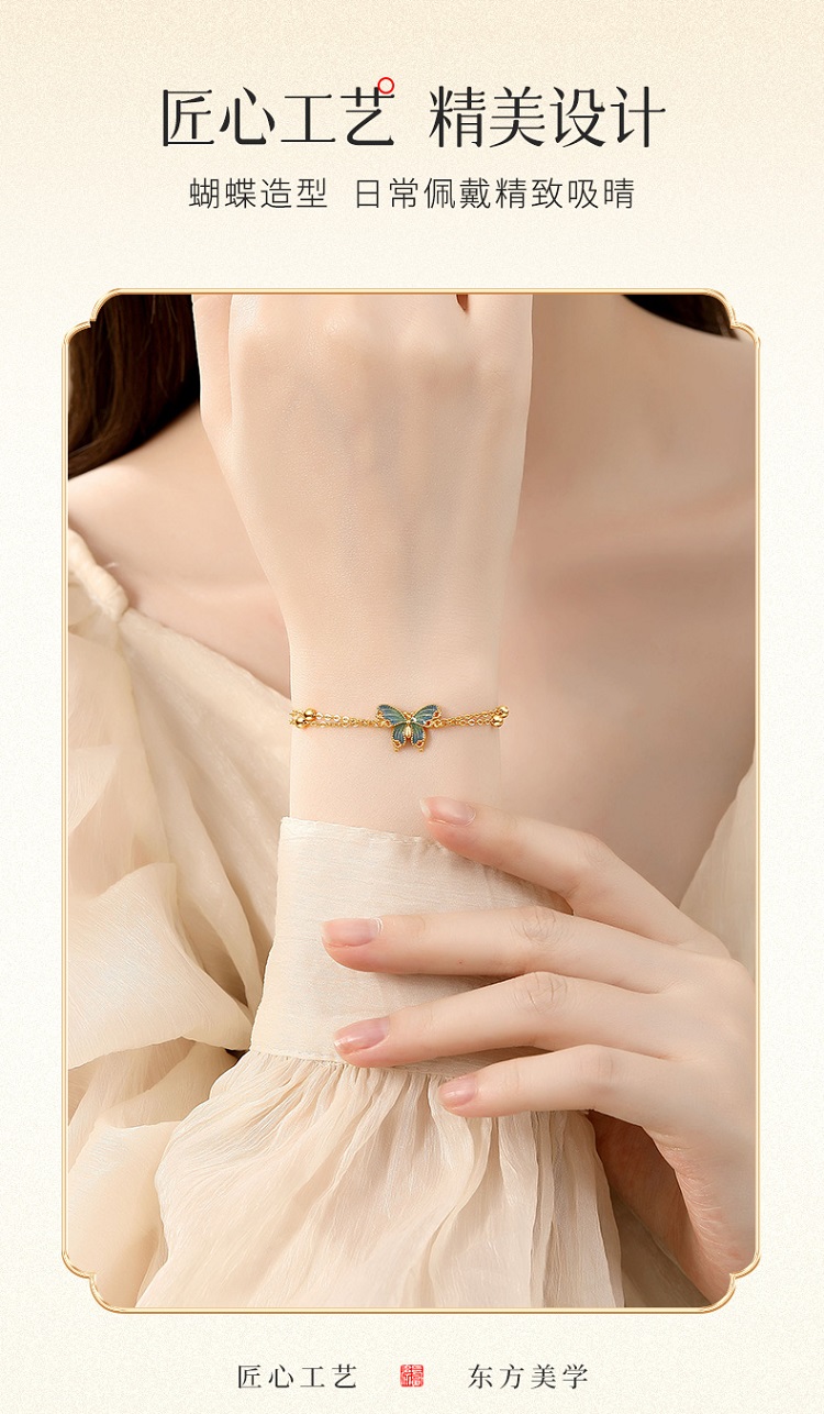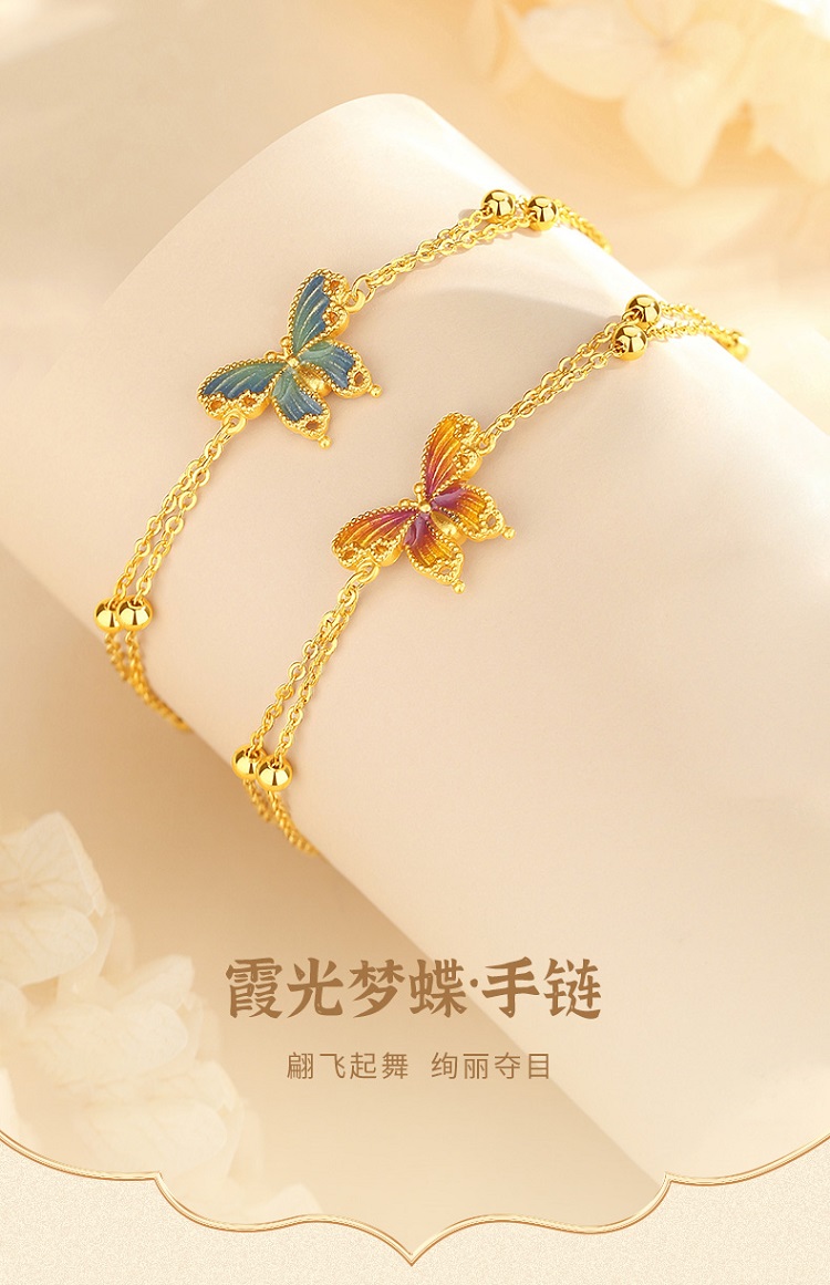 Winy925银橘蝶珐琅手链配证书送女友闺蜜节日礼物
