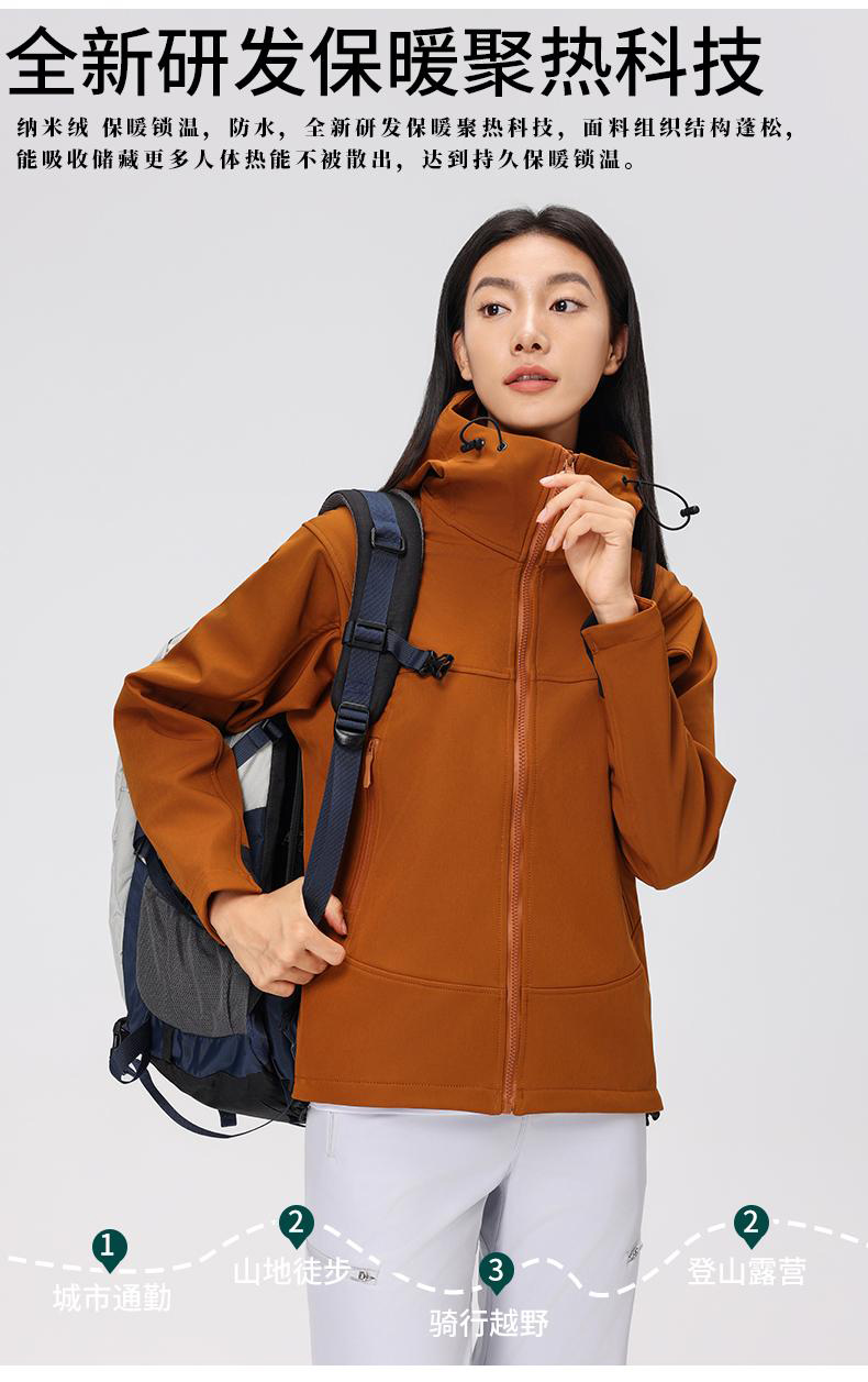 自由基地秋冬新品纳米聚热一体绒软壳冲锋衣技能拼接设计防风防水 NMJ-2017