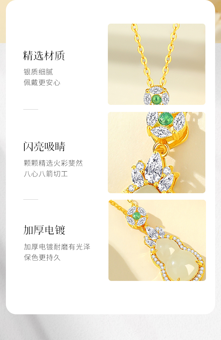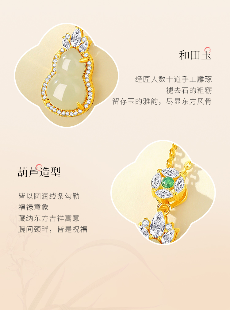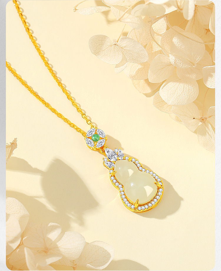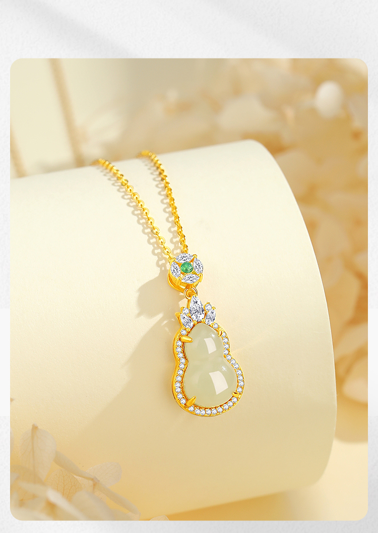 Winy s925银搭配和田玉琼华葫芦项链配证书送女朋友/老婆/闺蜜生日节日礼物