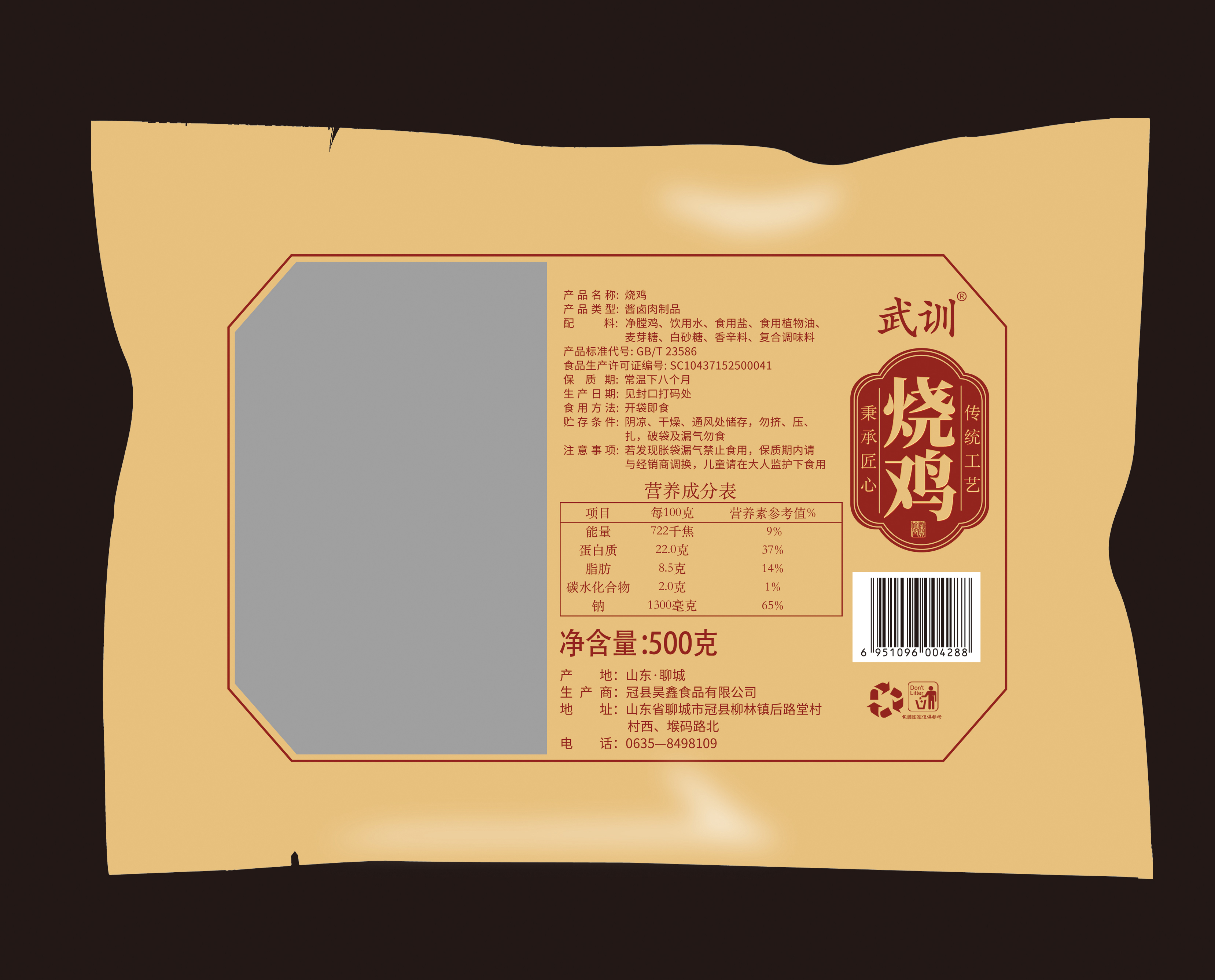【烧鸡配料】净膛鸡、饮用水、食用盐、食用植物油、麦芽糖、白砂糖、香辛料、复合调味料