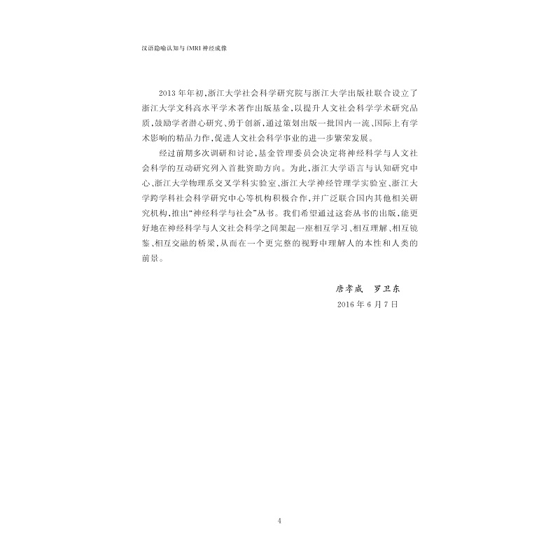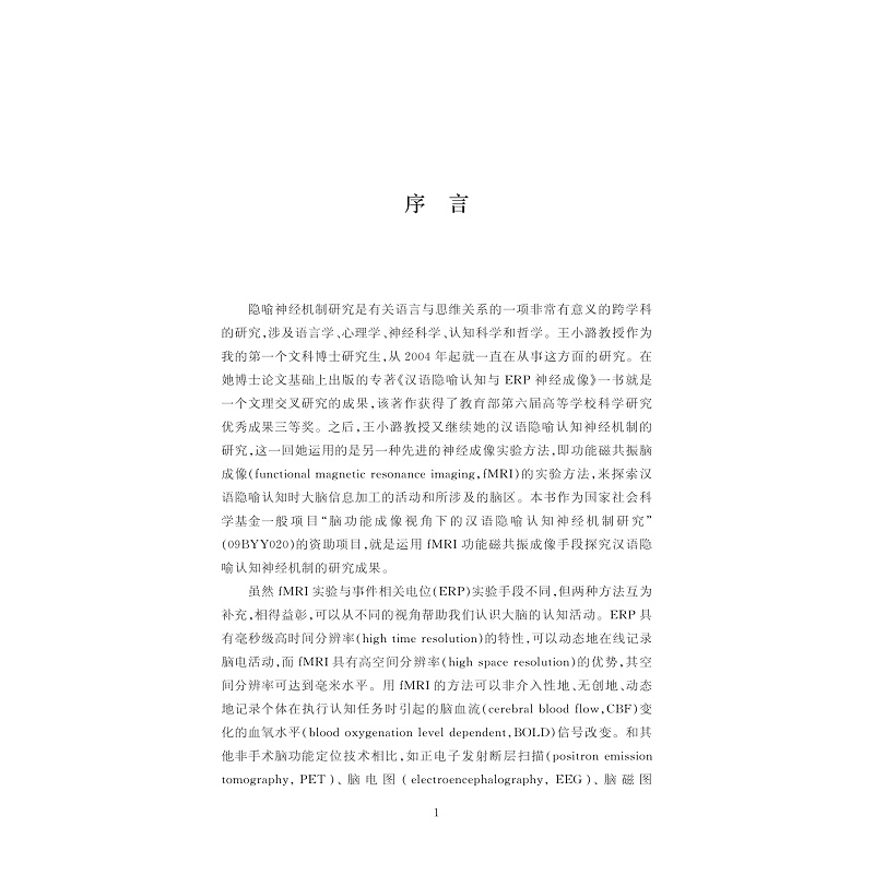 汉语隐喻认知与fMRI神经成像/神经科学与社会丛书/王小潞/责编:陈佩钰/总主编:唐孝威/罗卫东/浙江大学出版社