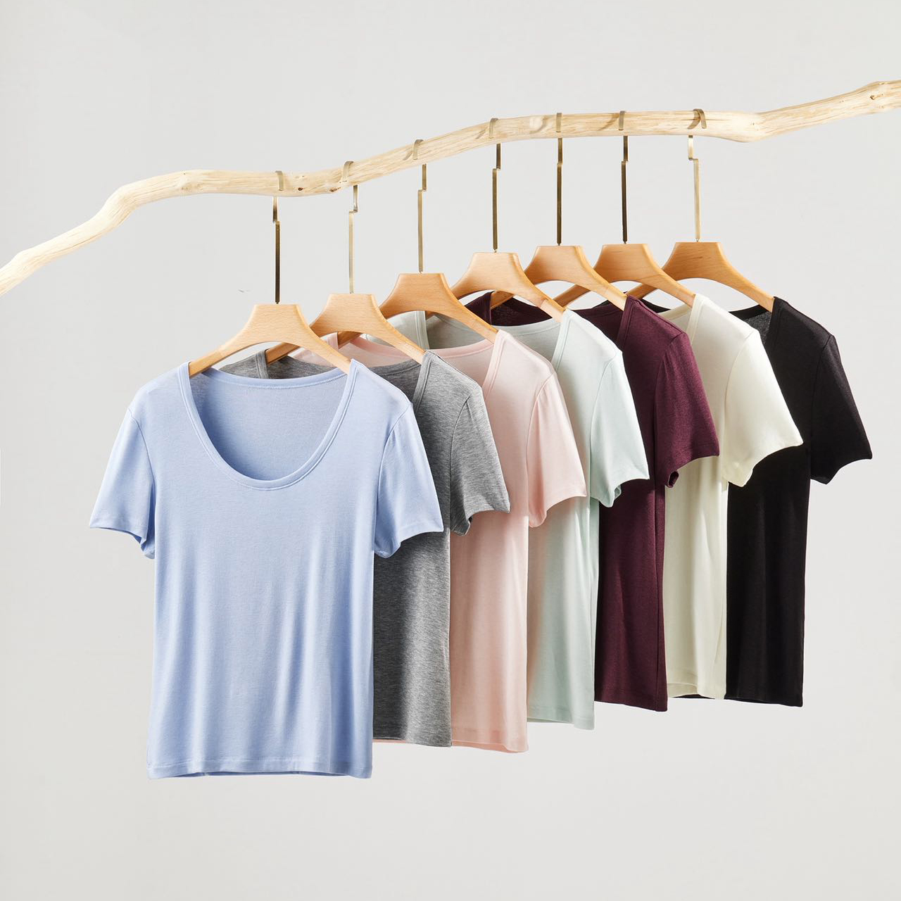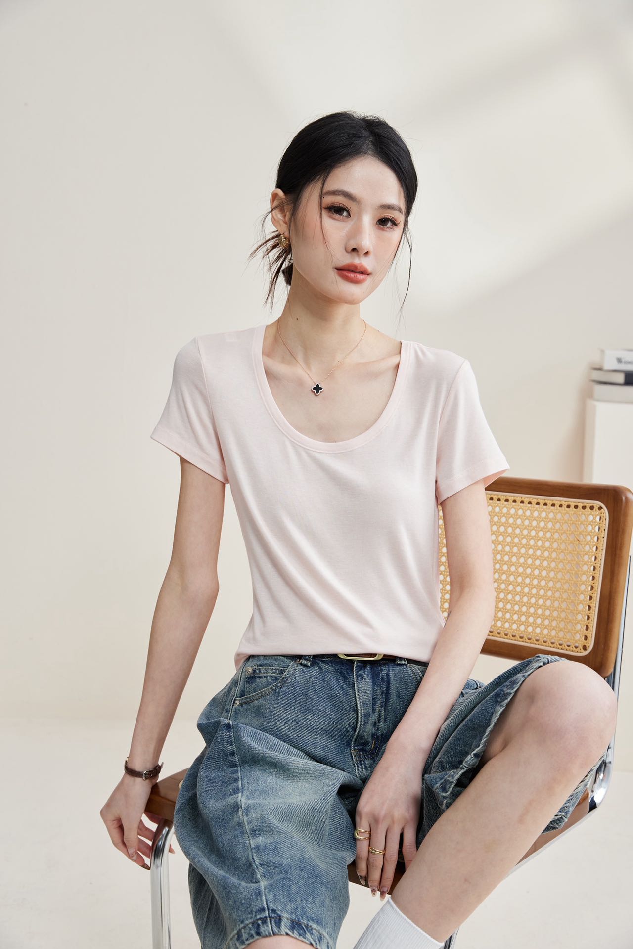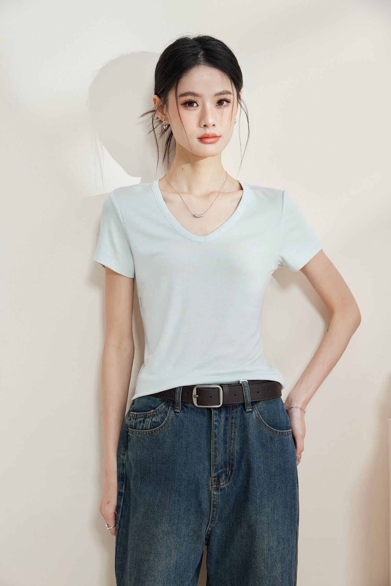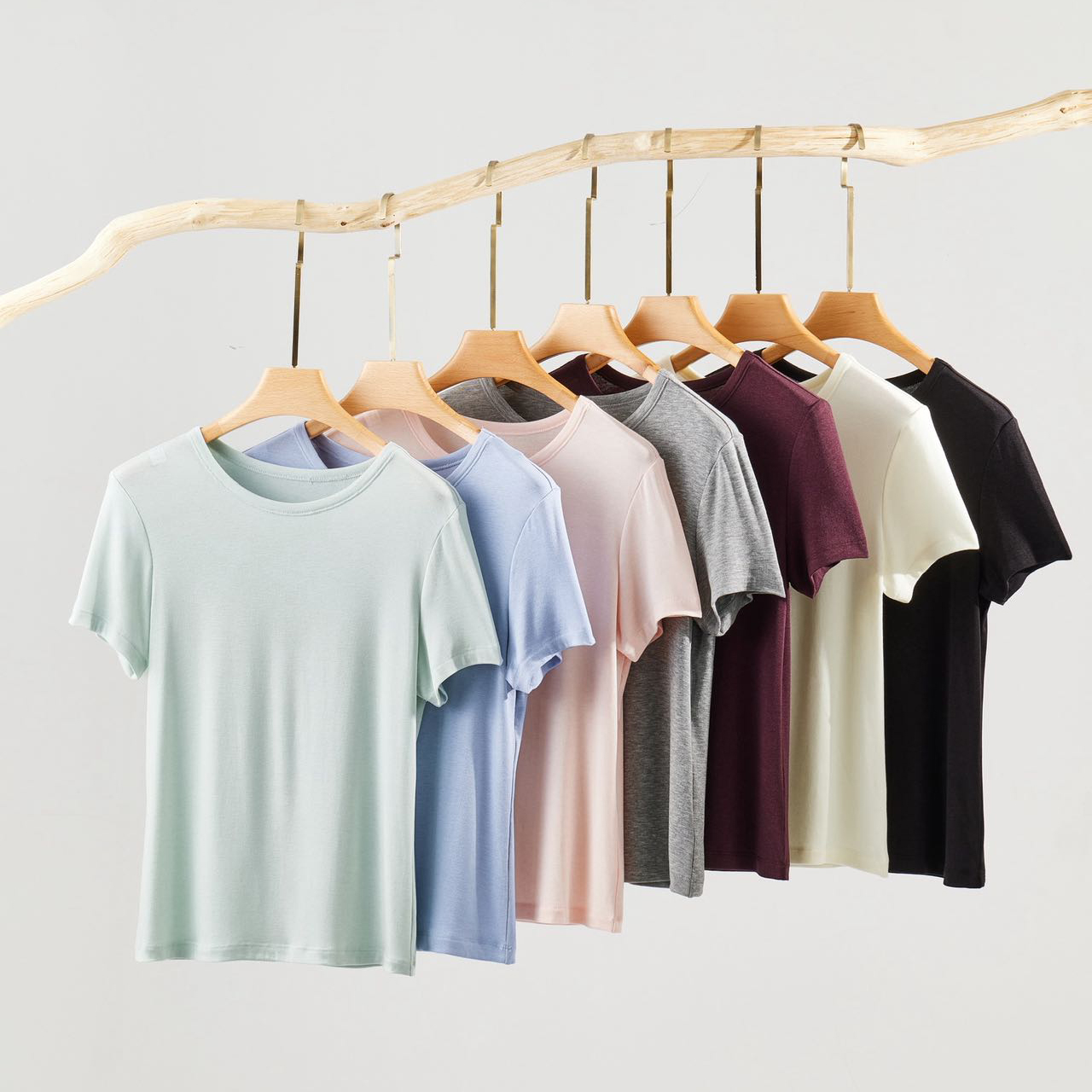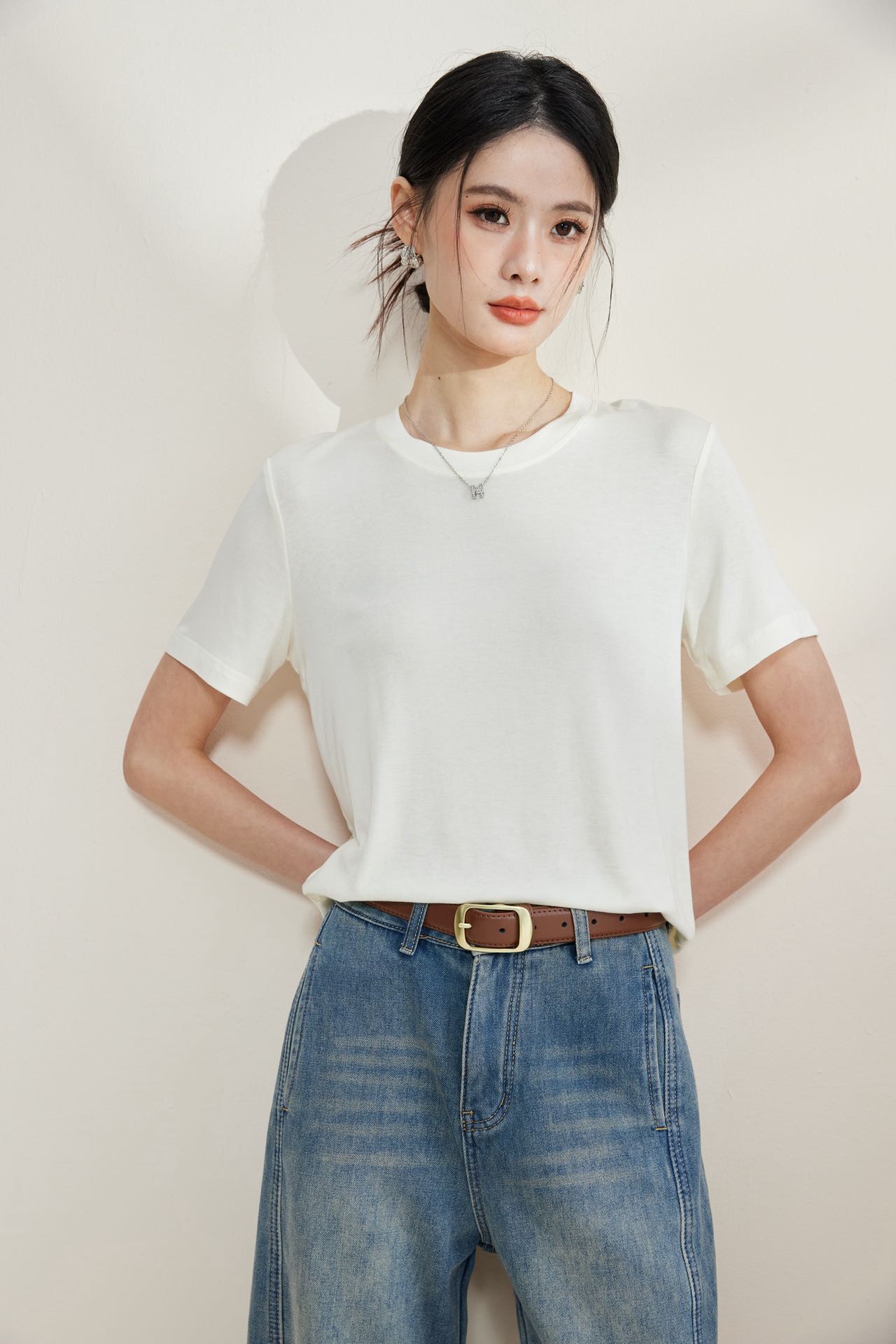 夏季新款羊毛醋酸天丝短袖 柔软舒适百搭 修身显瘦 圆领/大圆领/V领 7色可选