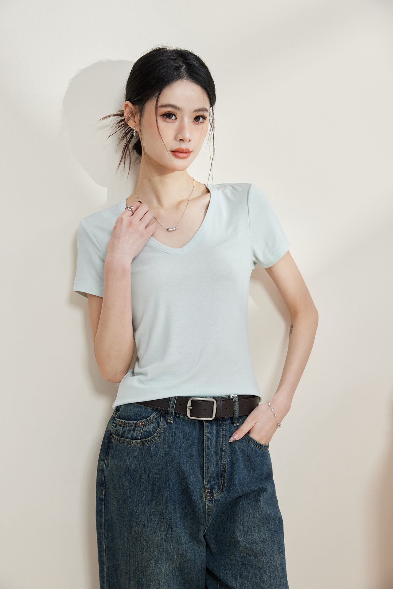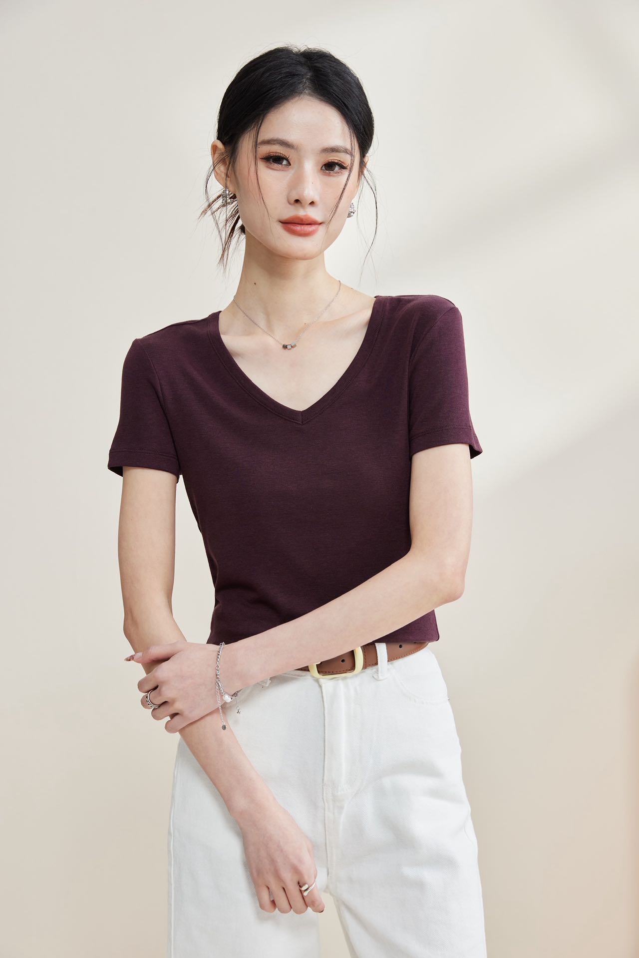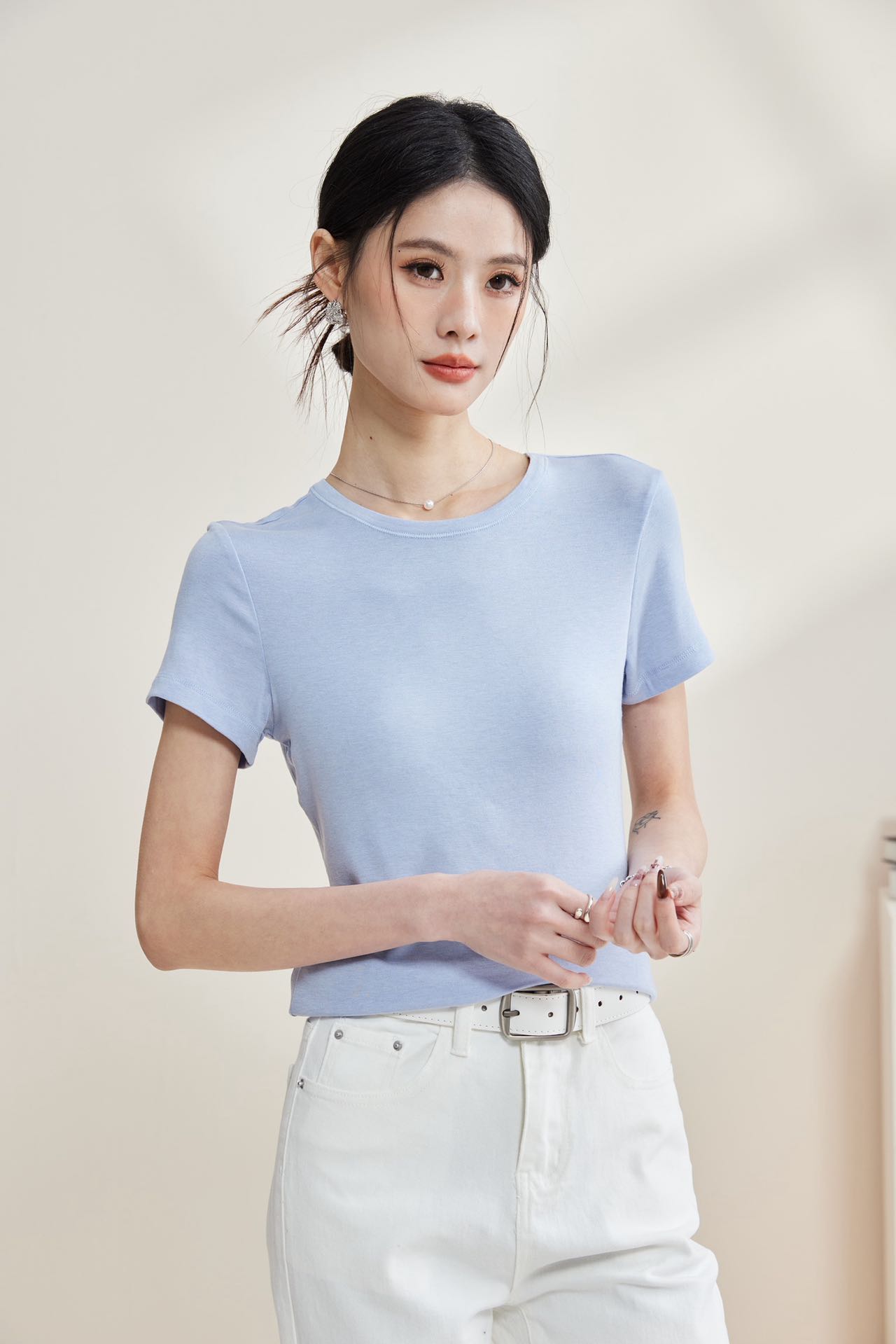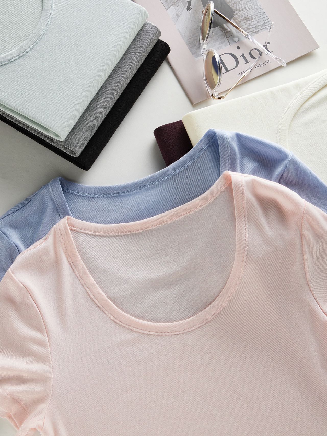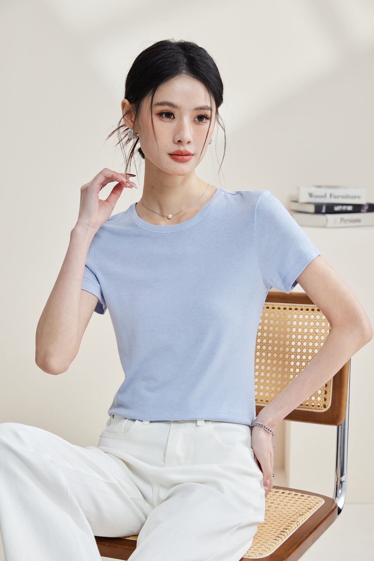夏季新款羊毛醋酸天丝短袖 柔软舒适百搭 修身显瘦 圆领/大圆领/V领 7色可选