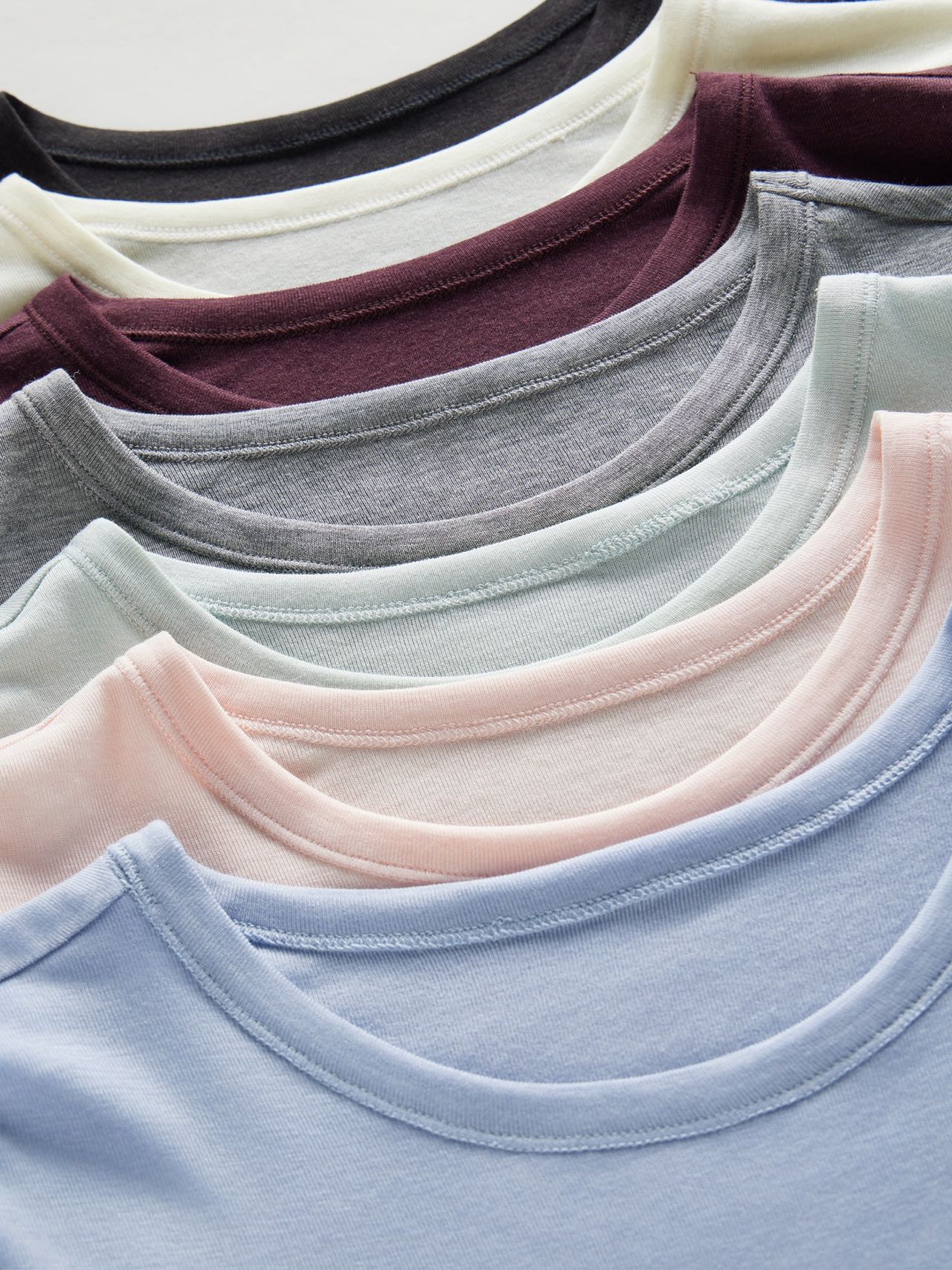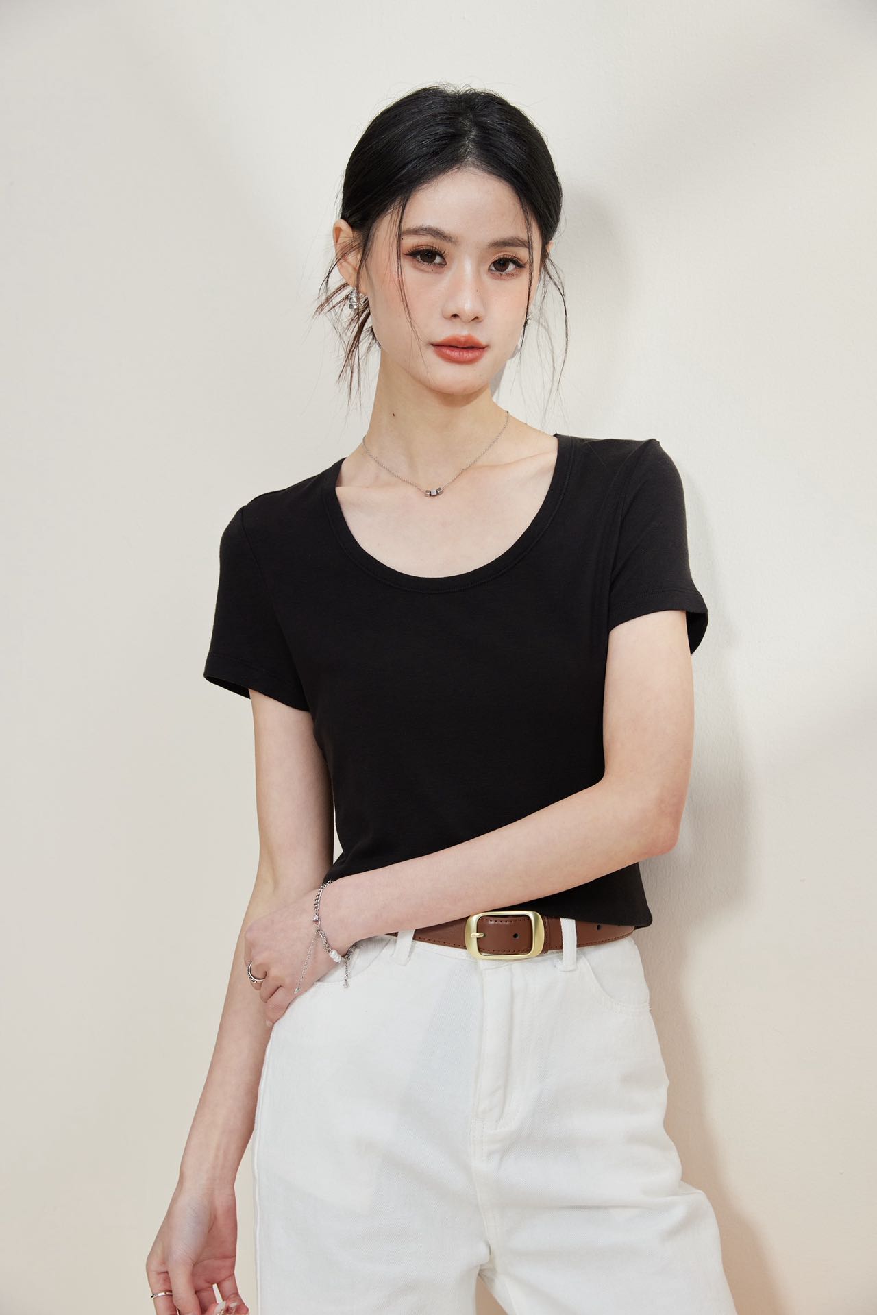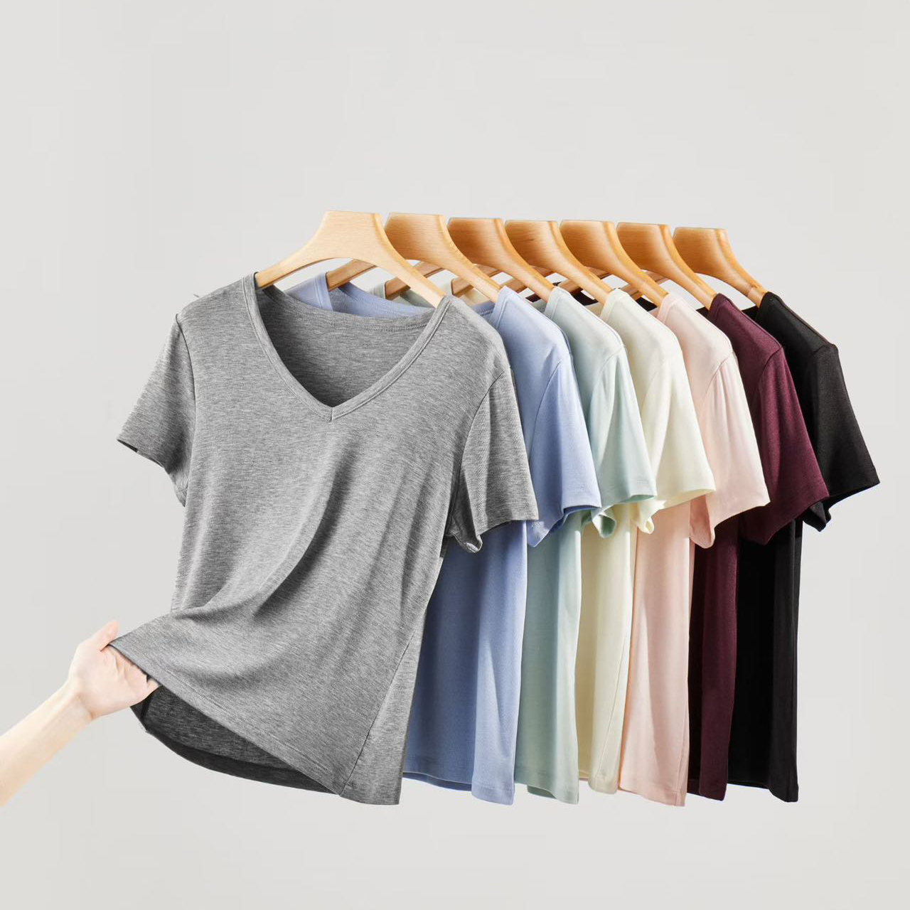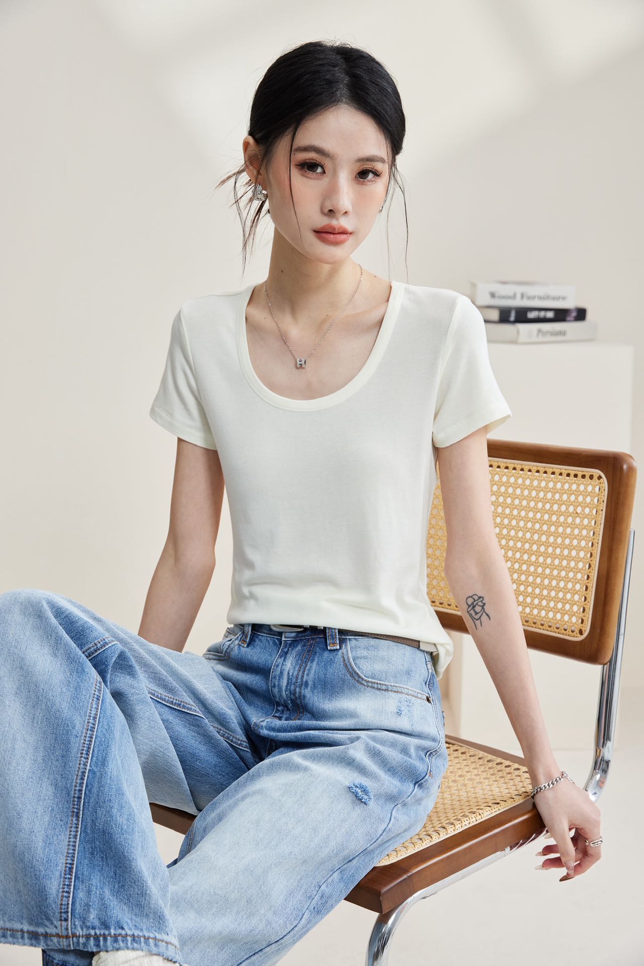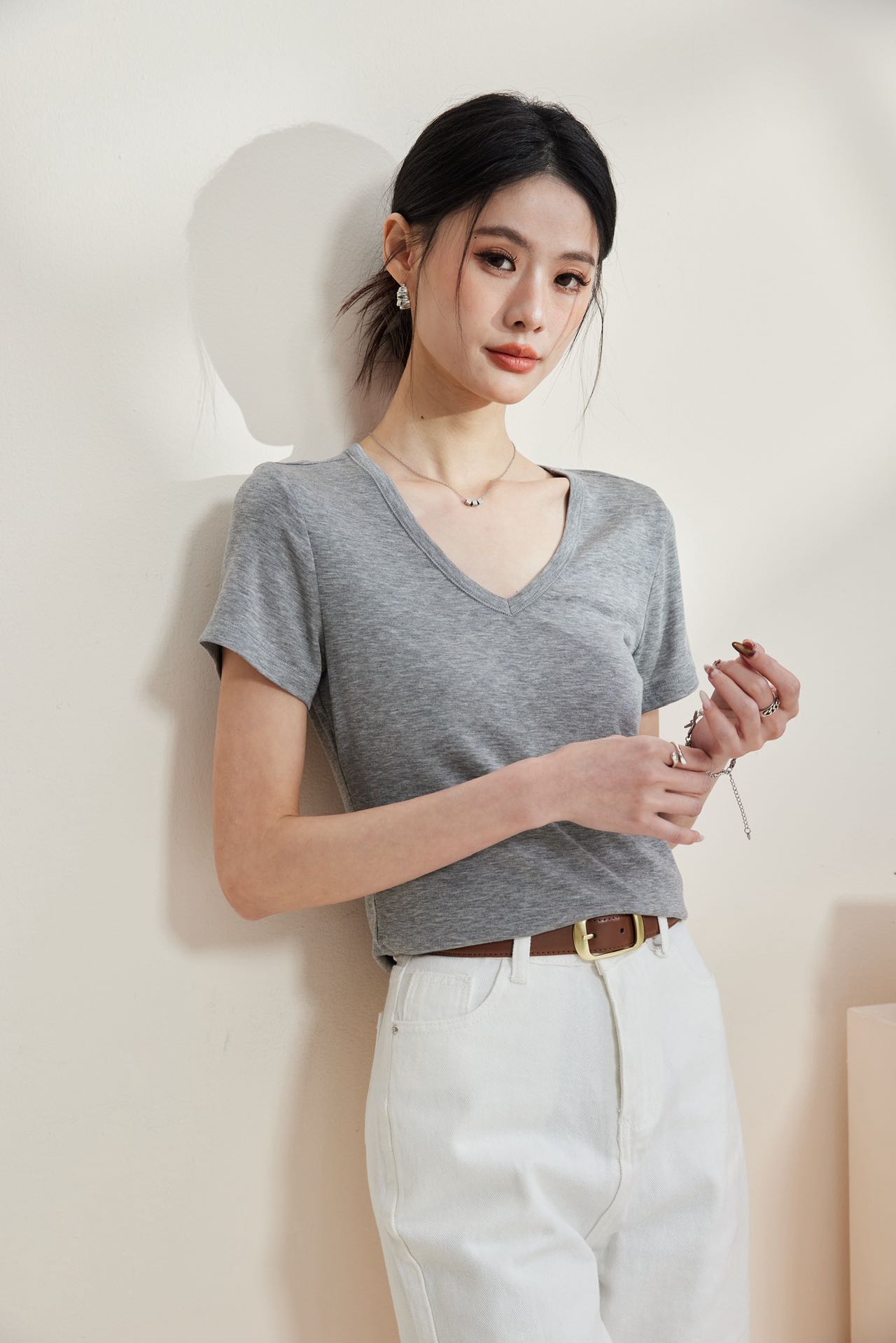 夏季新款羊毛醋酸天丝短袖 柔软舒适百搭 修身显瘦 圆领/大圆领/V领 7色可选