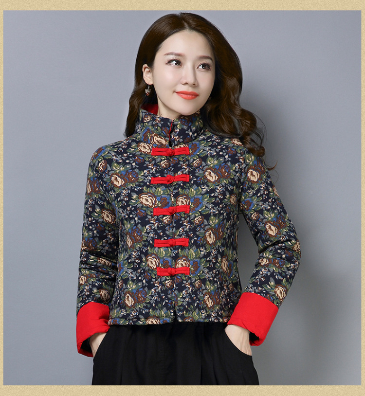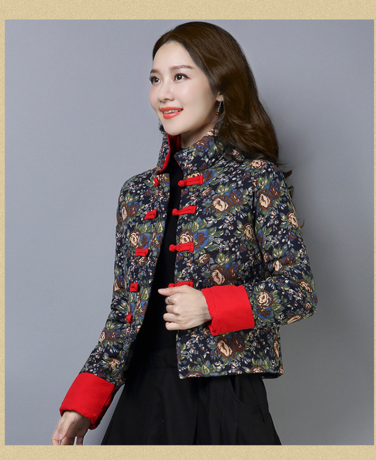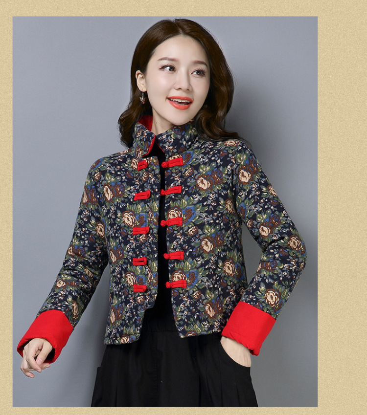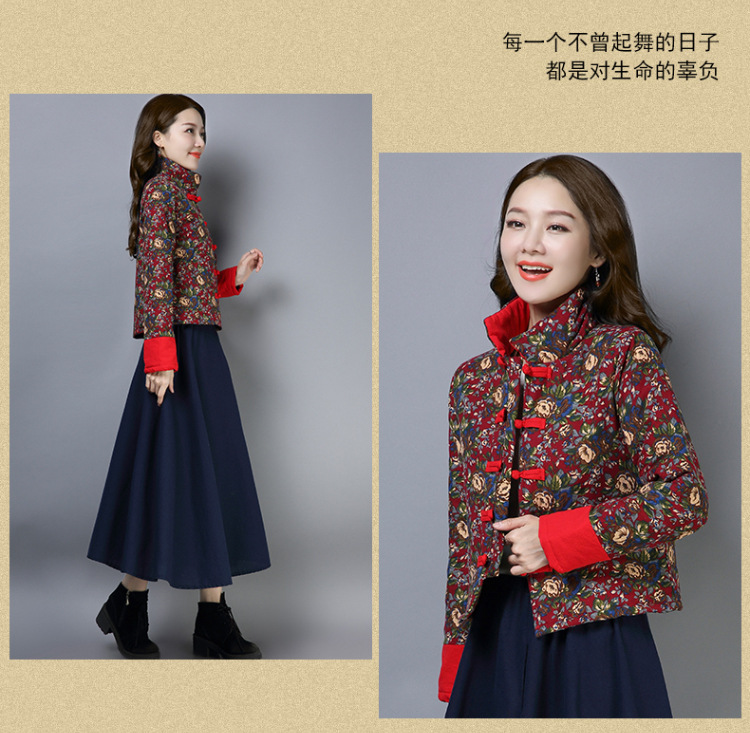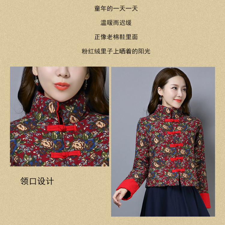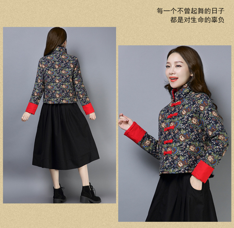 F 0105 秋冬新款民族风复古文艺盘扣上衣 加厚碎花棉衣