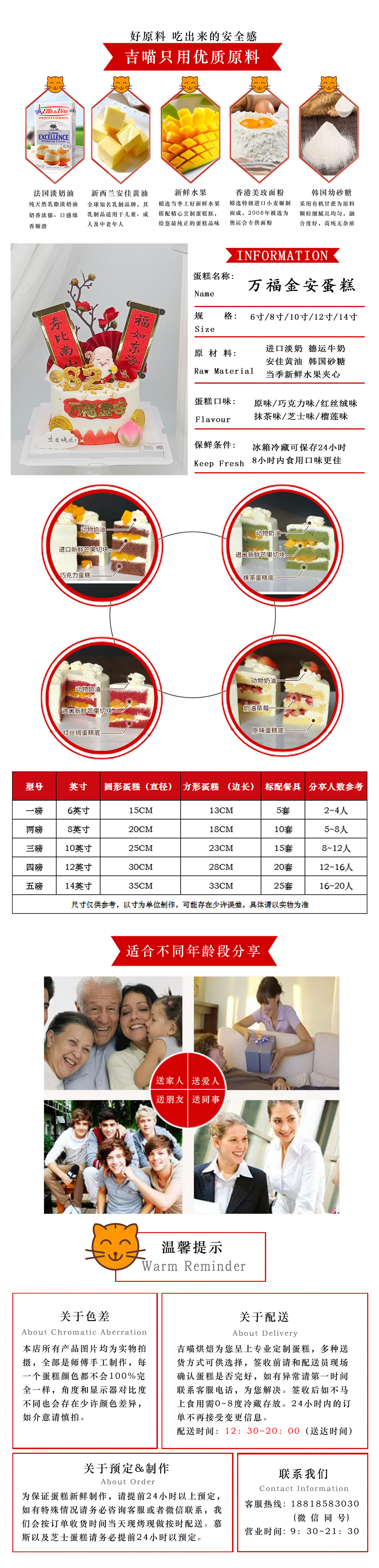 万福金安祝寿蛋糕(爷爷公仔可换奶奶公仔))