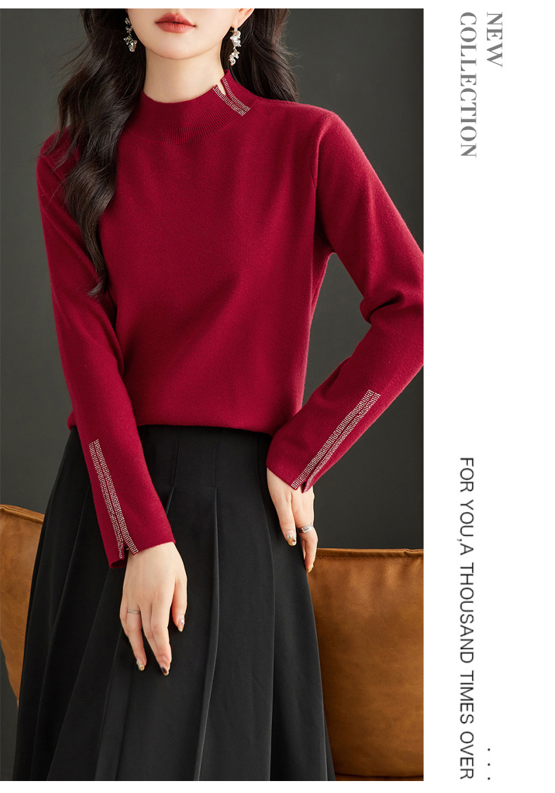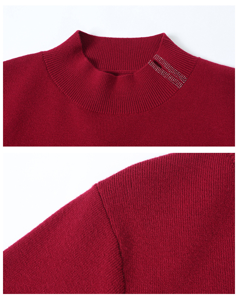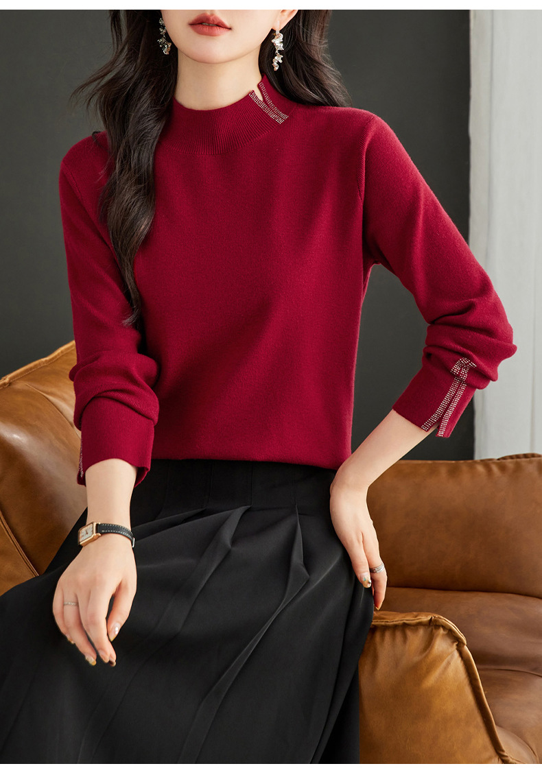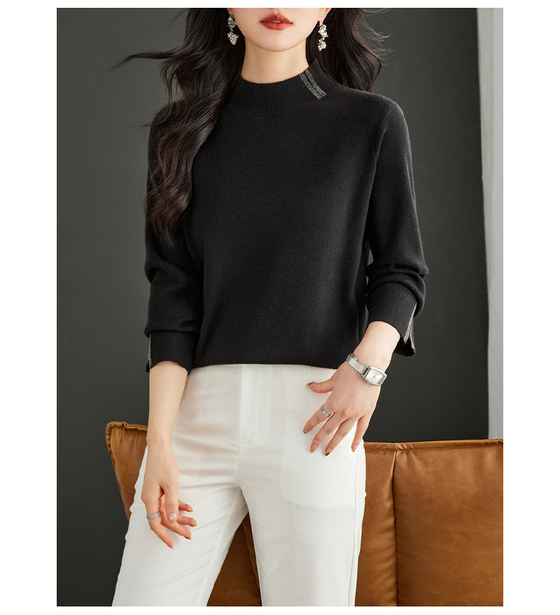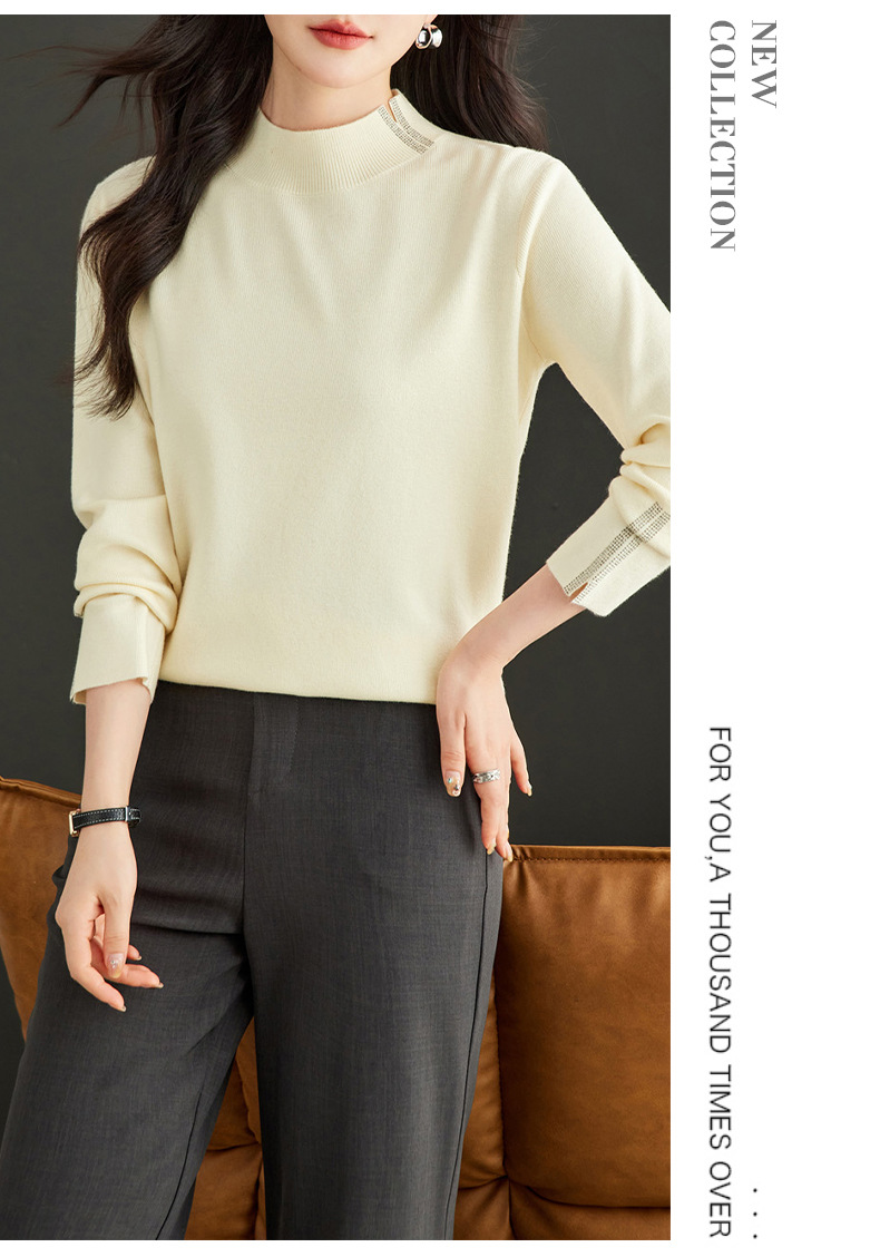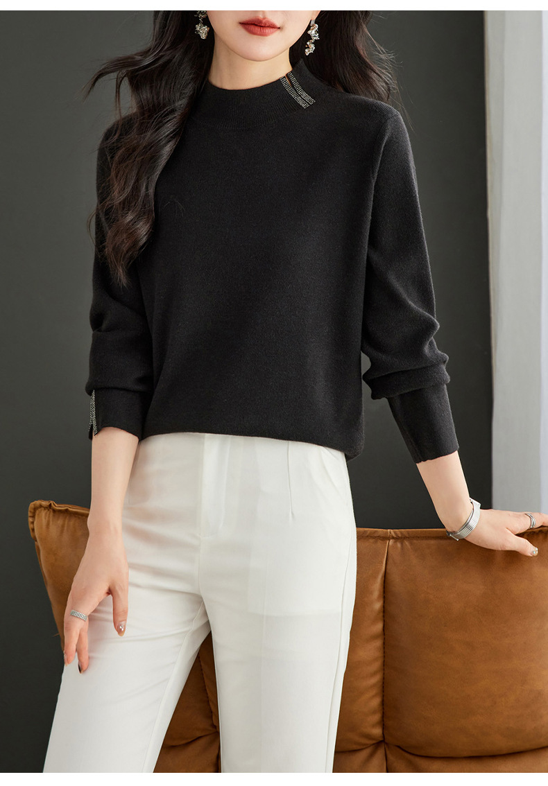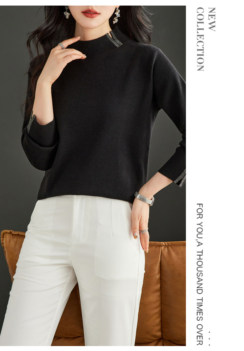 CC-16-9157时尚气质半高领针织女2024秋冬新款镶钻短款薄款显瘦毛衣打底衫