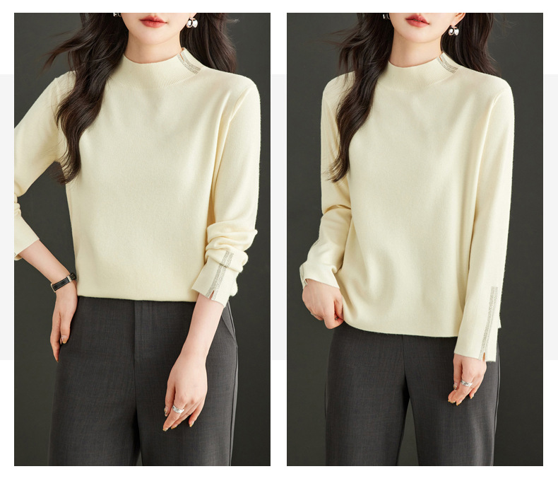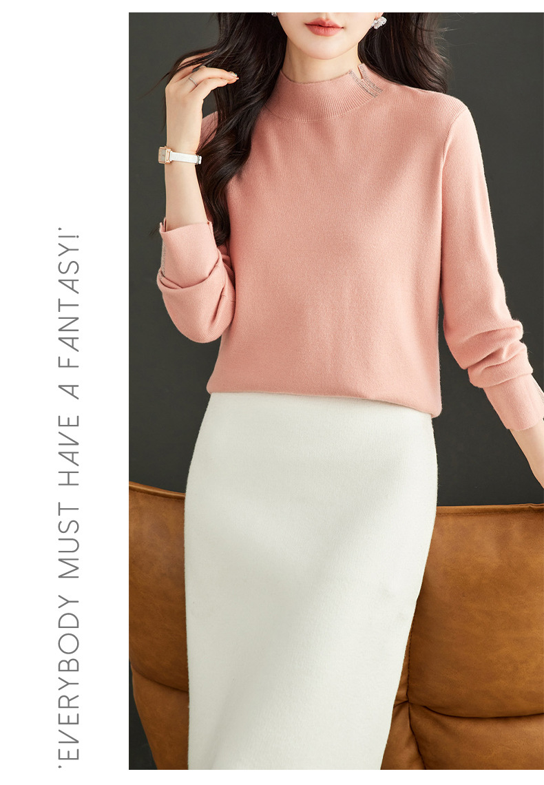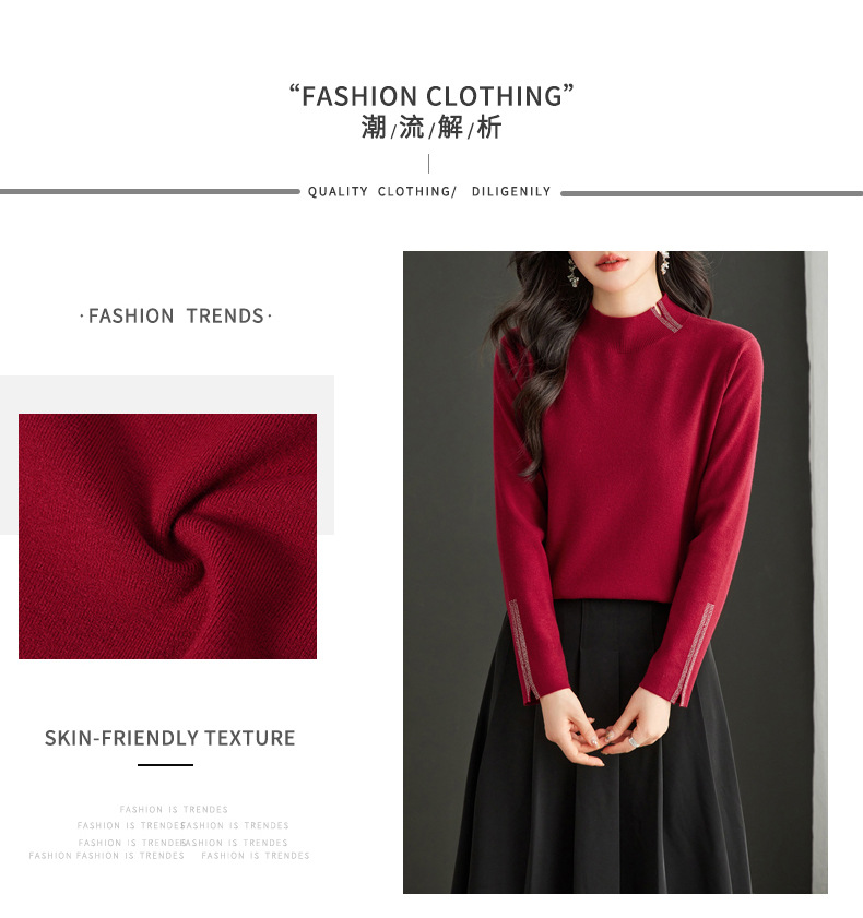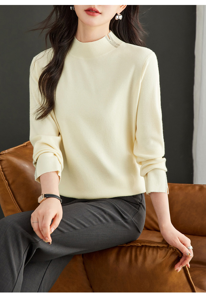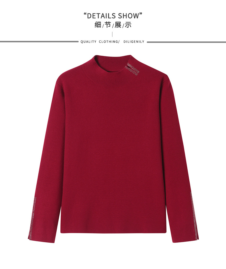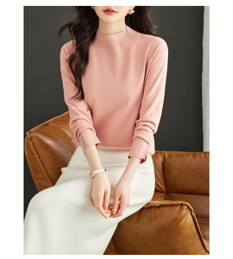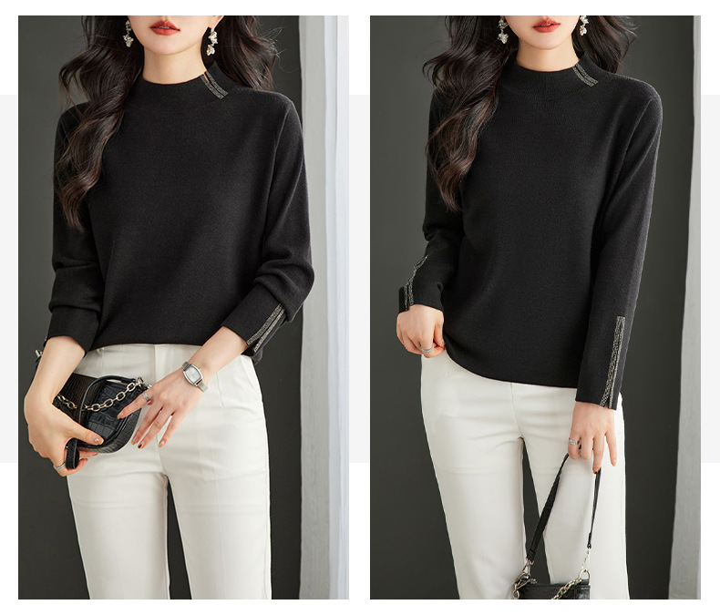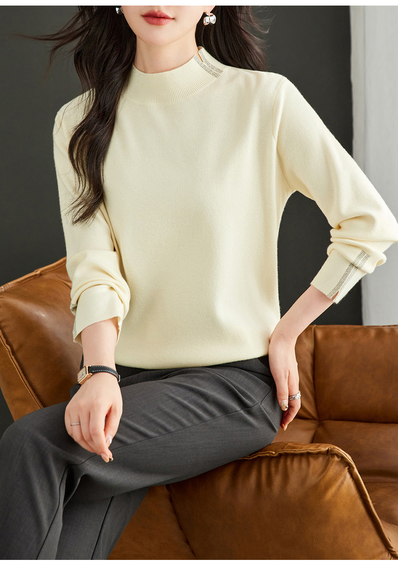CC-16-9157时尚气质半高领针织女2024秋冬新款镶钻短款薄款显瘦毛衣打底衫