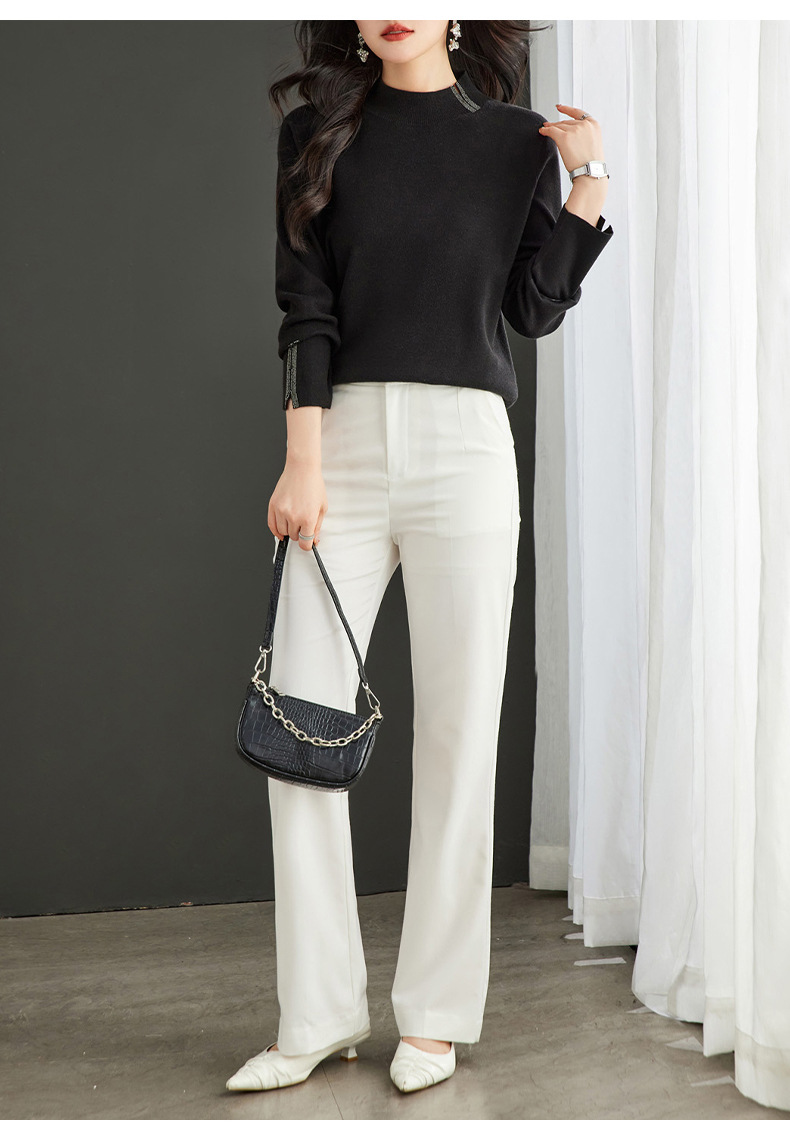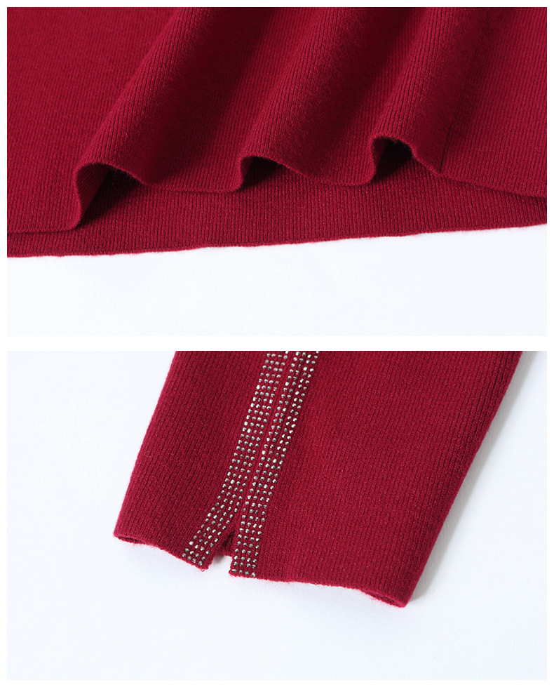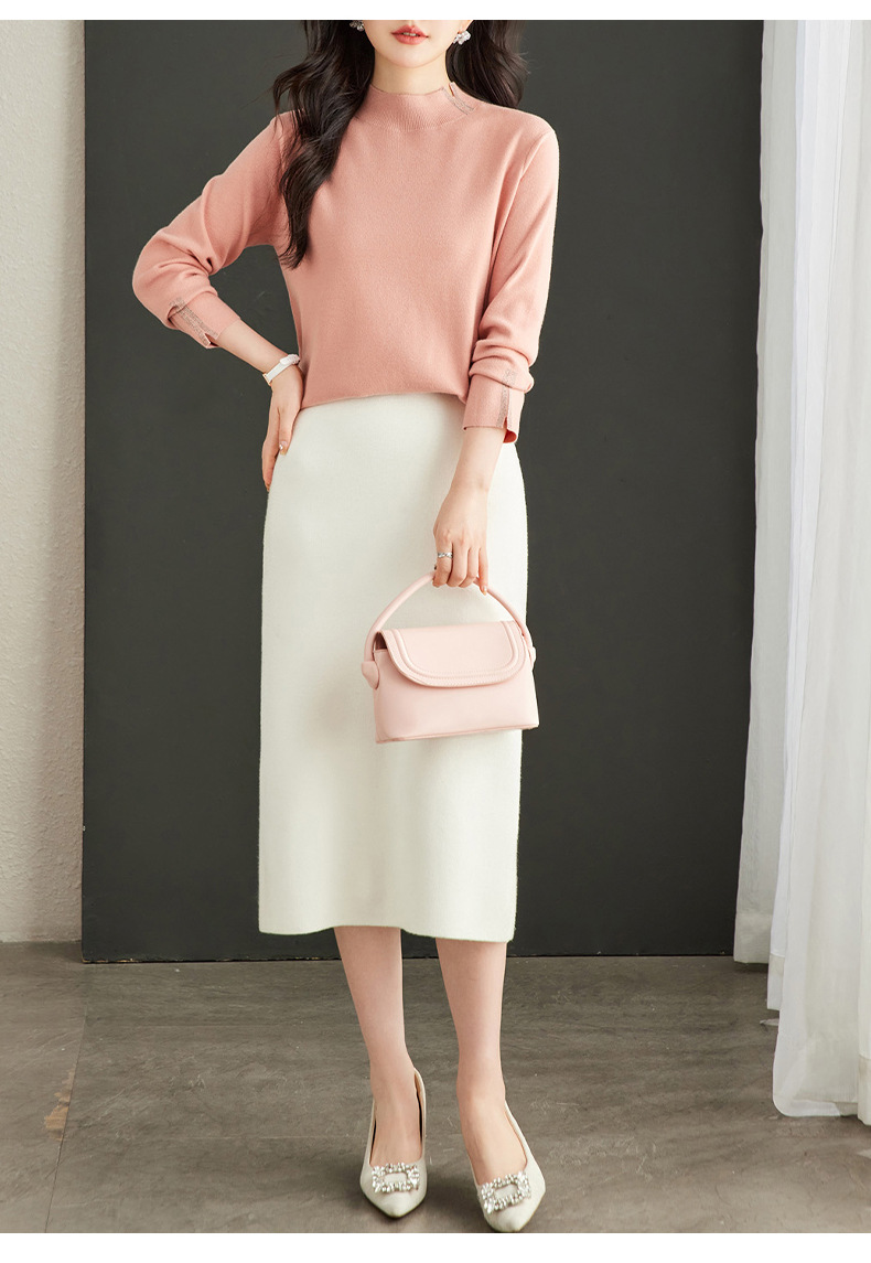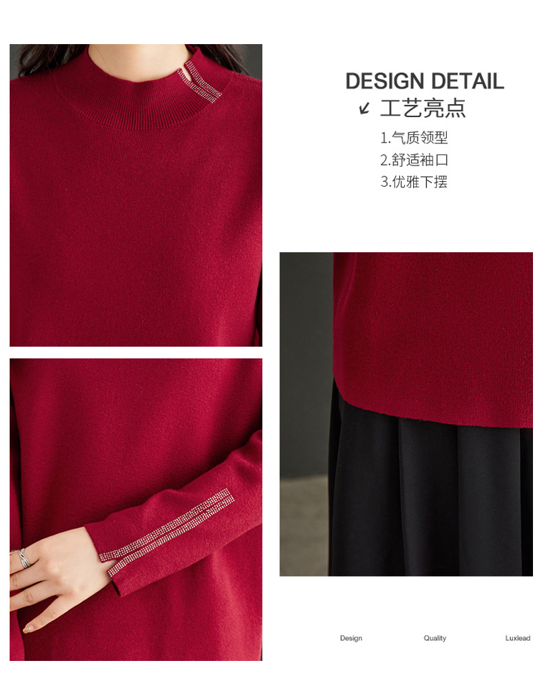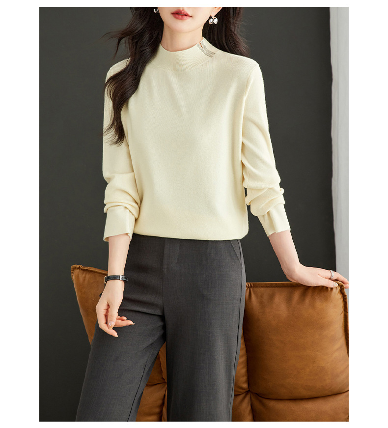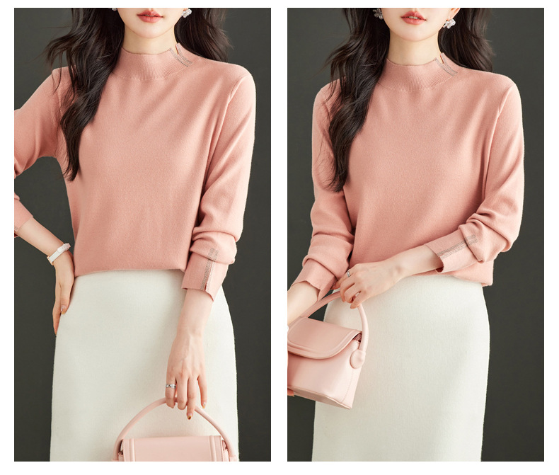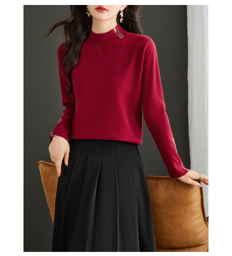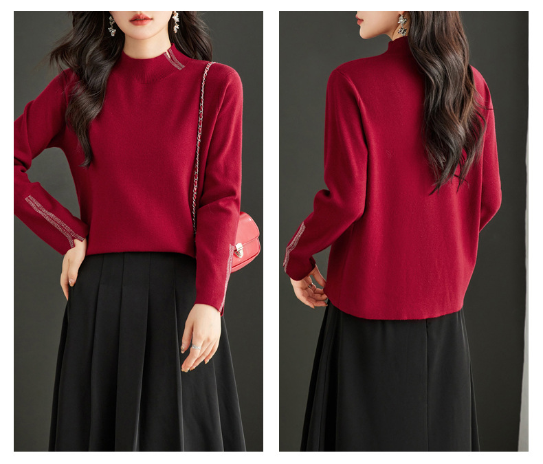 CC-16-9157时尚气质半高领针织女2024秋冬新款镶钻短款薄款显瘦毛衣打底衫