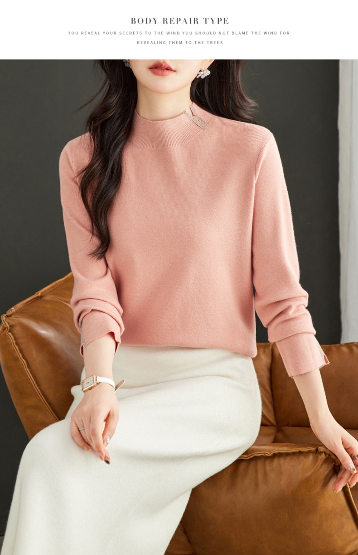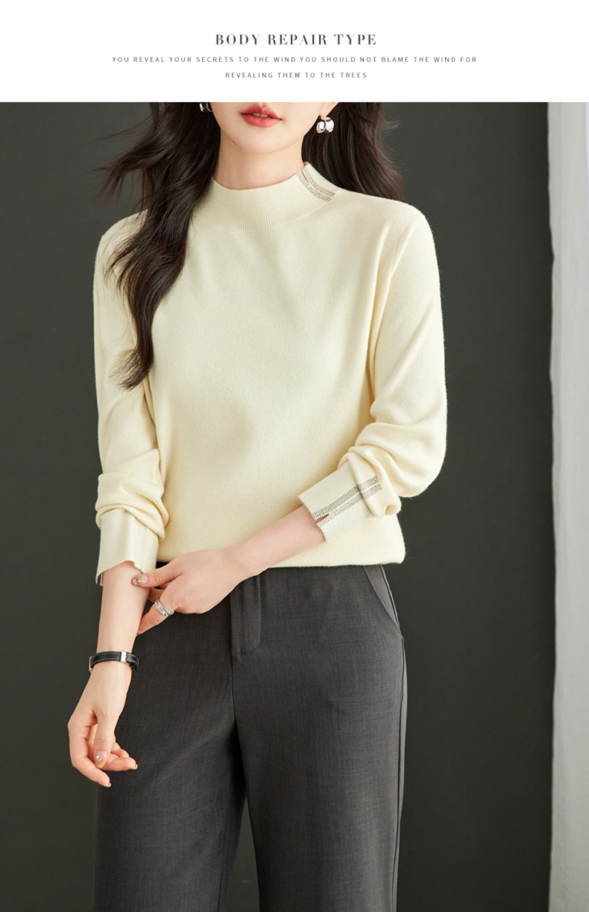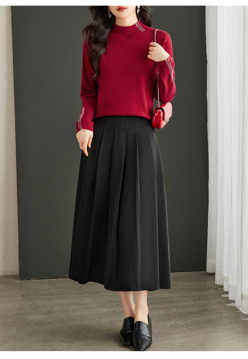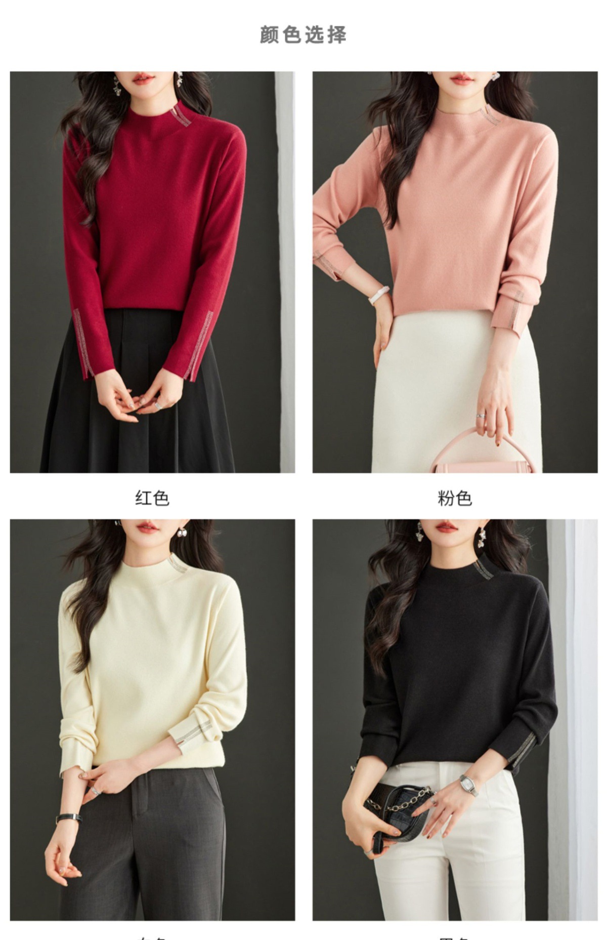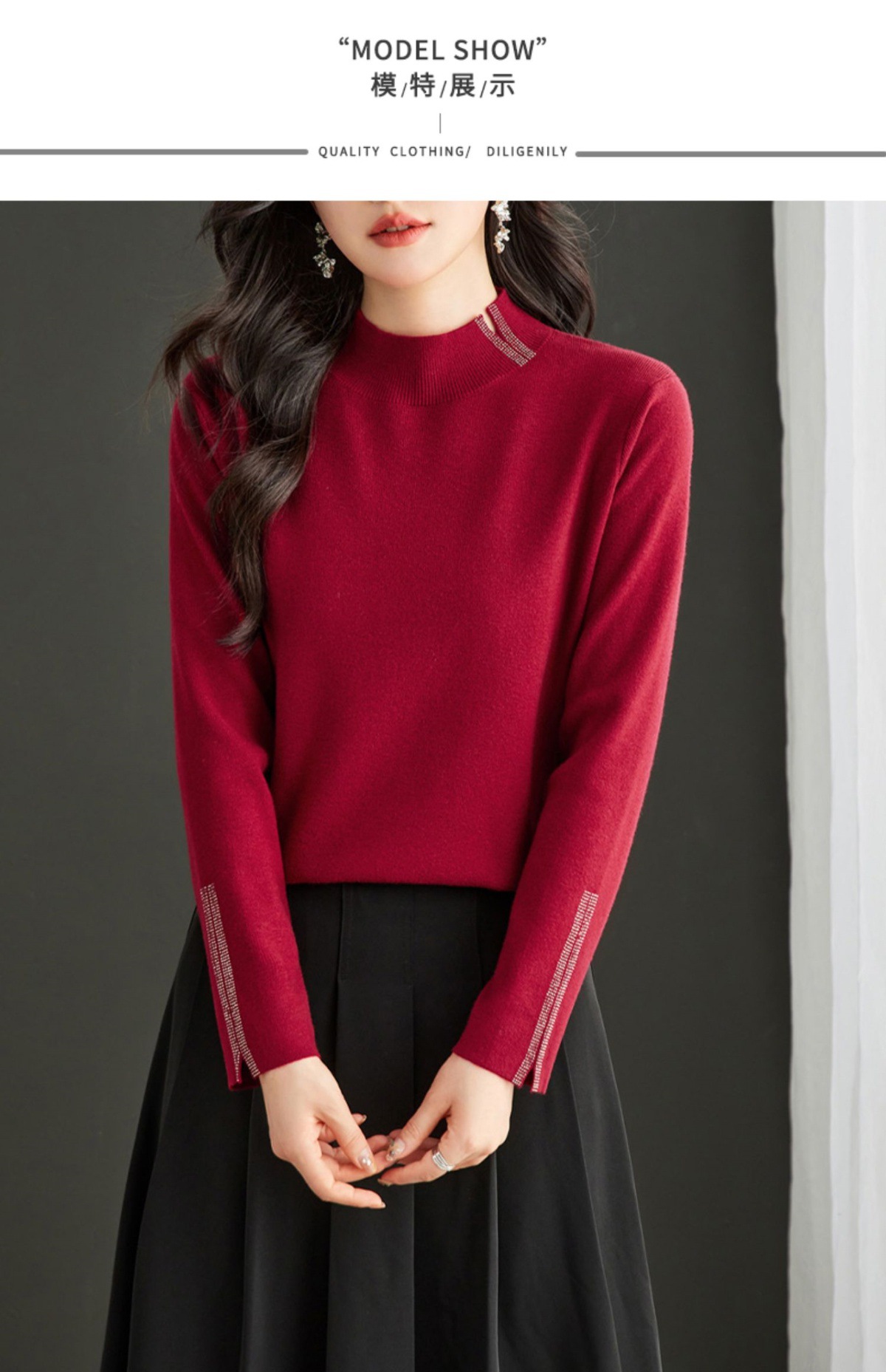 CC-16-9157时尚气质半高领针织女2024秋冬新款镶钻短款薄款显瘦毛衣打底衫