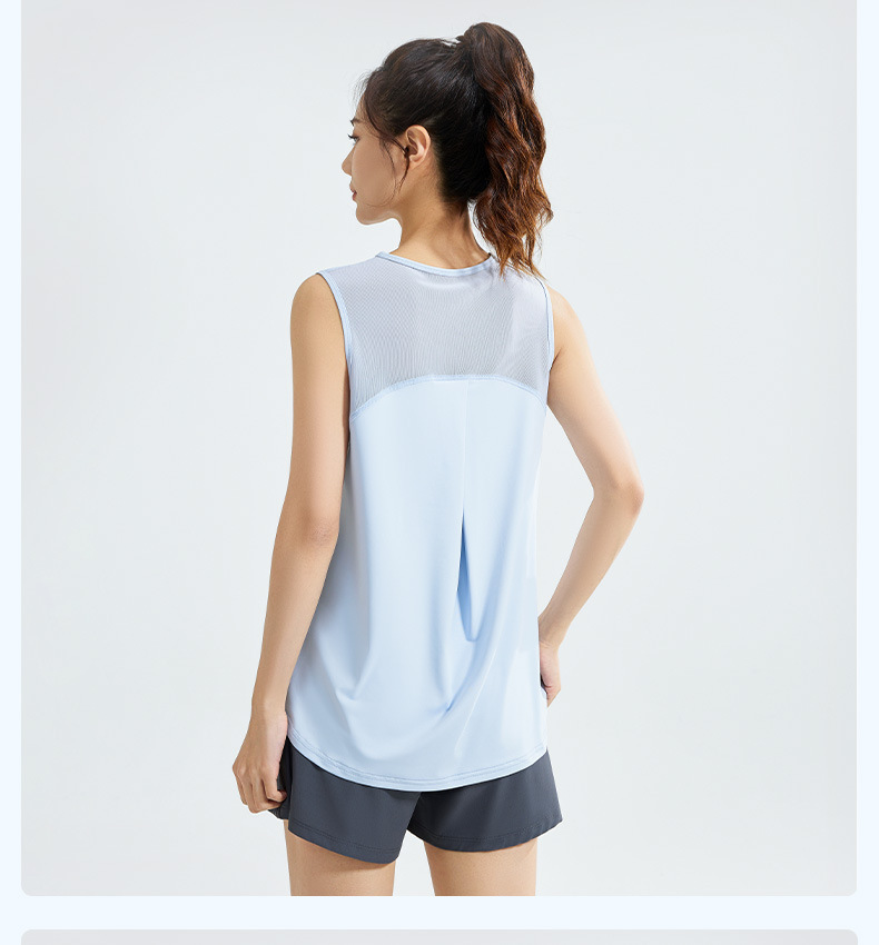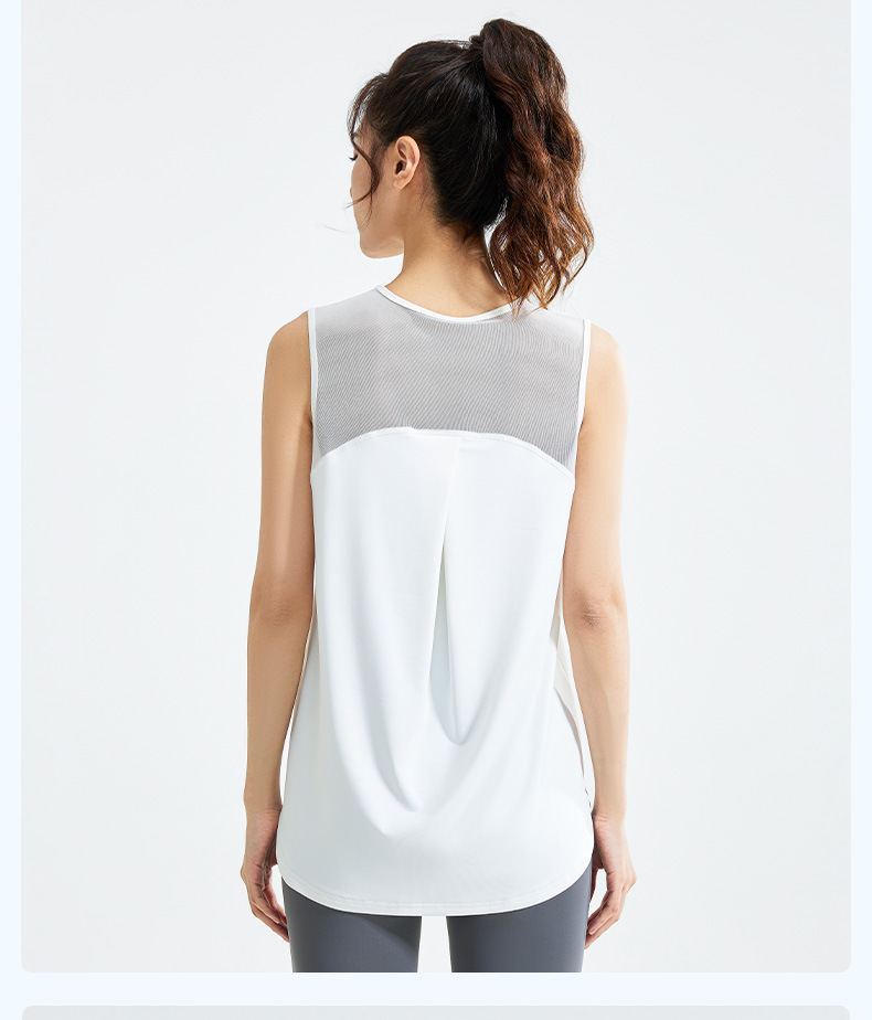 【瑜伽背心罩衫,透气速干,健身必备~】圆领瑜伽背心罩衫 宽松健身网纱 透气速干无袖运动背心式 瑜伽上衣-QQ