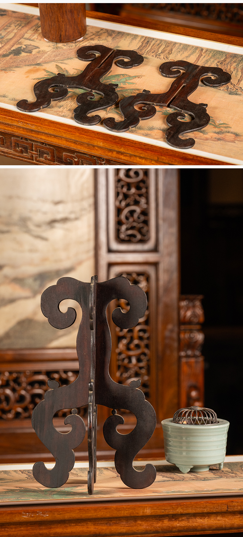 清 黄花梨镶竹丝编四抹门亮格柜摆件